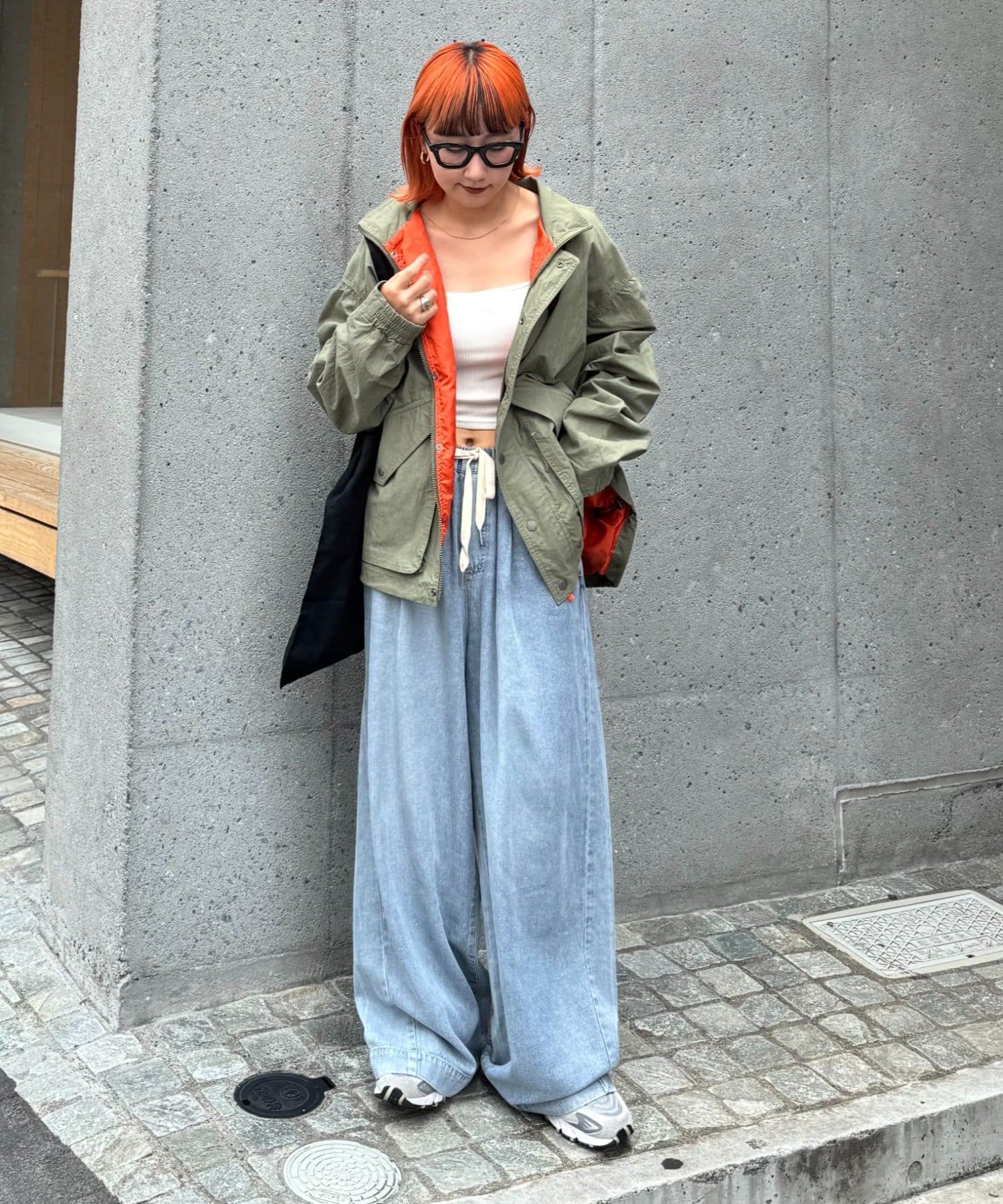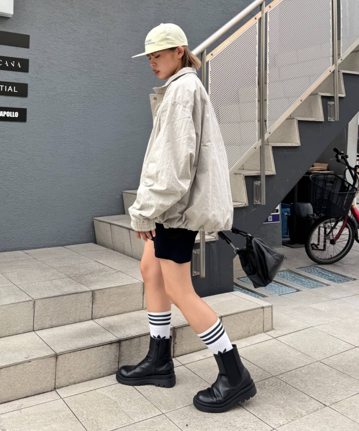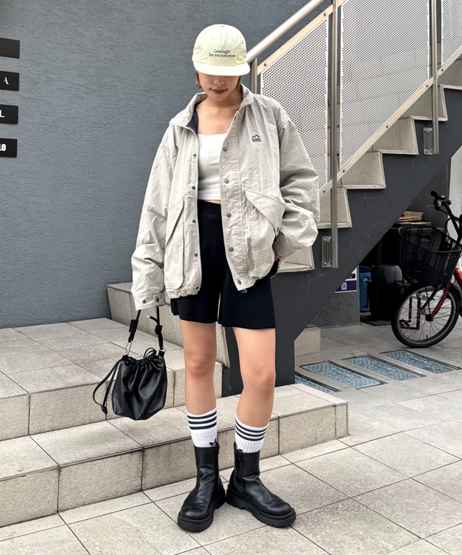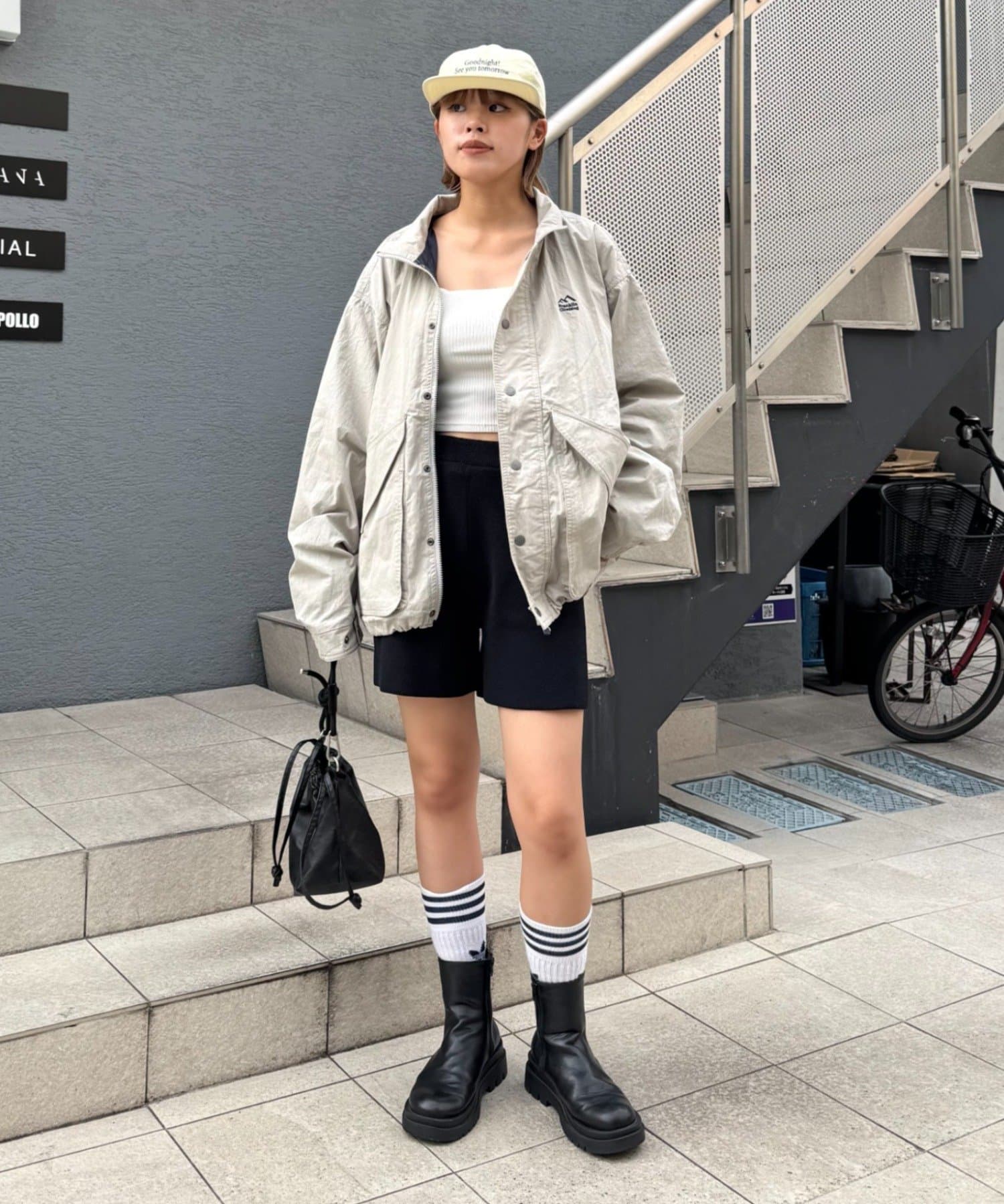 ワンピースやスカートと合わせれば、ミックススタイルを楽しめます。