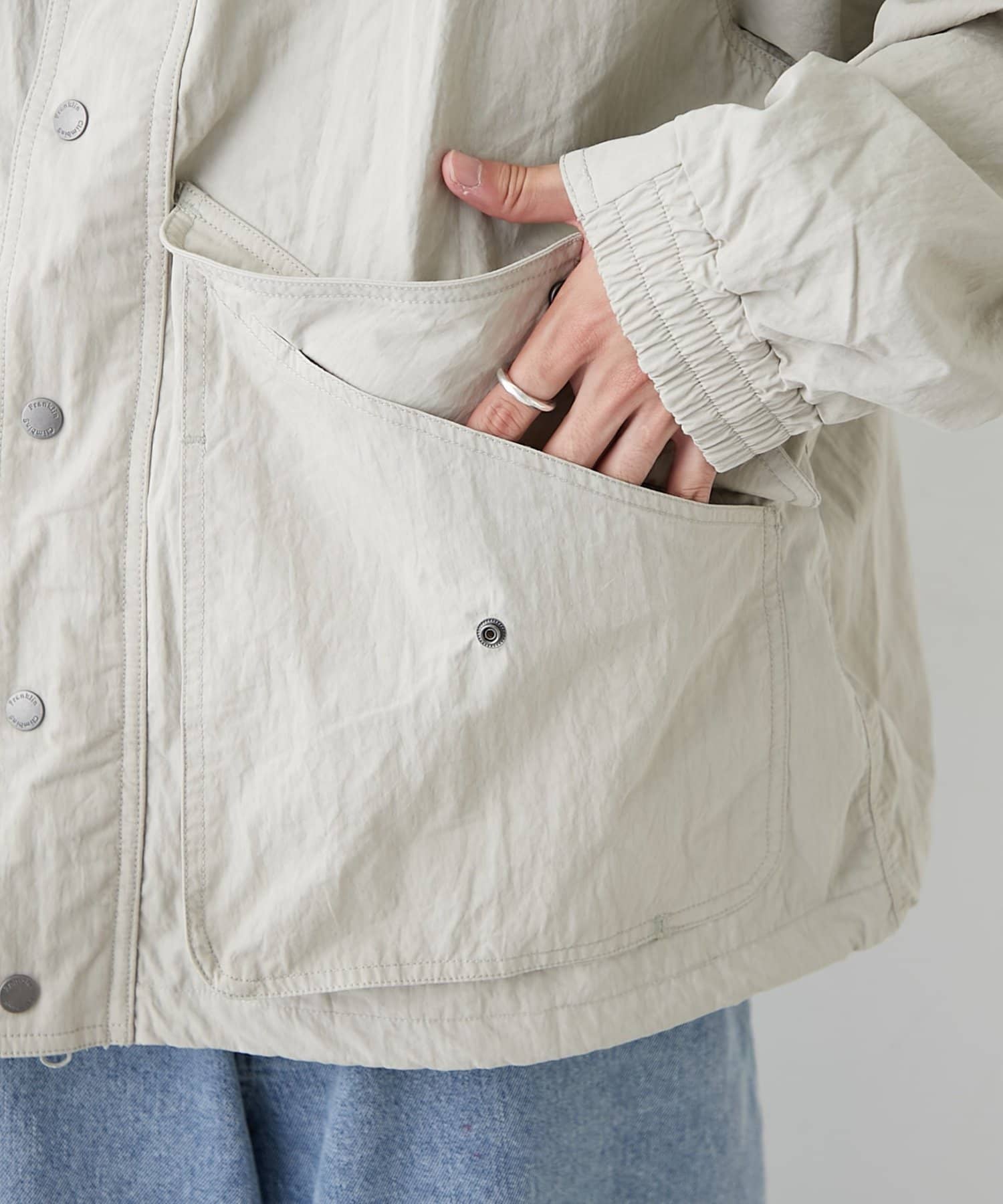 フロントはスナップボタンで開閉しやすく、カジュアルな印象を与えます。