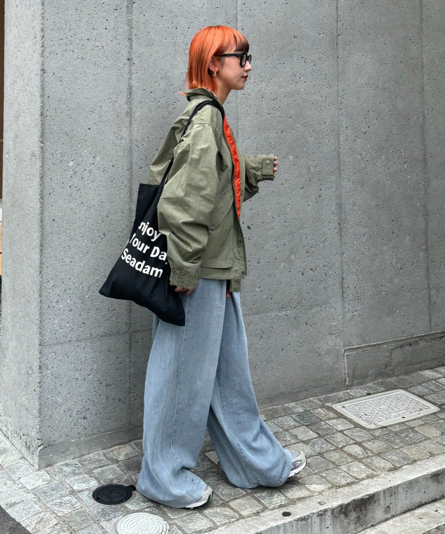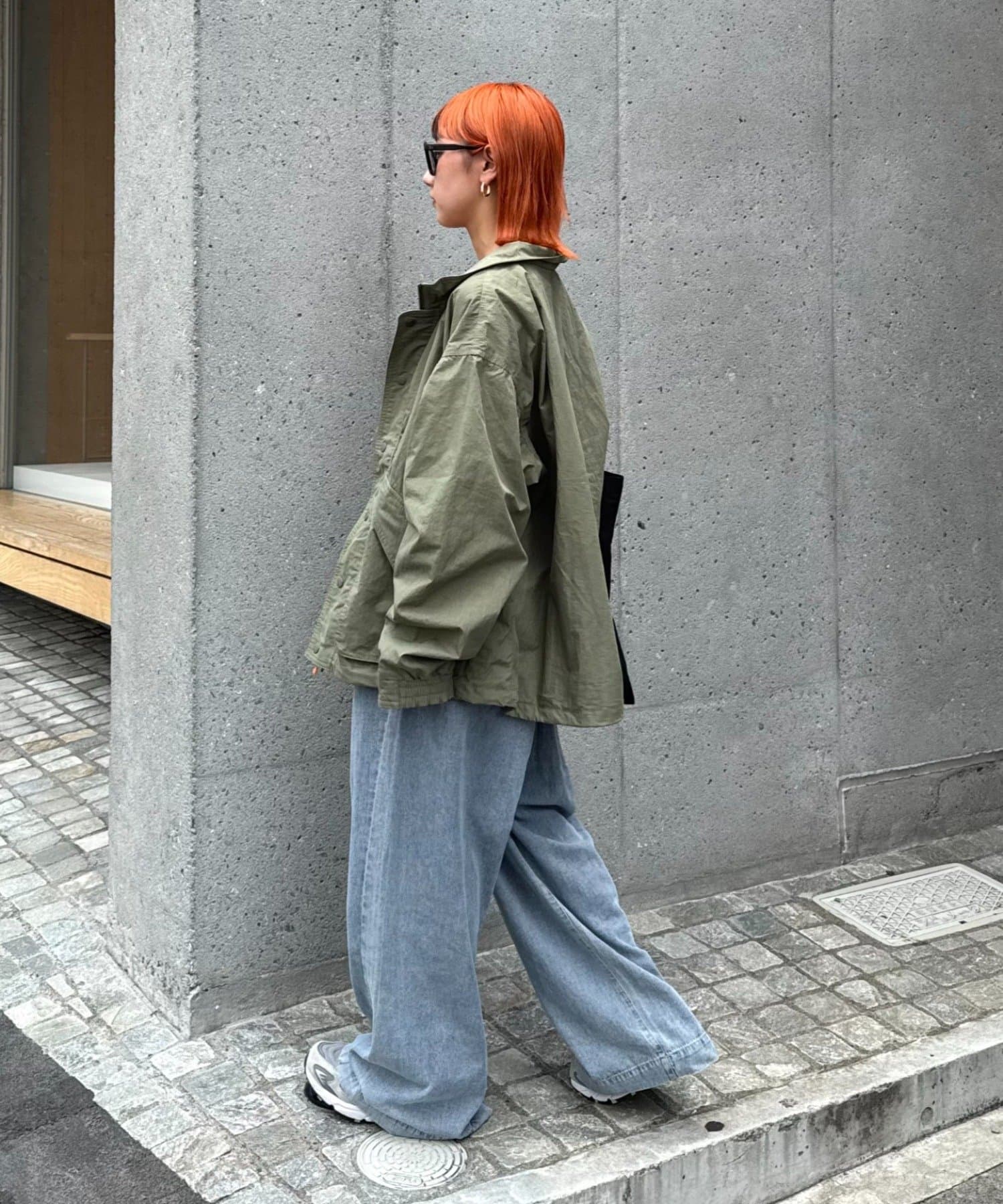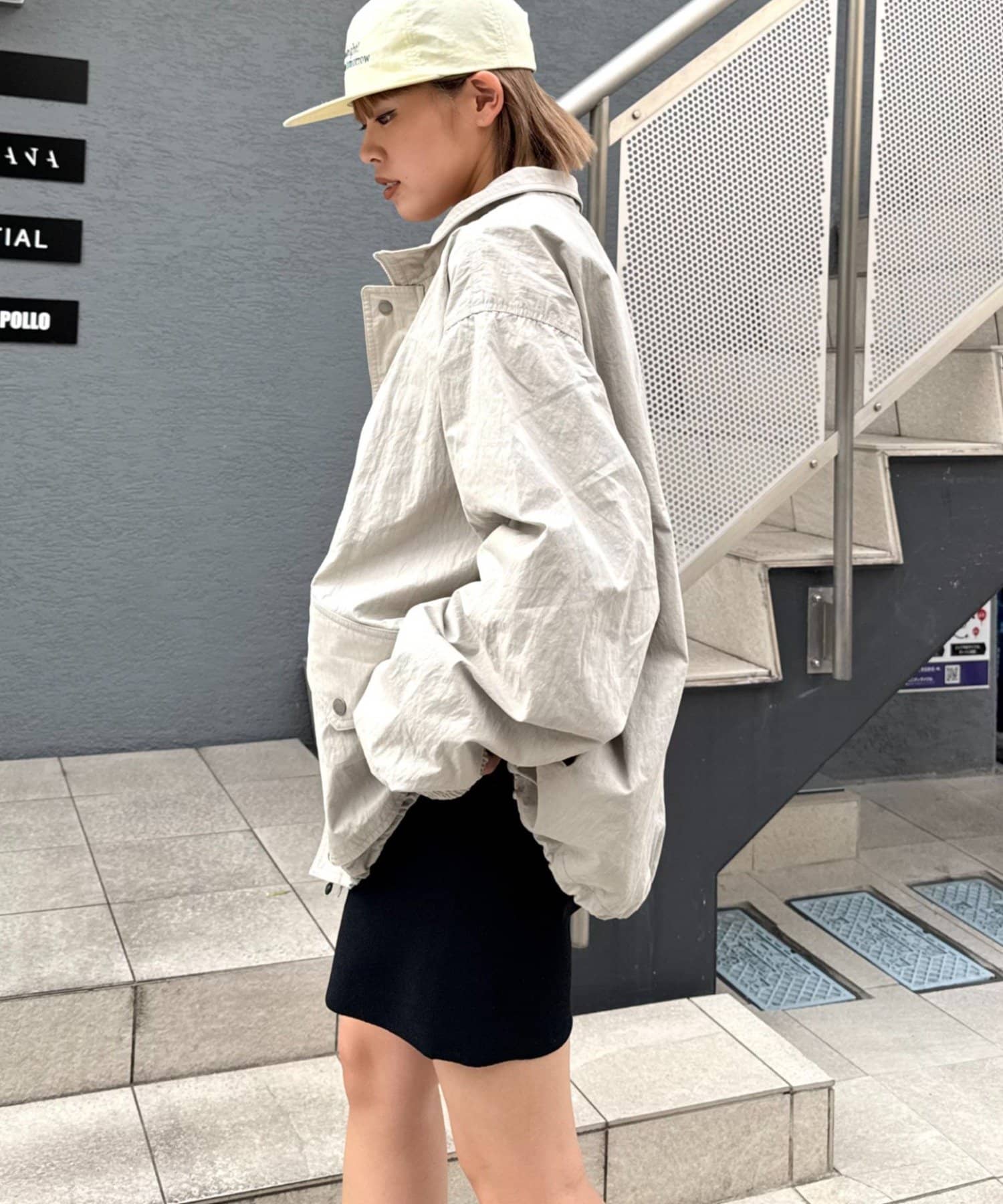 着丈の裾に付いたドローコードを引っ張ることで、シルエットの変化を楽しめます。少しゆったりとしたシルエットがかわいいです。