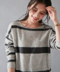 ラクーン混のストレッチ糸を使用したボーダーのルーズニット。