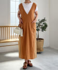 リブ切り替えデザインが目を惹くシーズンレスジャンパースカート