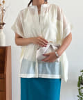シアー素材が今年らしく可愛いです。二の腕も隠れる袖丈で着丈も長いので体型カバーにも◎