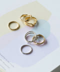 ・形の異なるサークルが組み合わさった2連風のリングと、シンプルなリングの美しいコンビネーション。