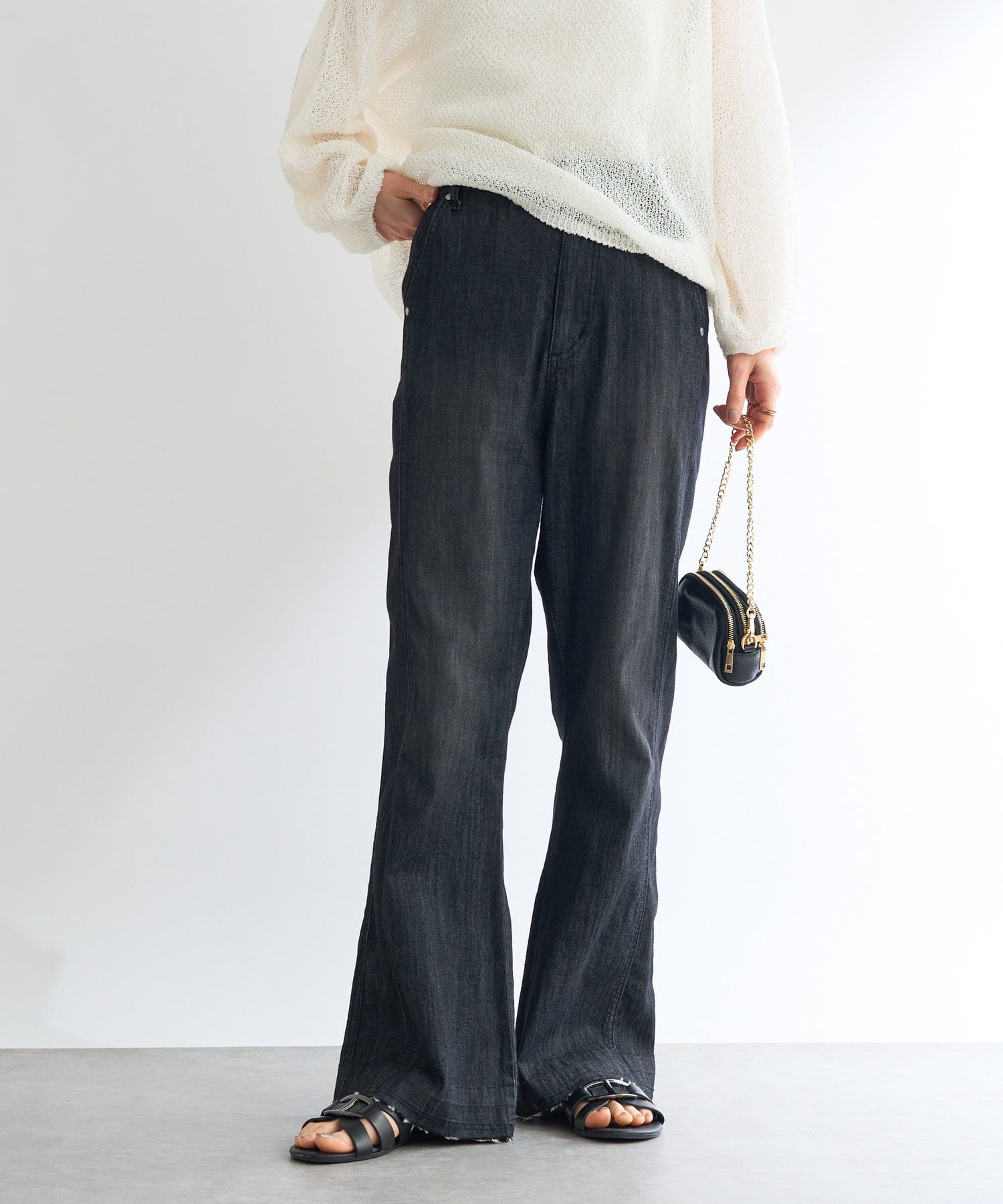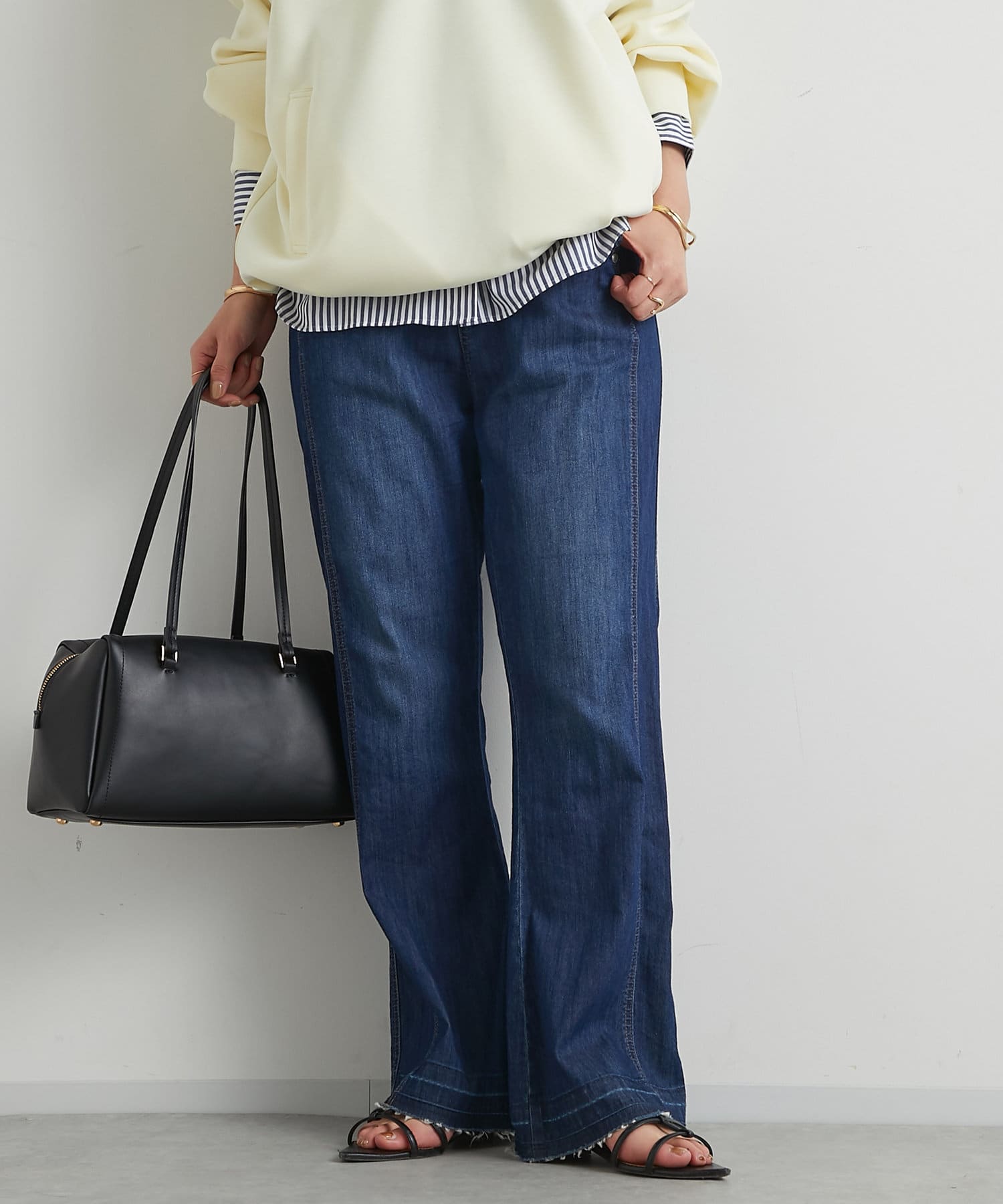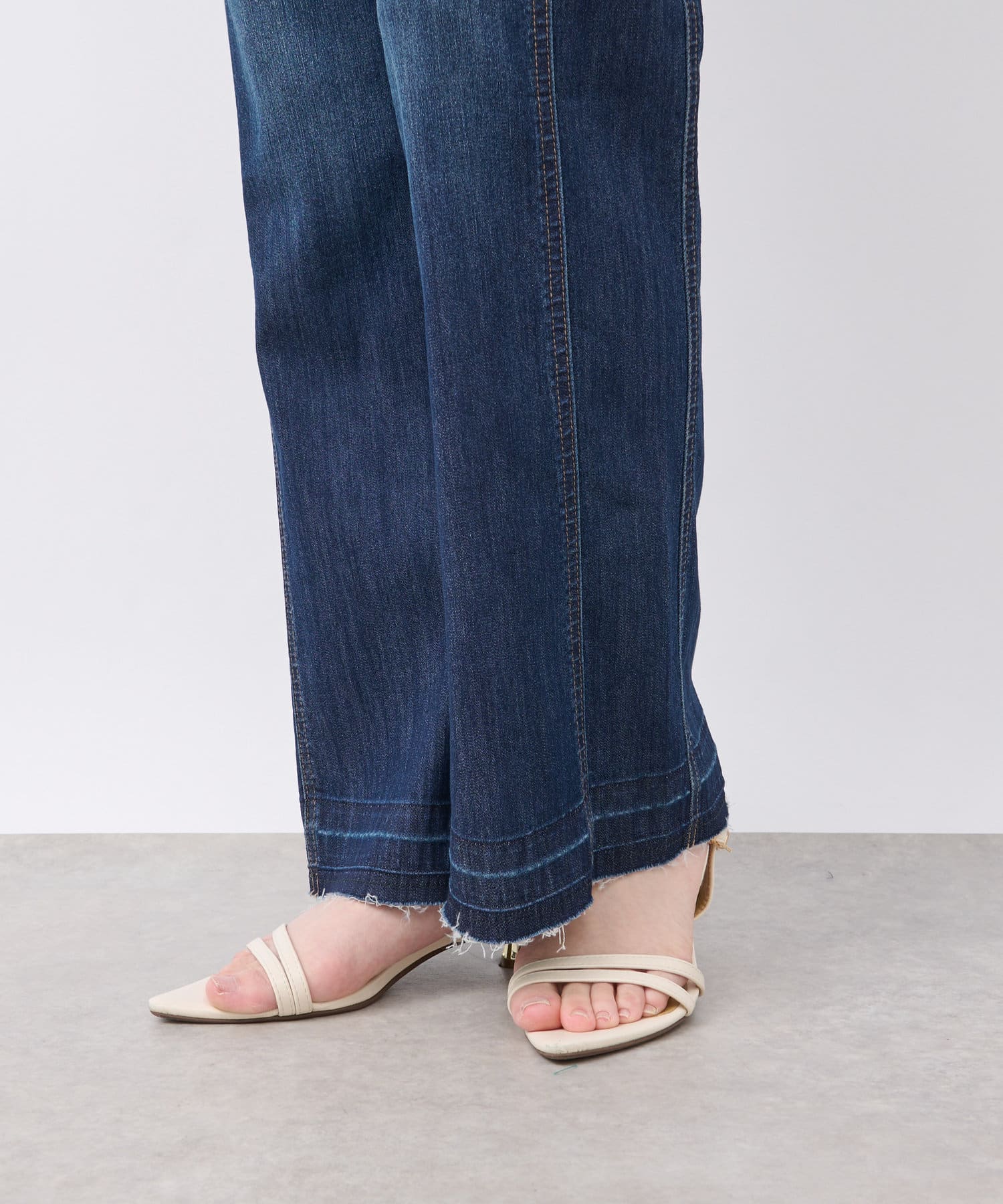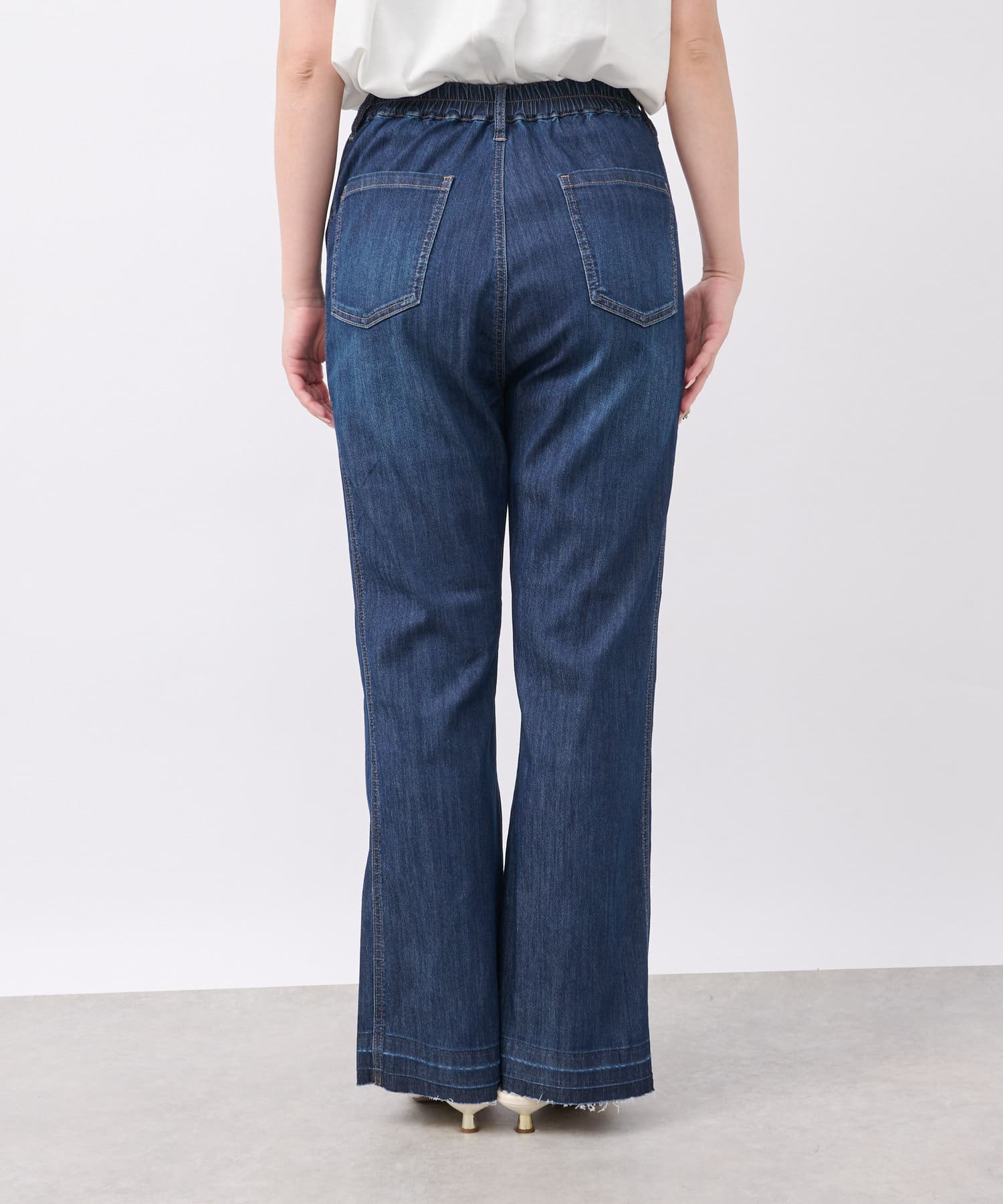 《履くだけスタイリッシュ・ウエストゴム》ストレートフレアデニム