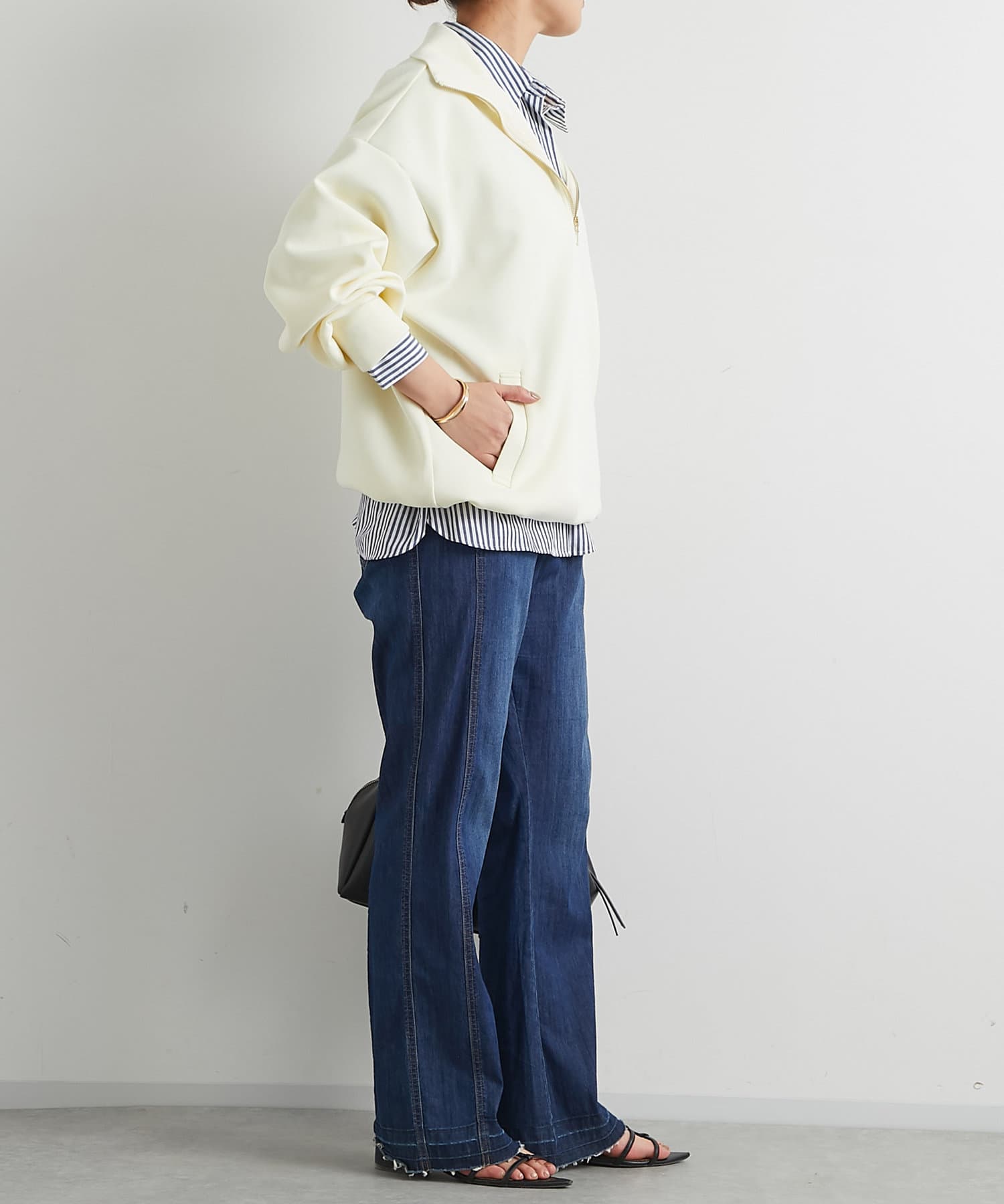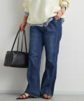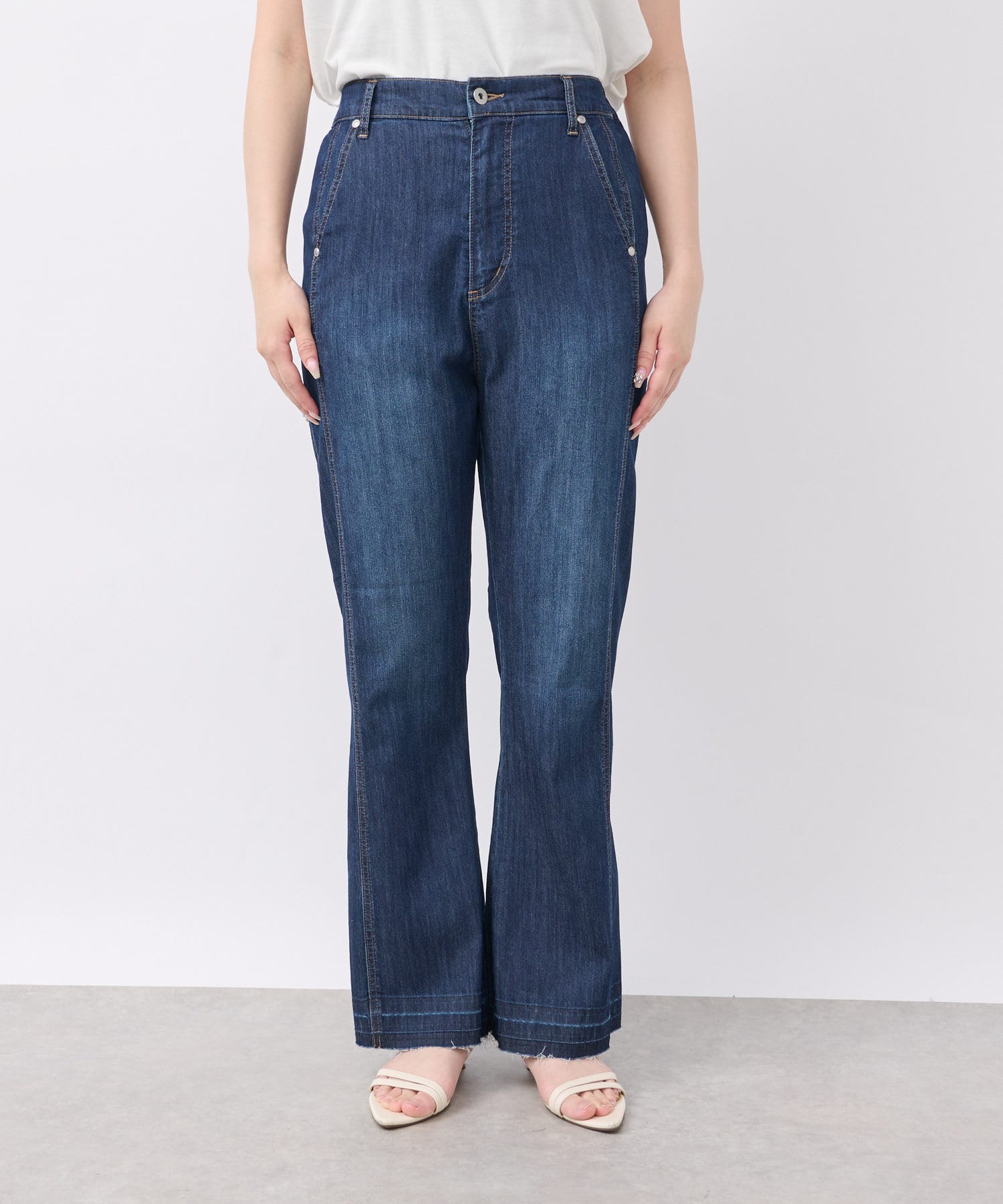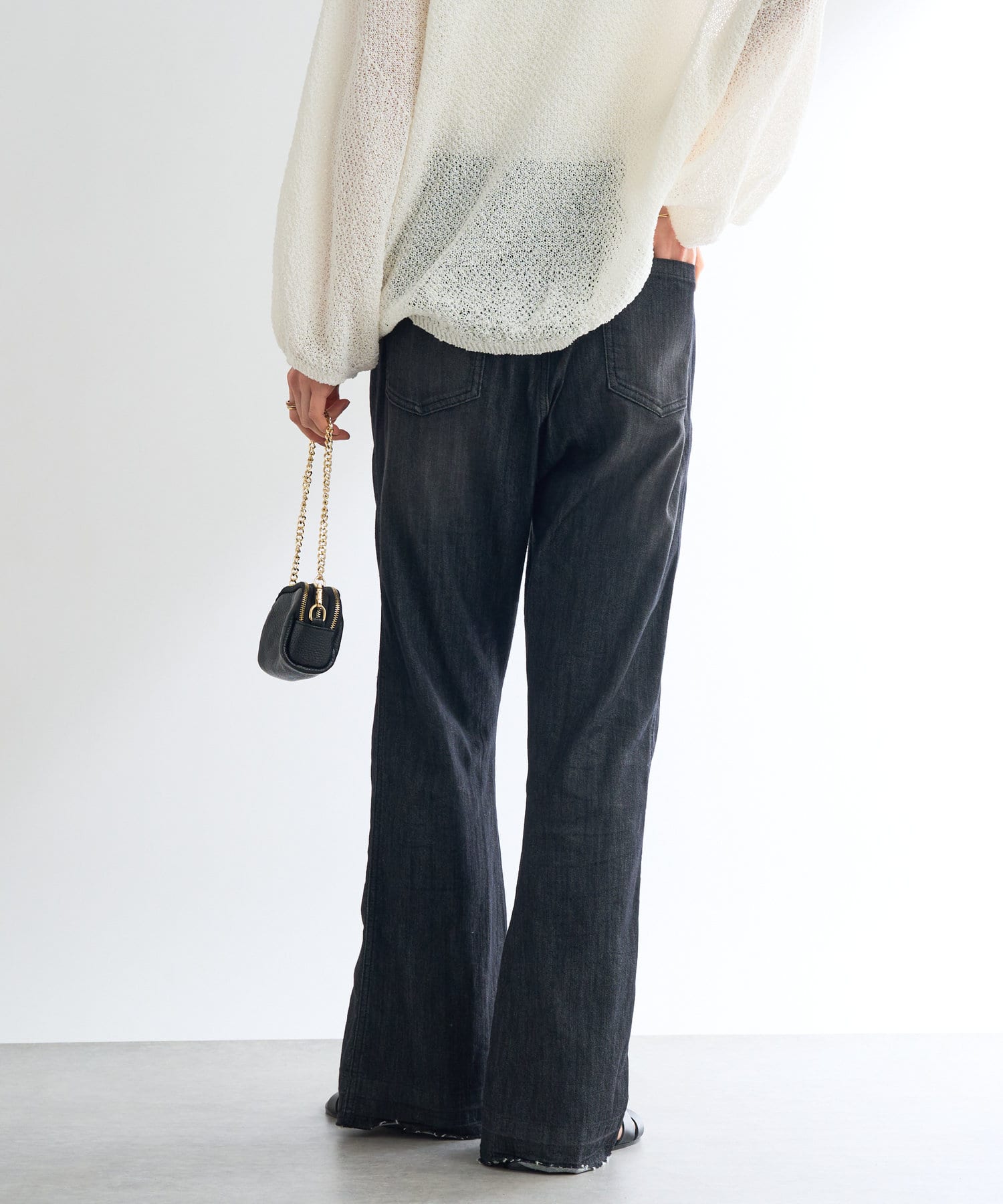 《履くだけスタイリッシュ・ウエストゴム》ストレートフレアデニム