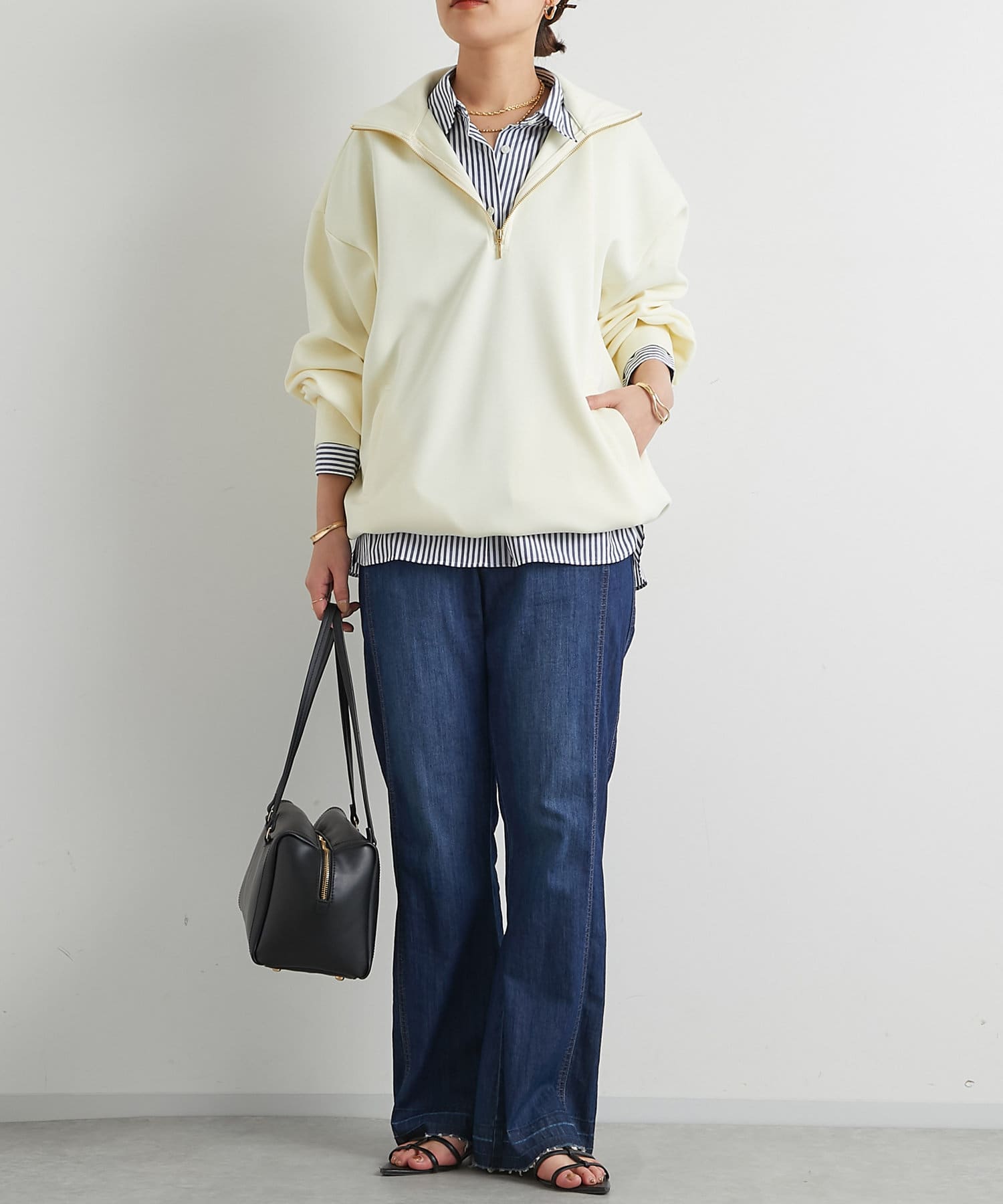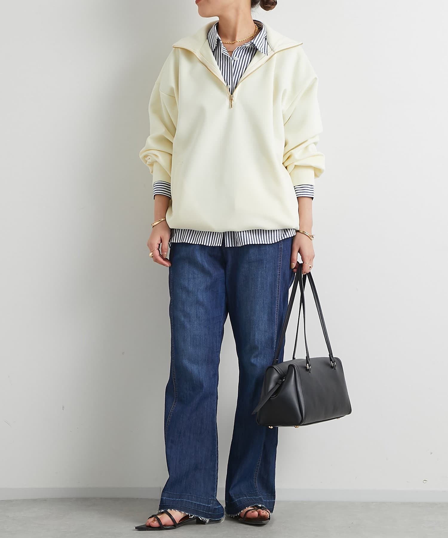 リラックスセミワイドデニムよりやや薄手な生地感+自宅で洗えるので衛生的です。