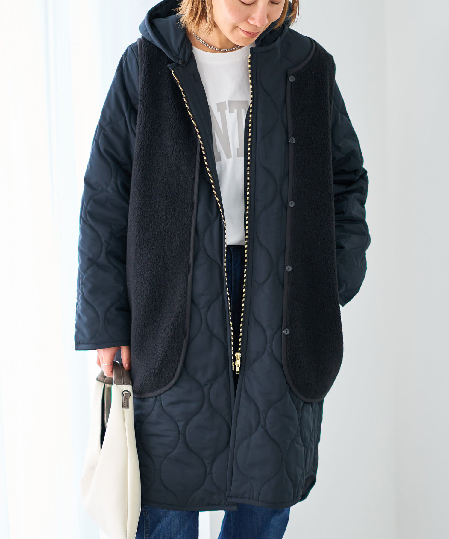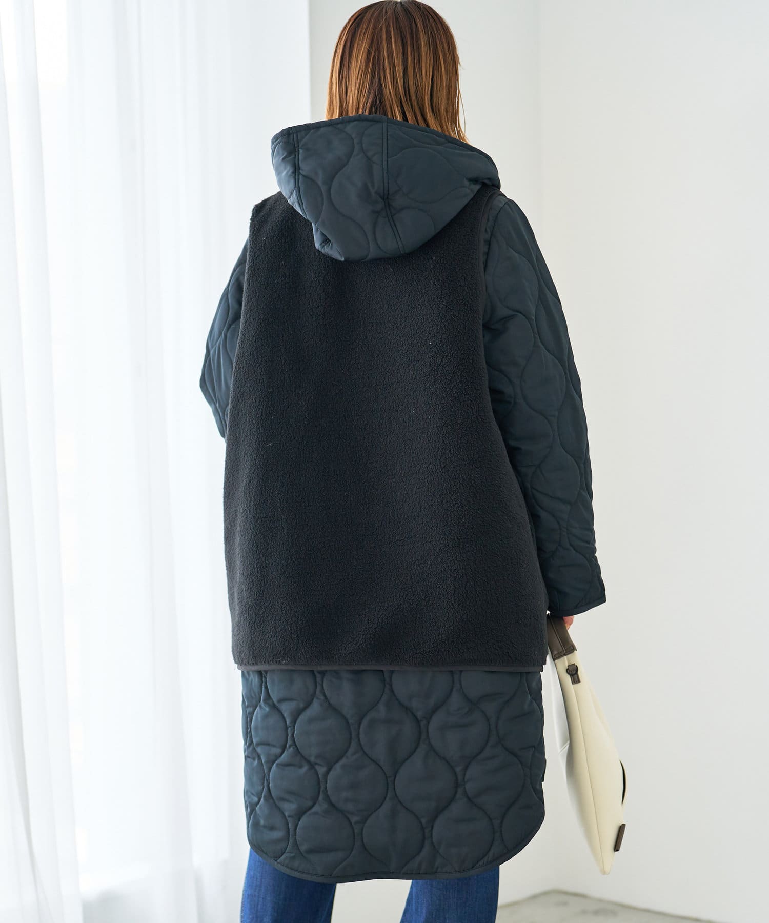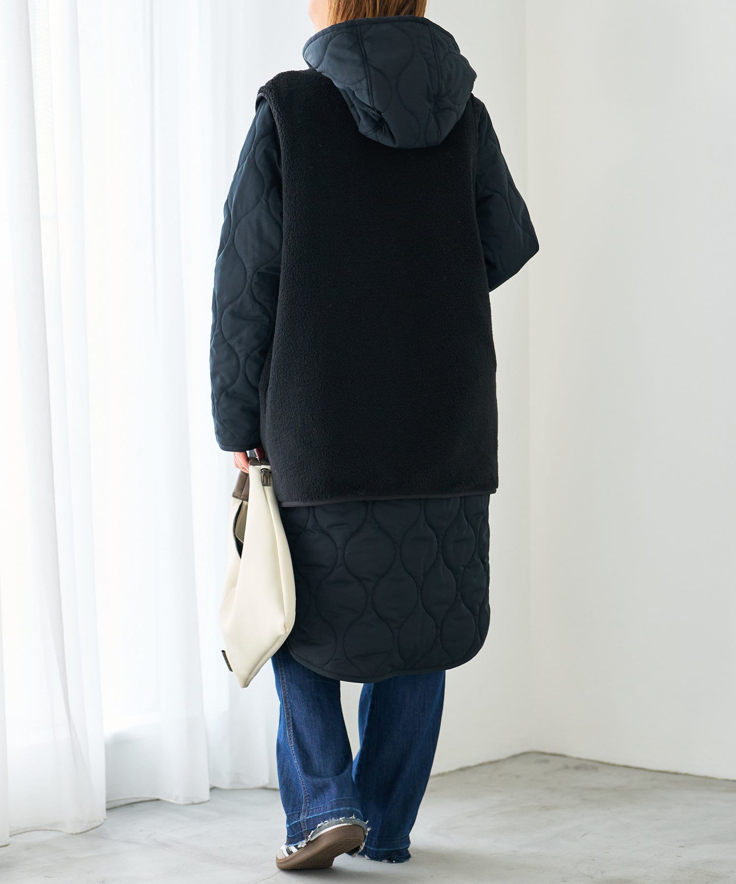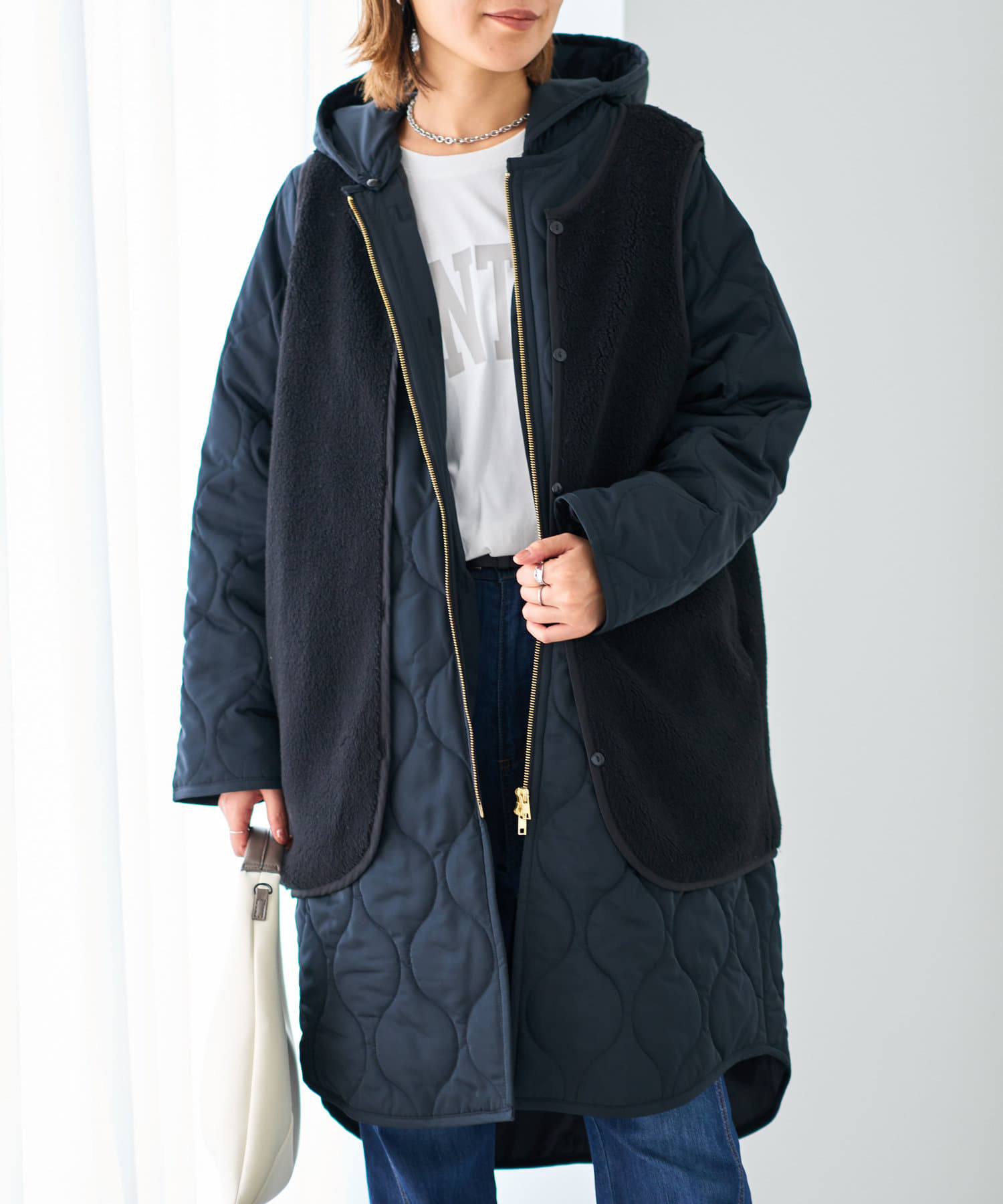 《取り外し可能アウター》ベスト+キルティングミドルコート