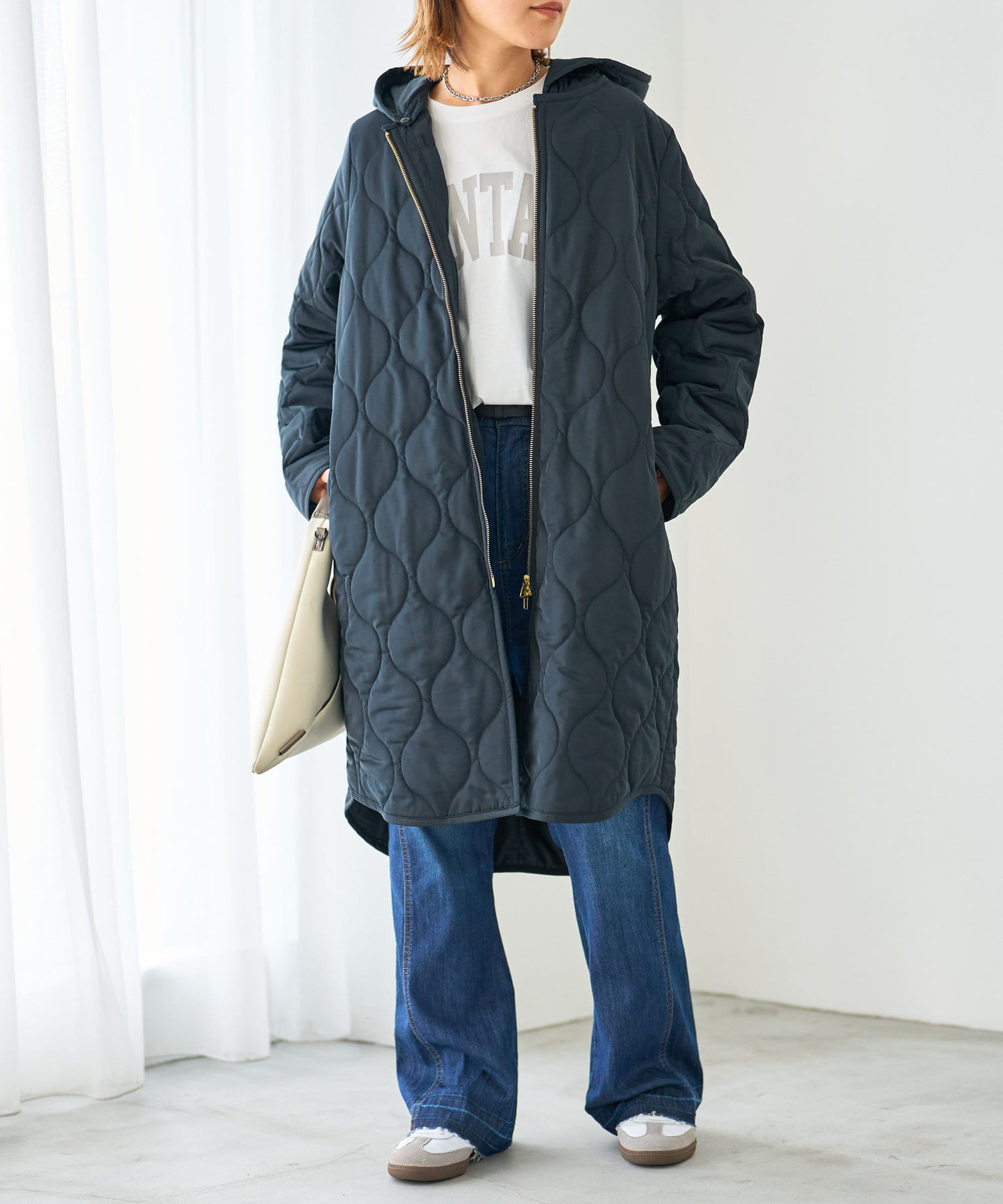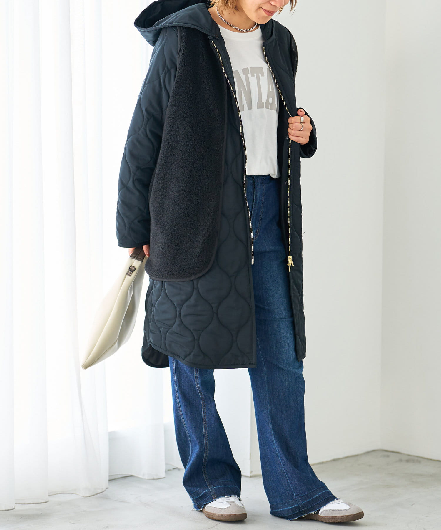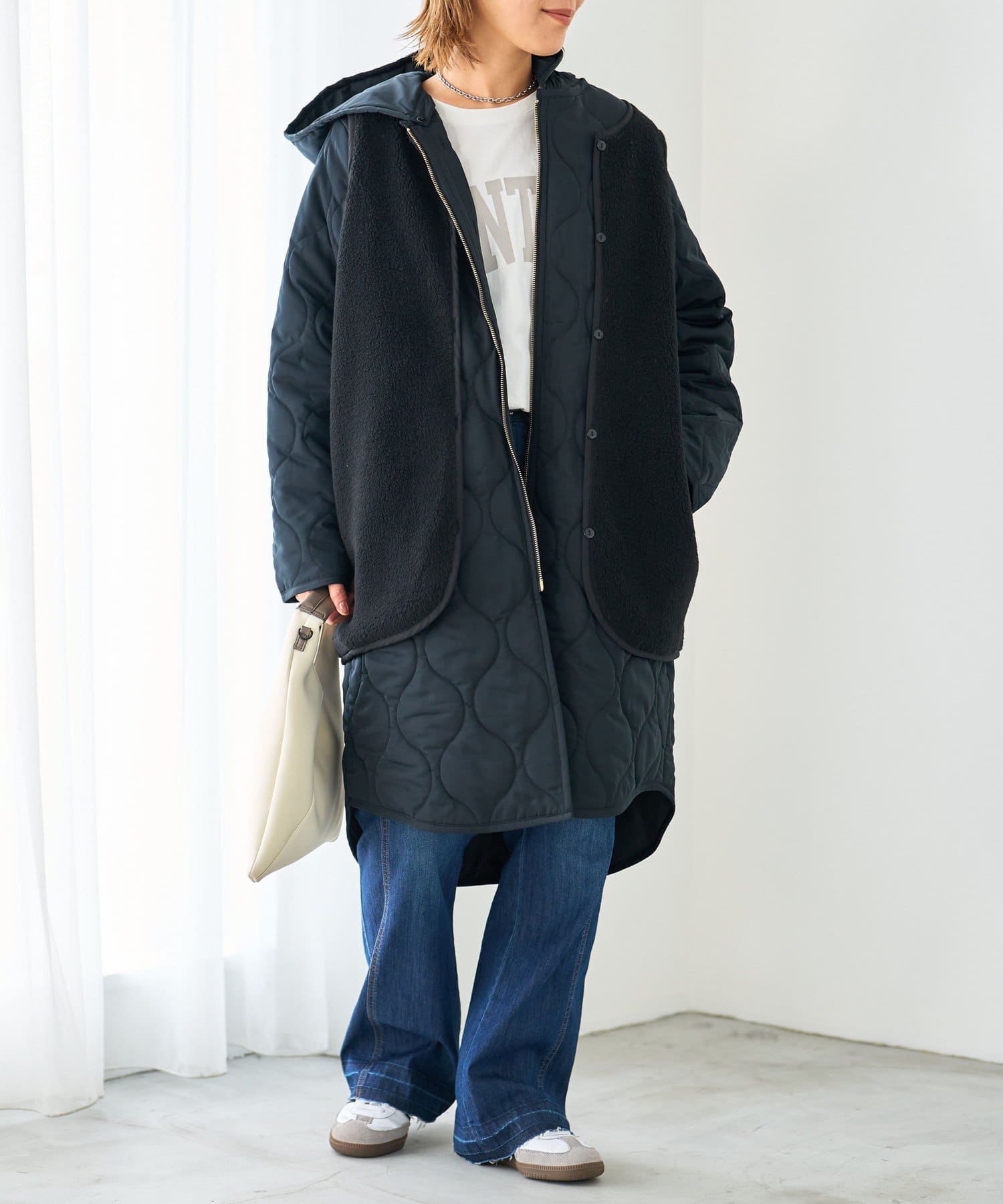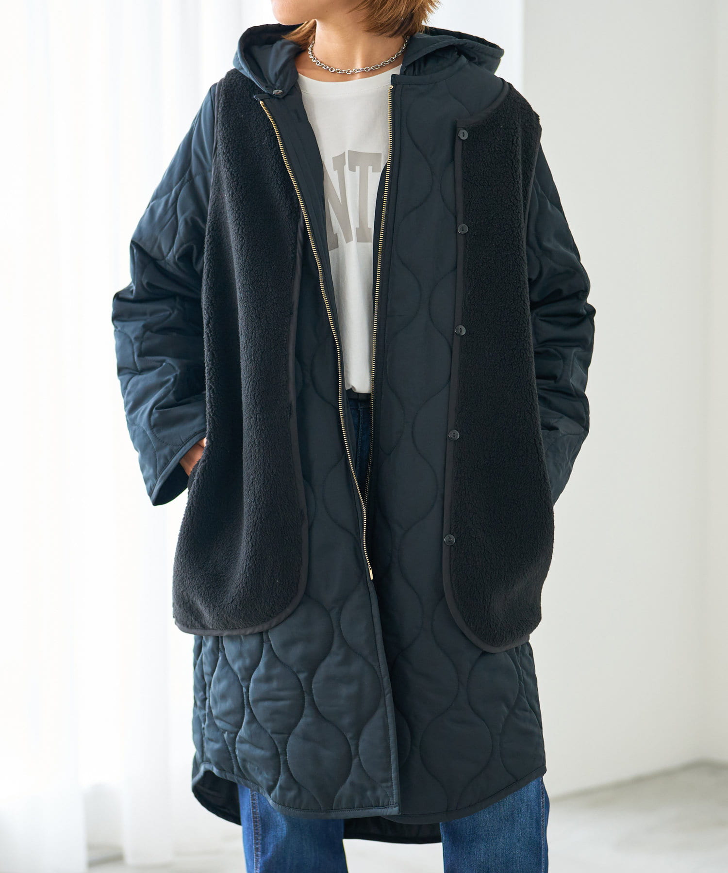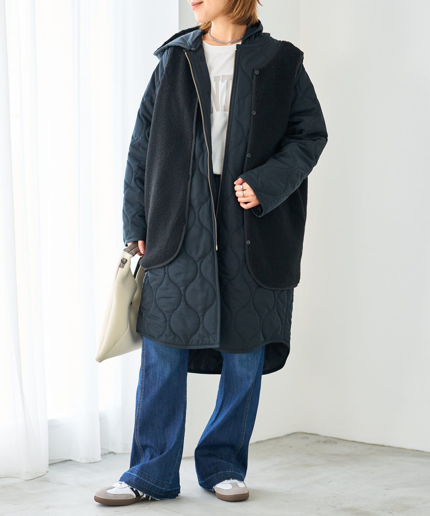 《取り外し可能アウター》ベスト+キルティングミドルコート