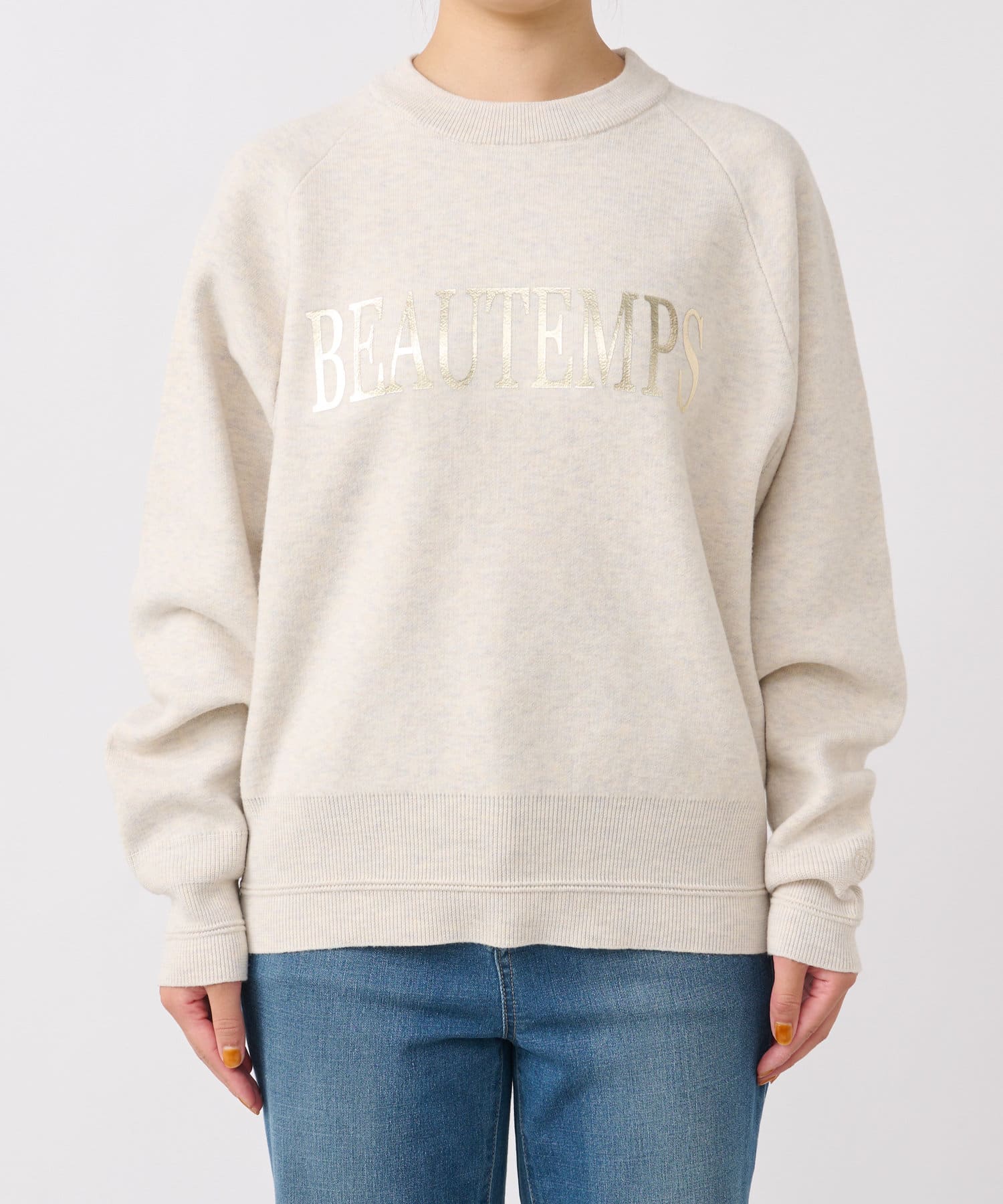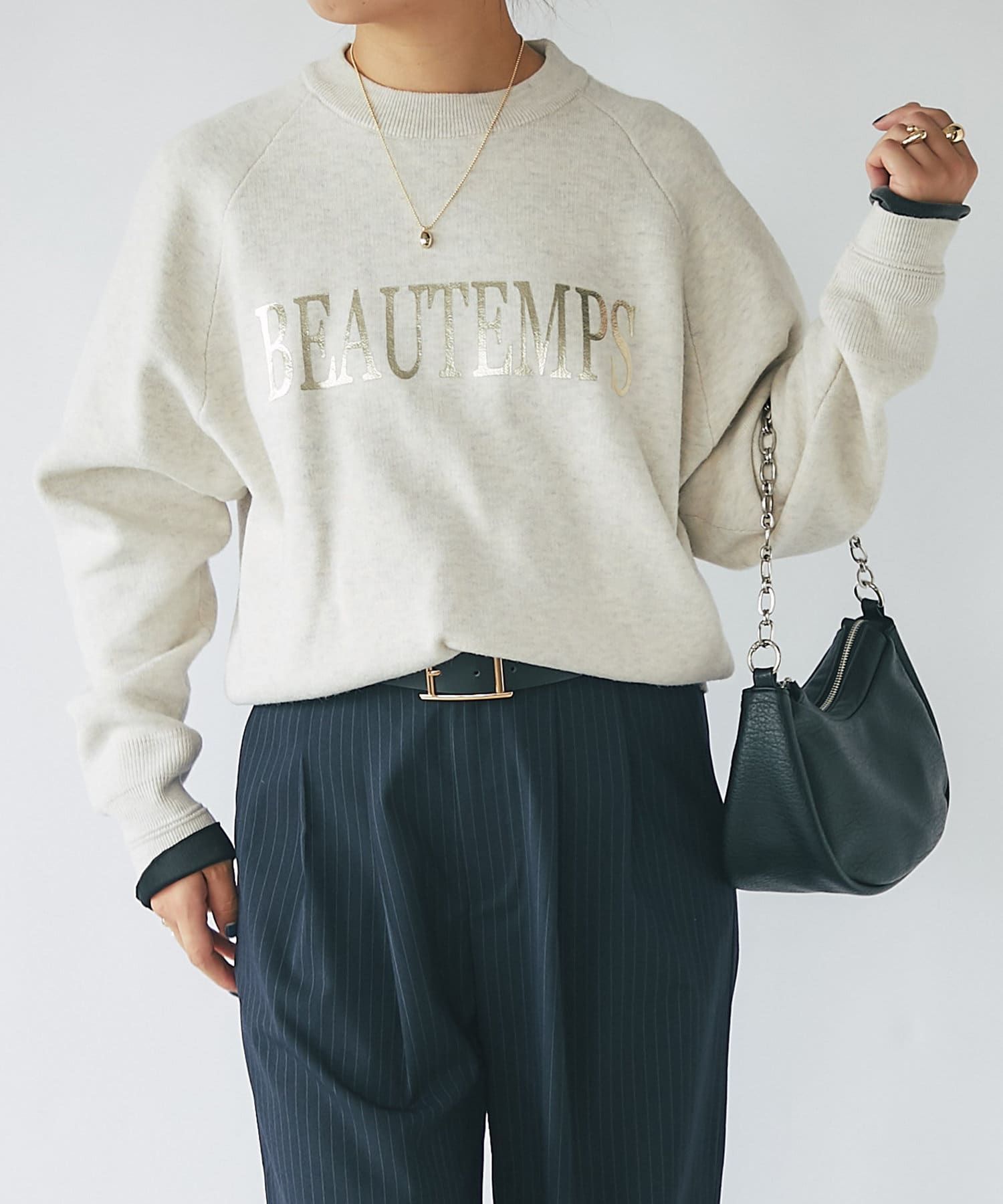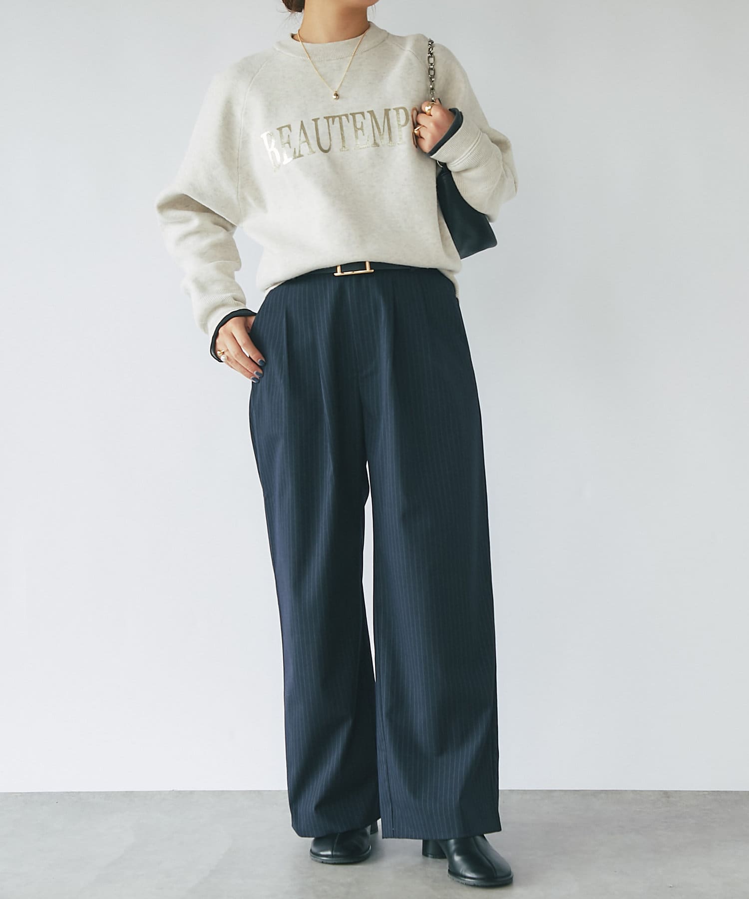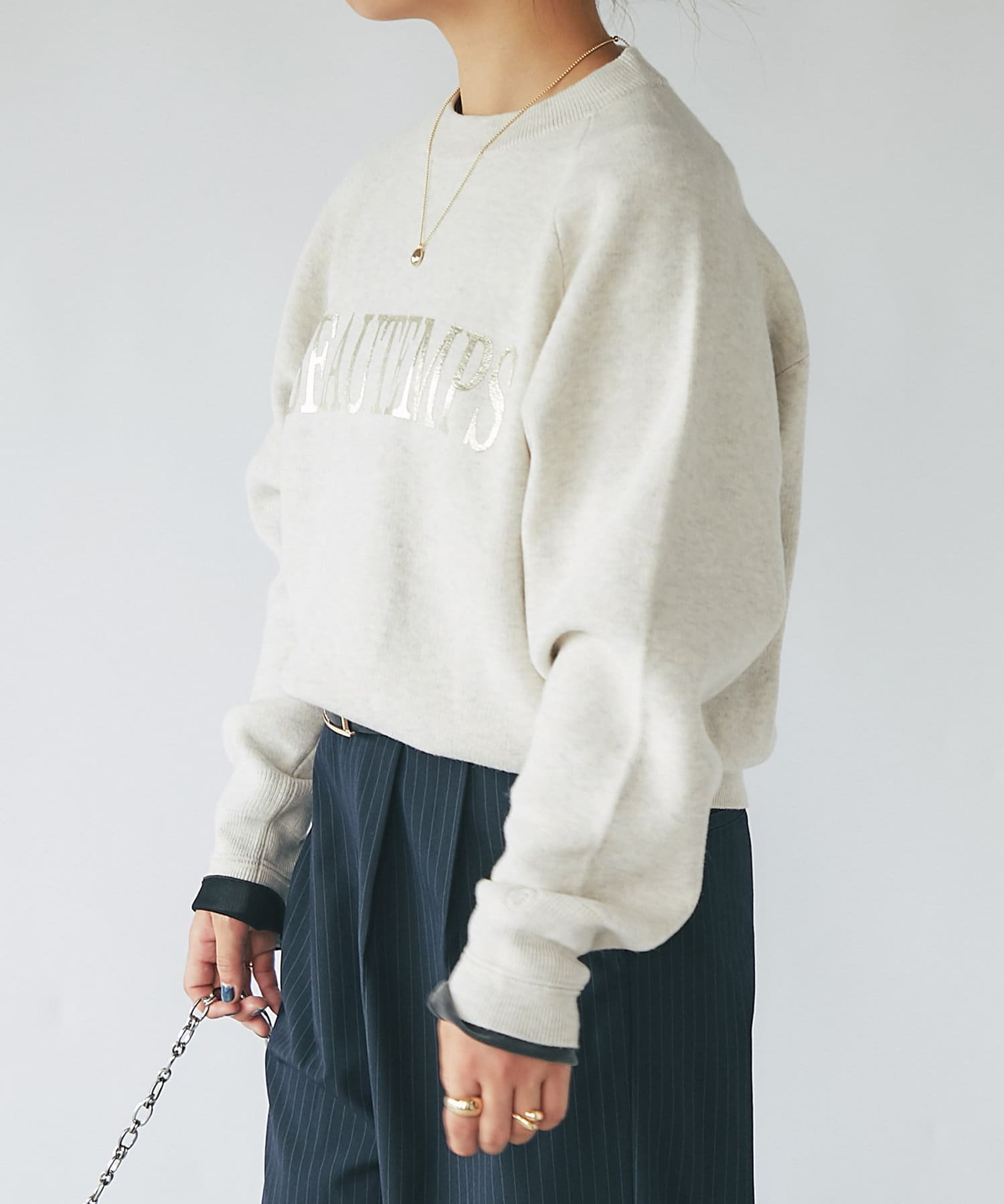 ・ロゴスウェットを箔プリントで上品にまとめた1枚