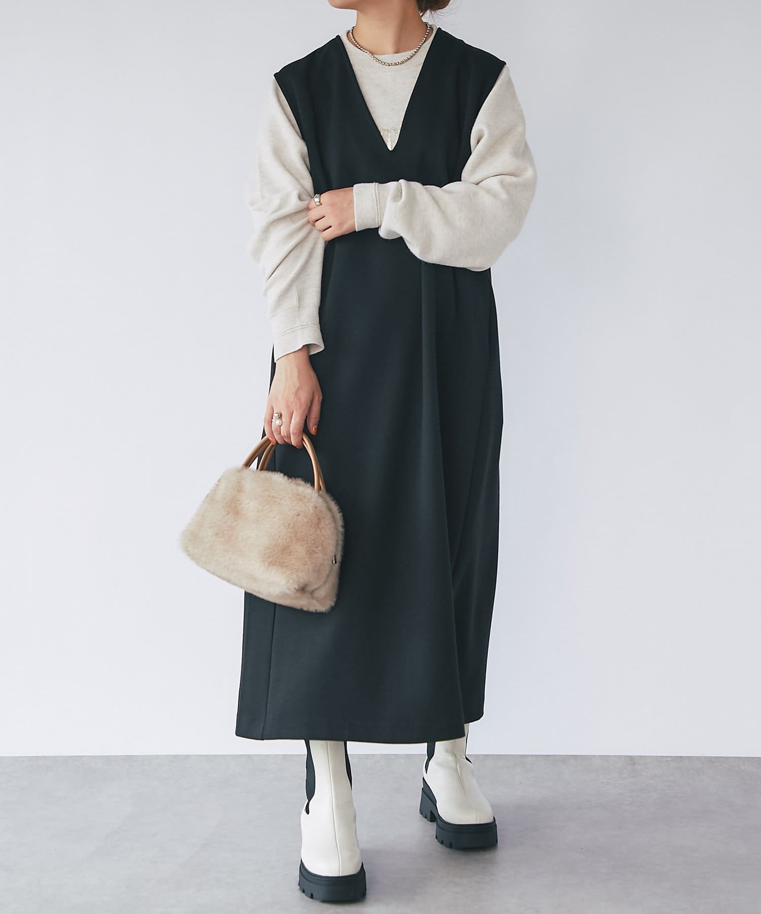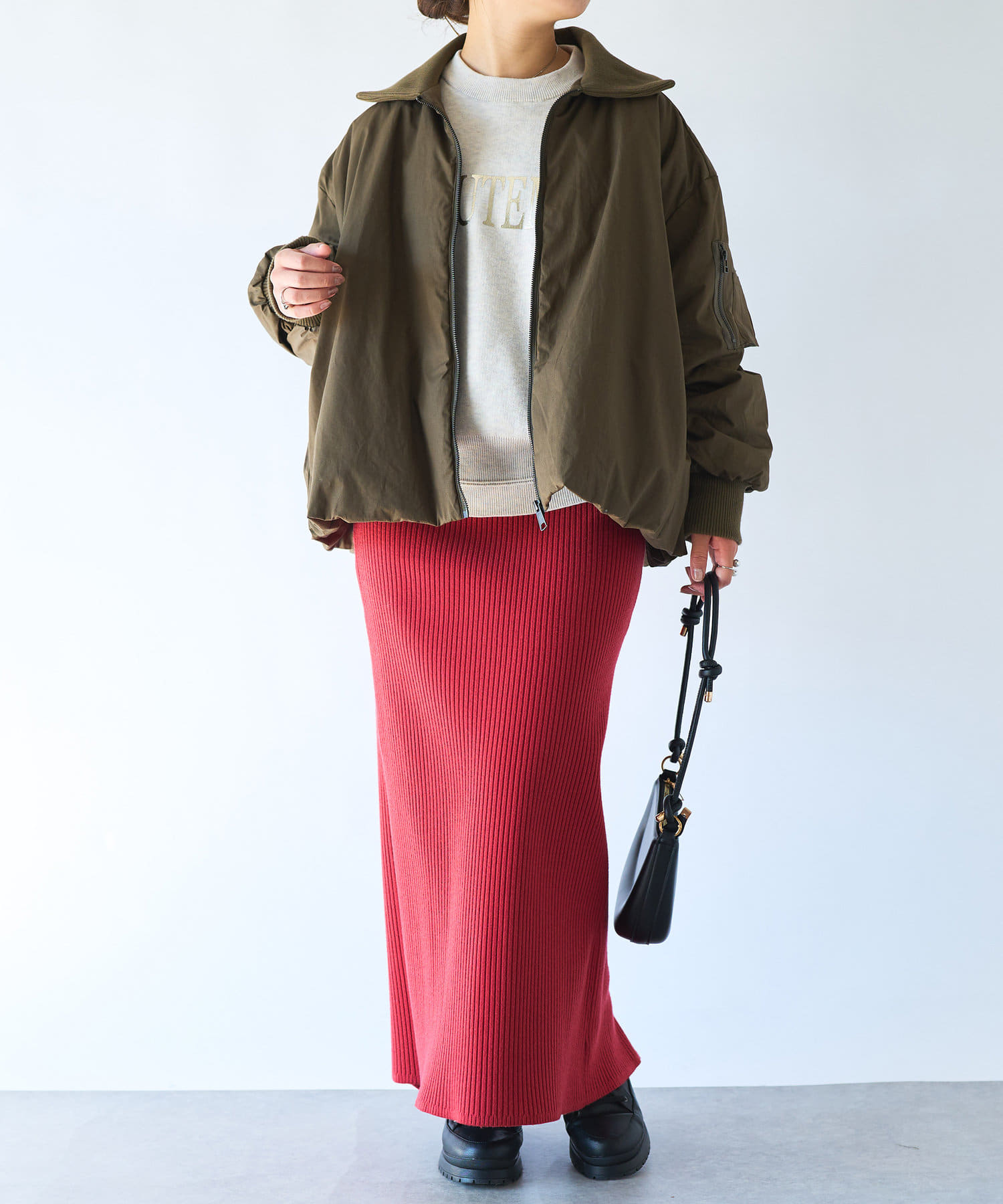・ボトムを選ばない前後差のあるレングスと程よいサイズ感で、