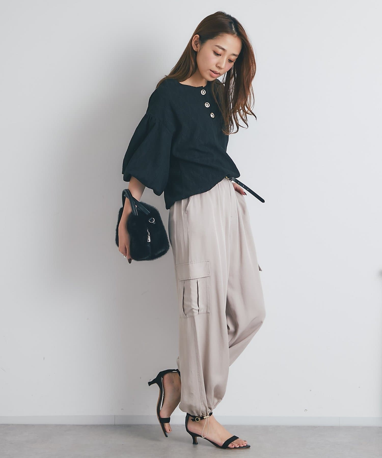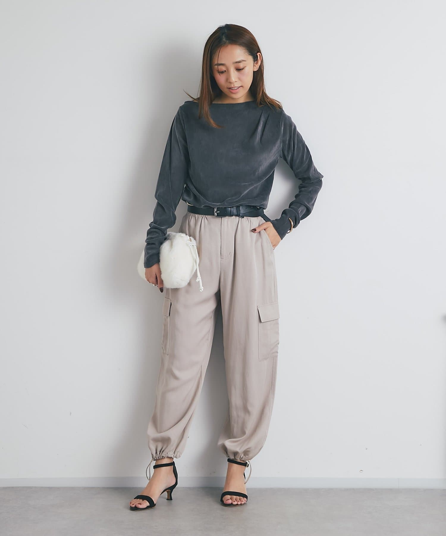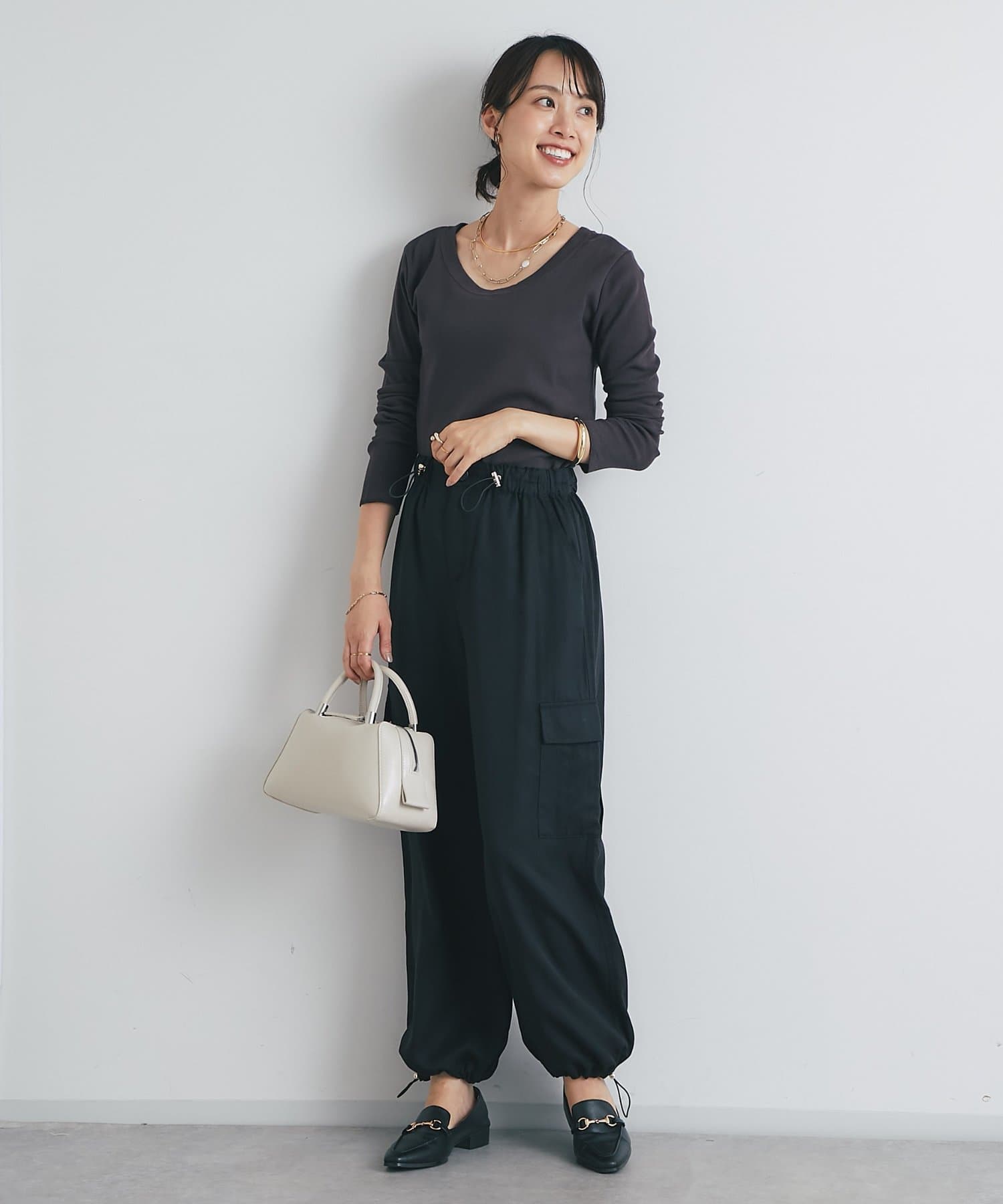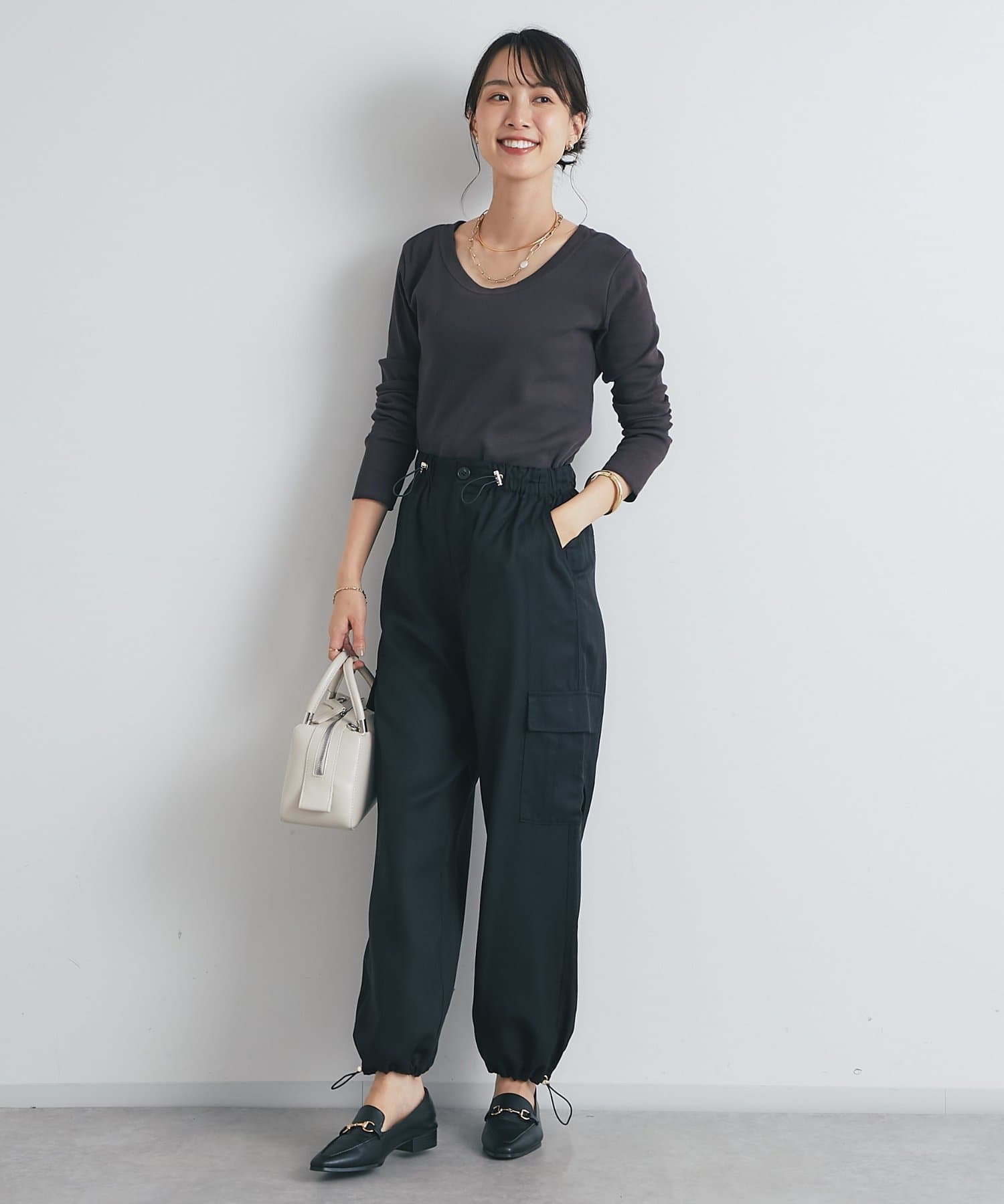 そのままでももちろん、裾ドロストを少し絞ってふわんとしたシルエットで履いても可愛いです。