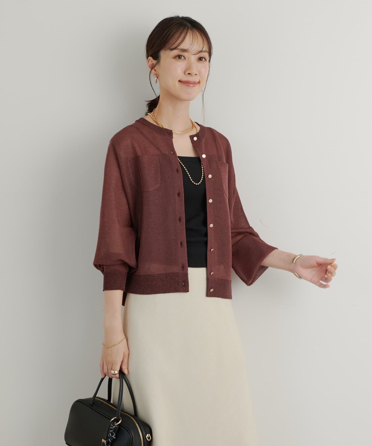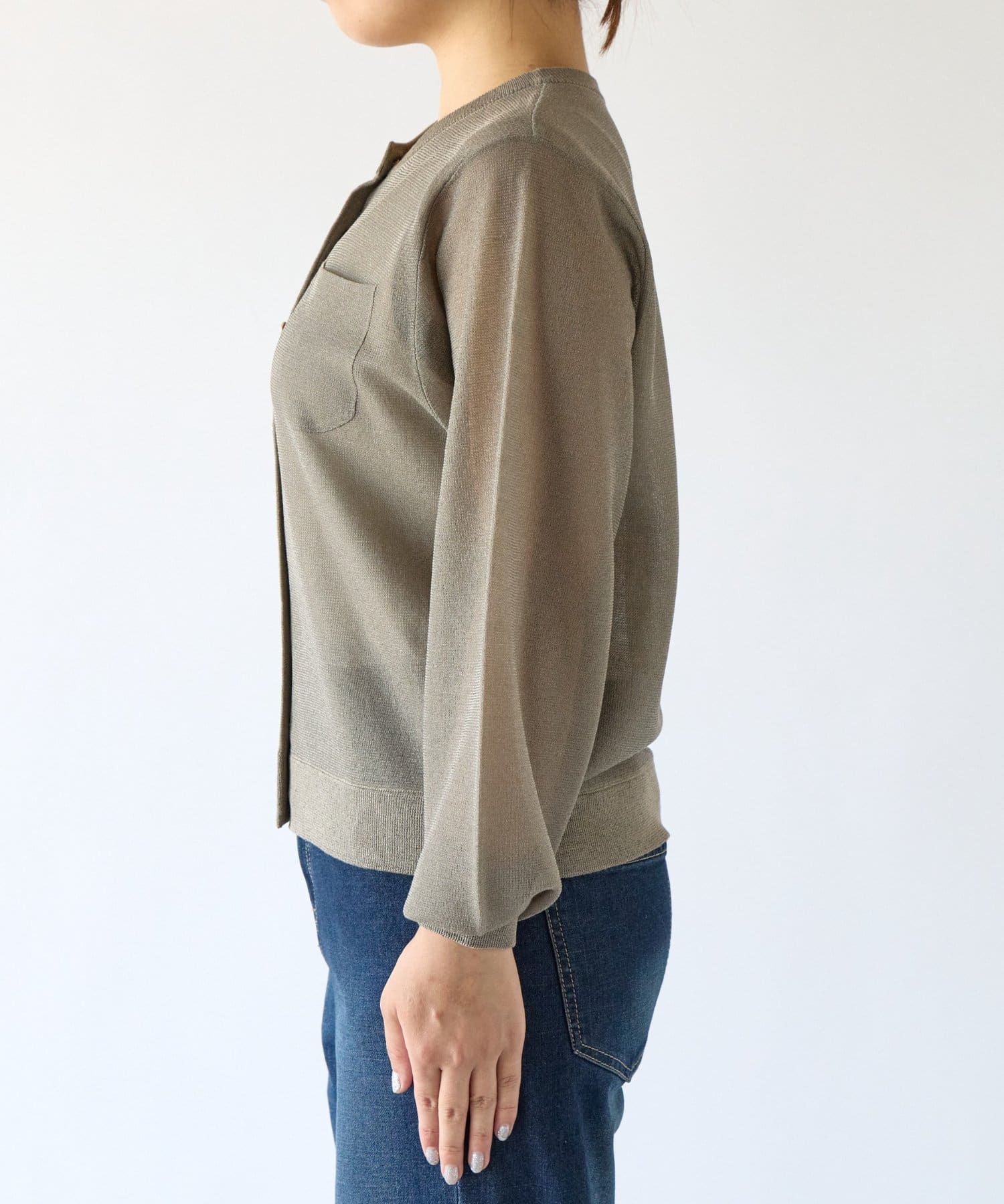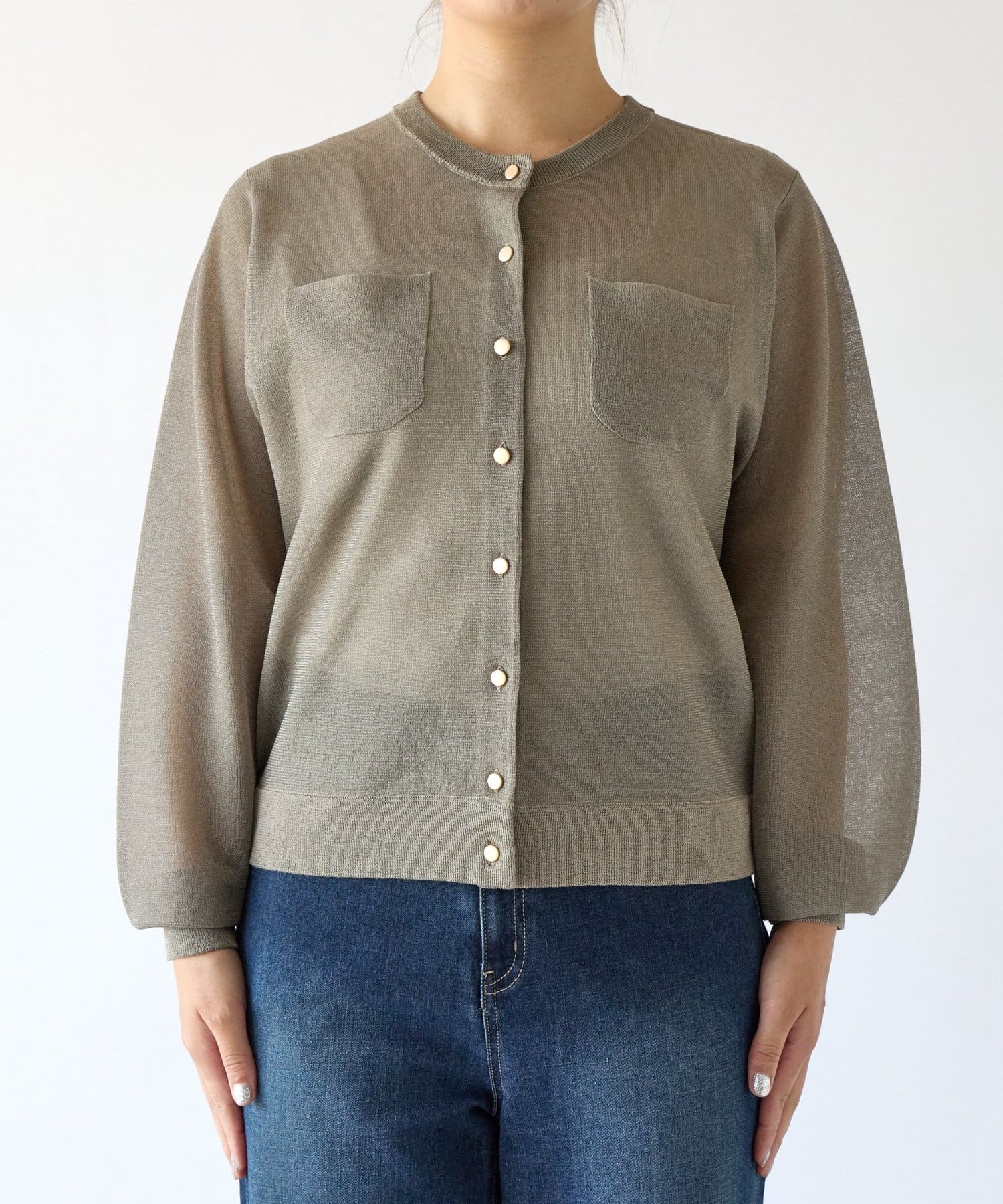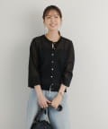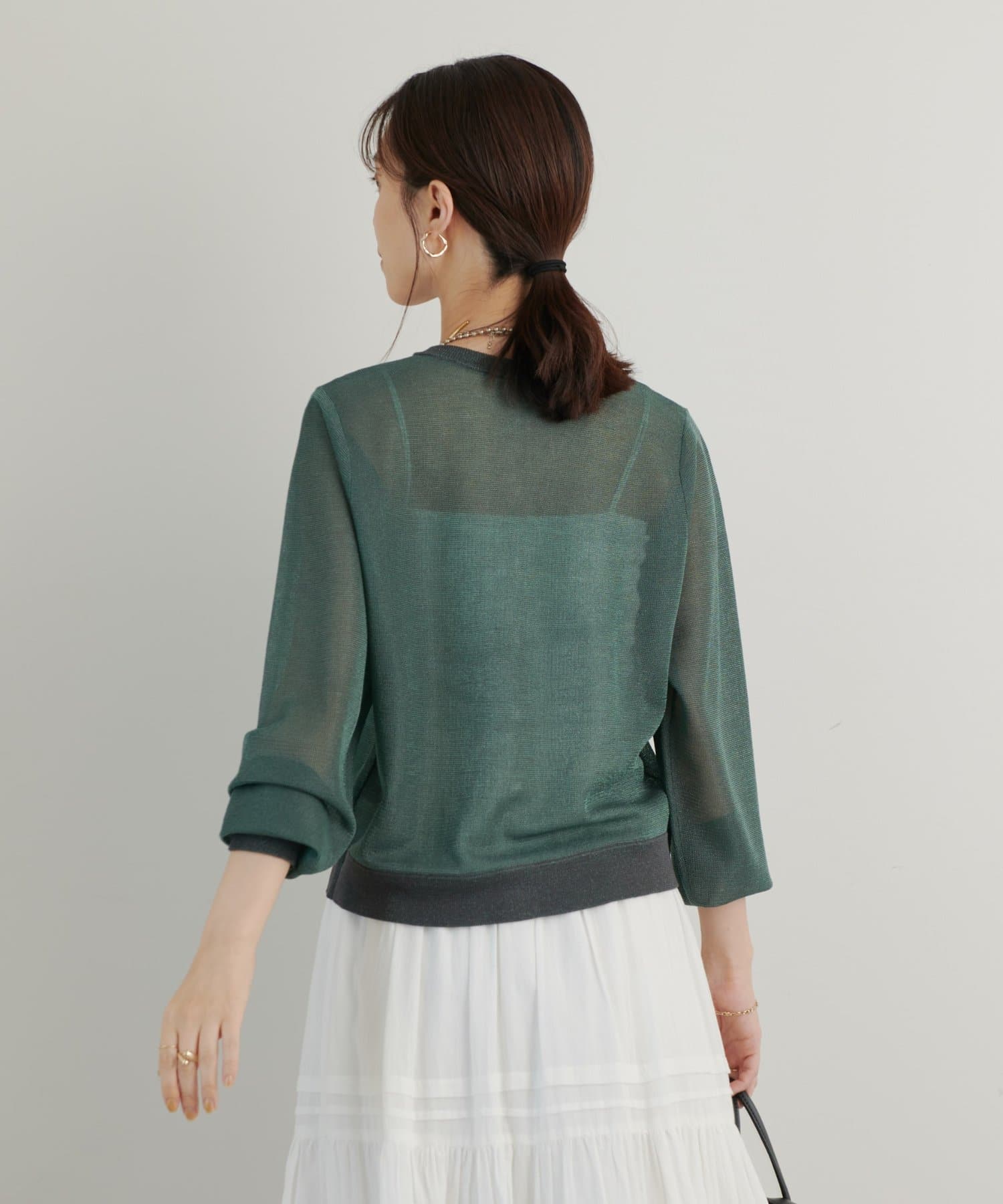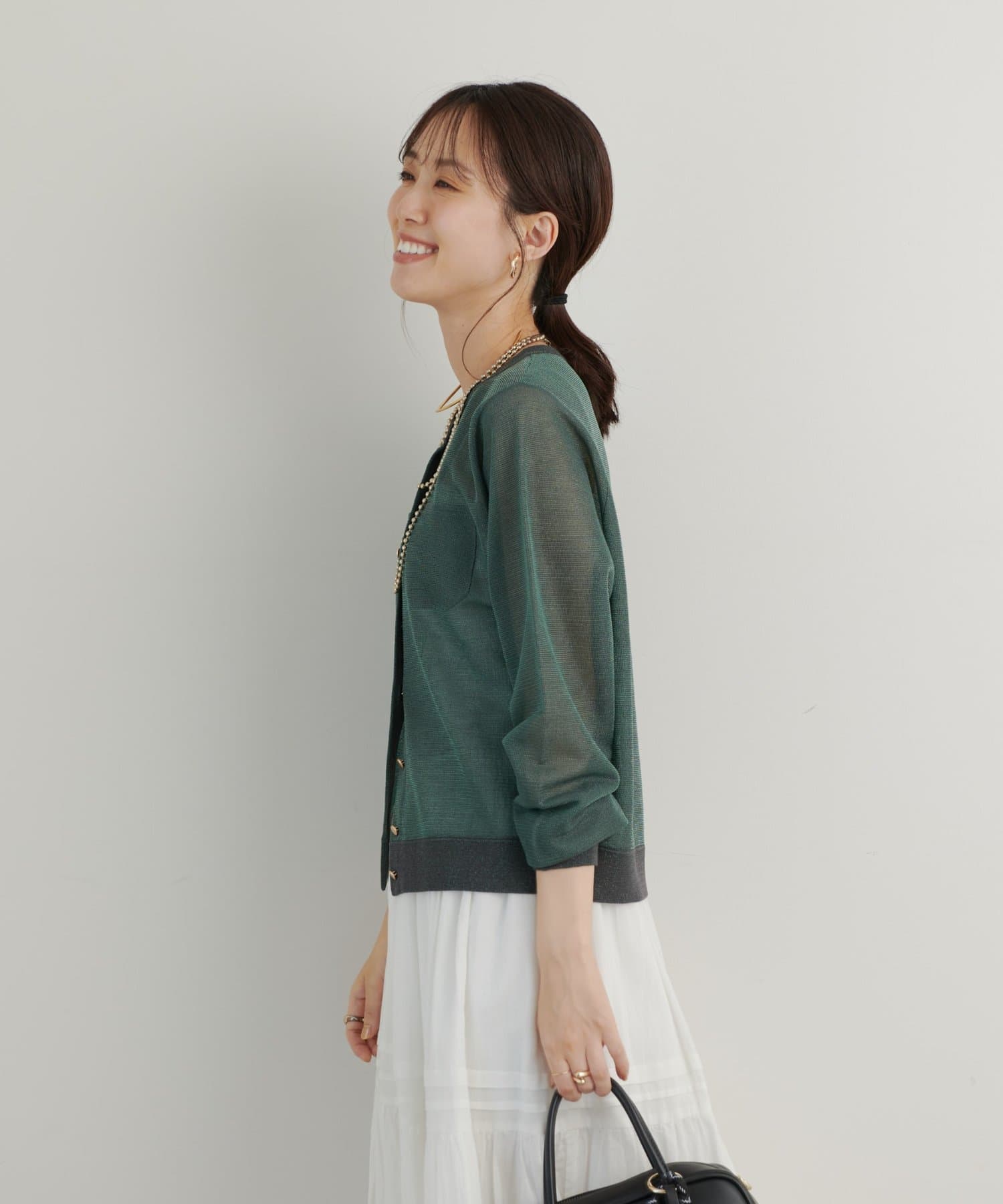 ・さりげないラメと透け感がトレンドを押さえたカーディガン。