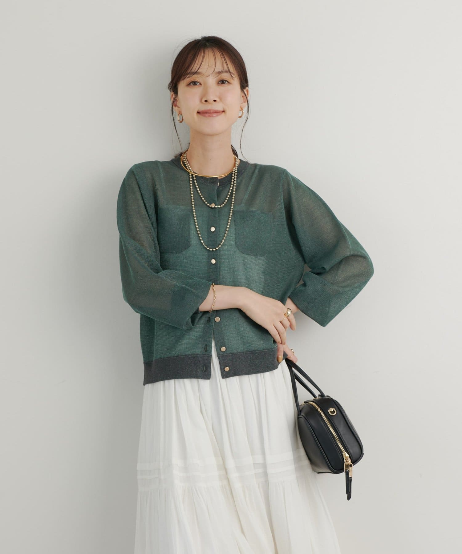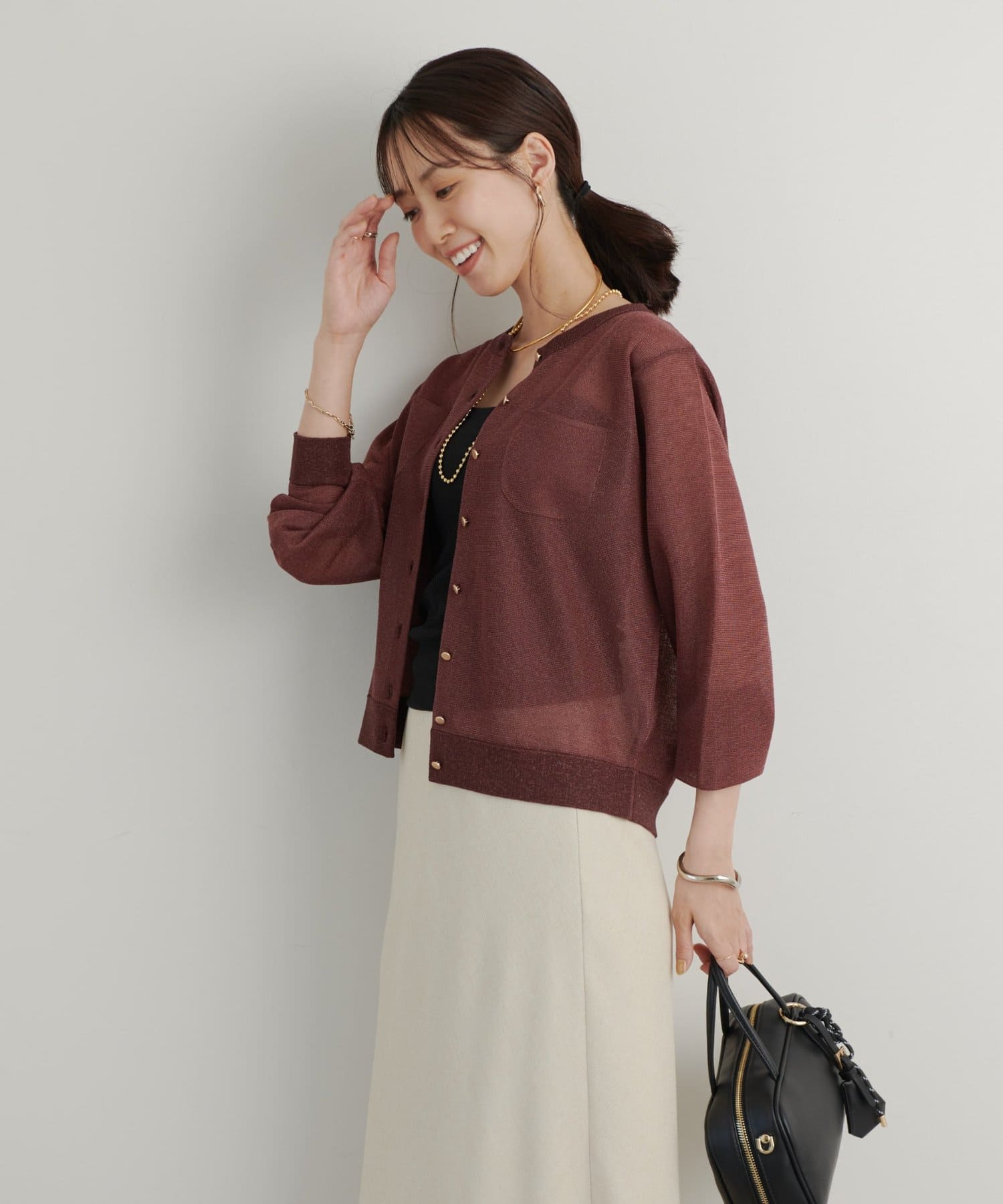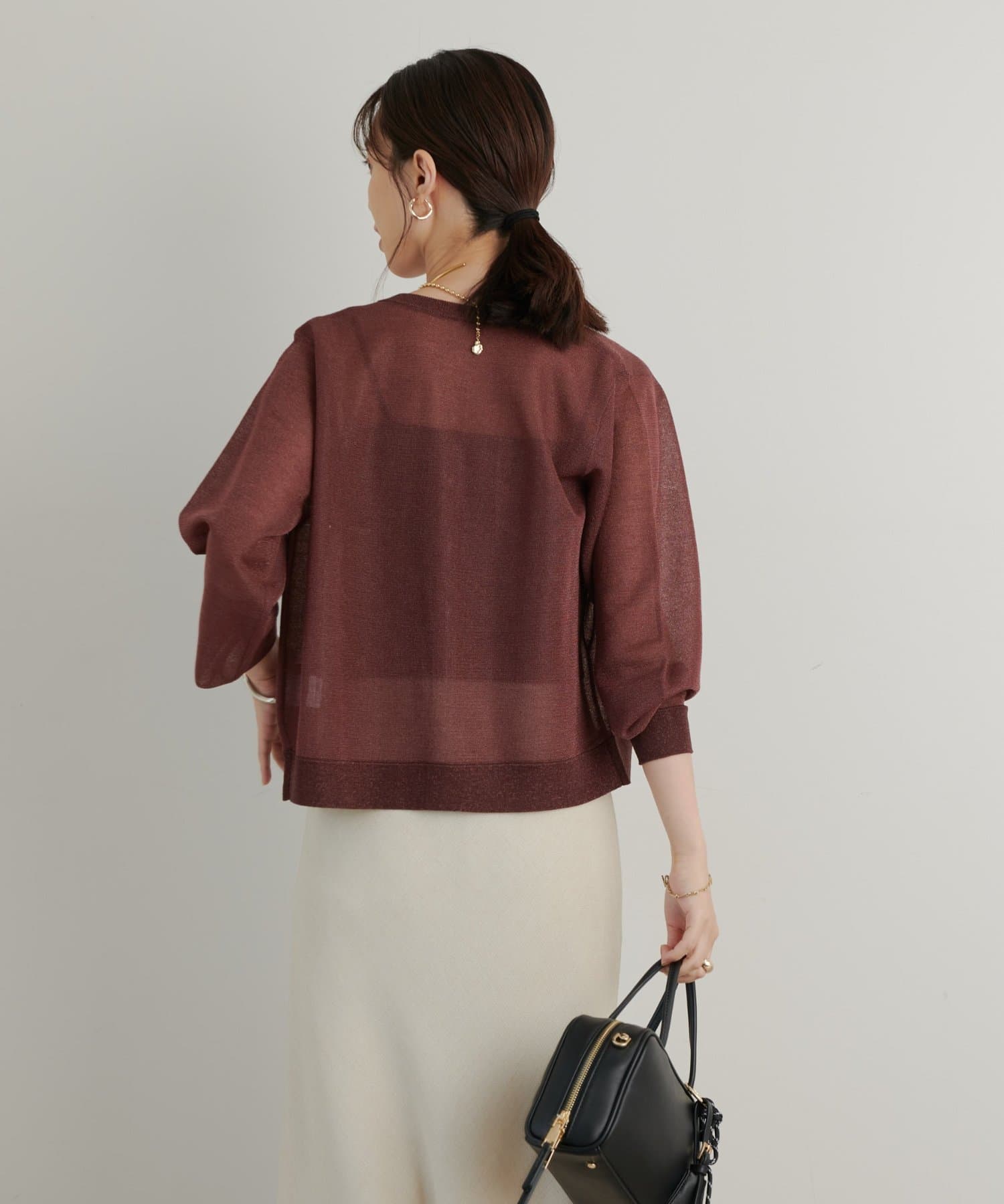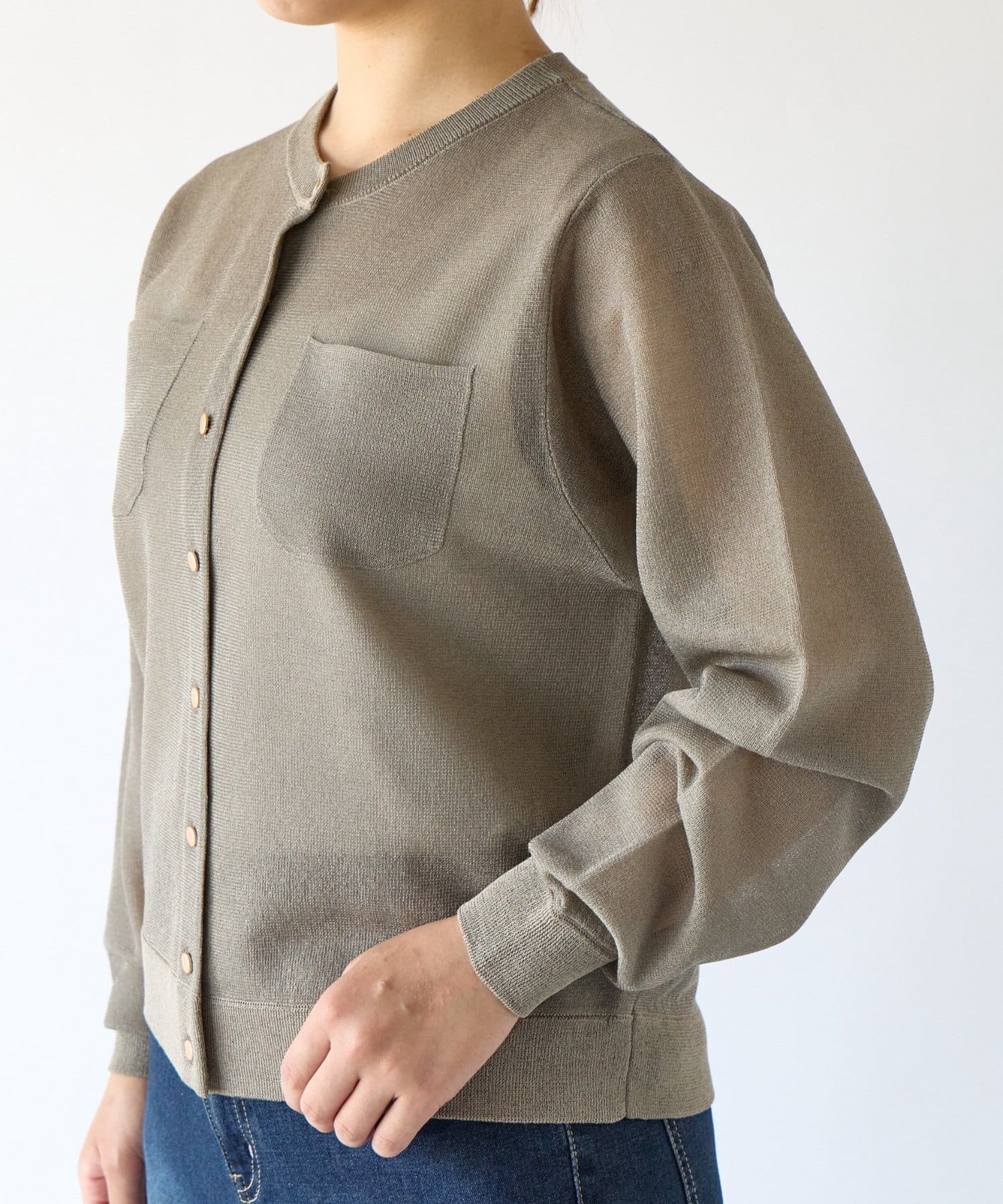 ・さりげないラメと透け感がトレンドを押さえたカーディガン。