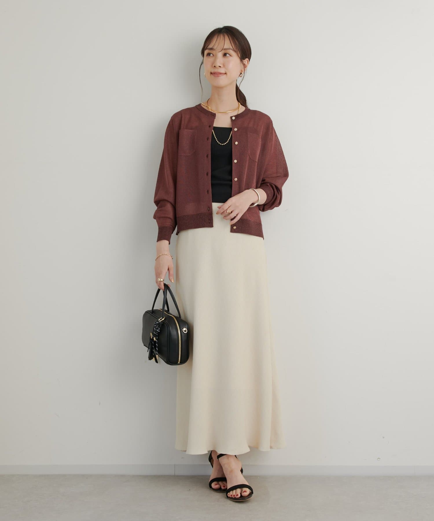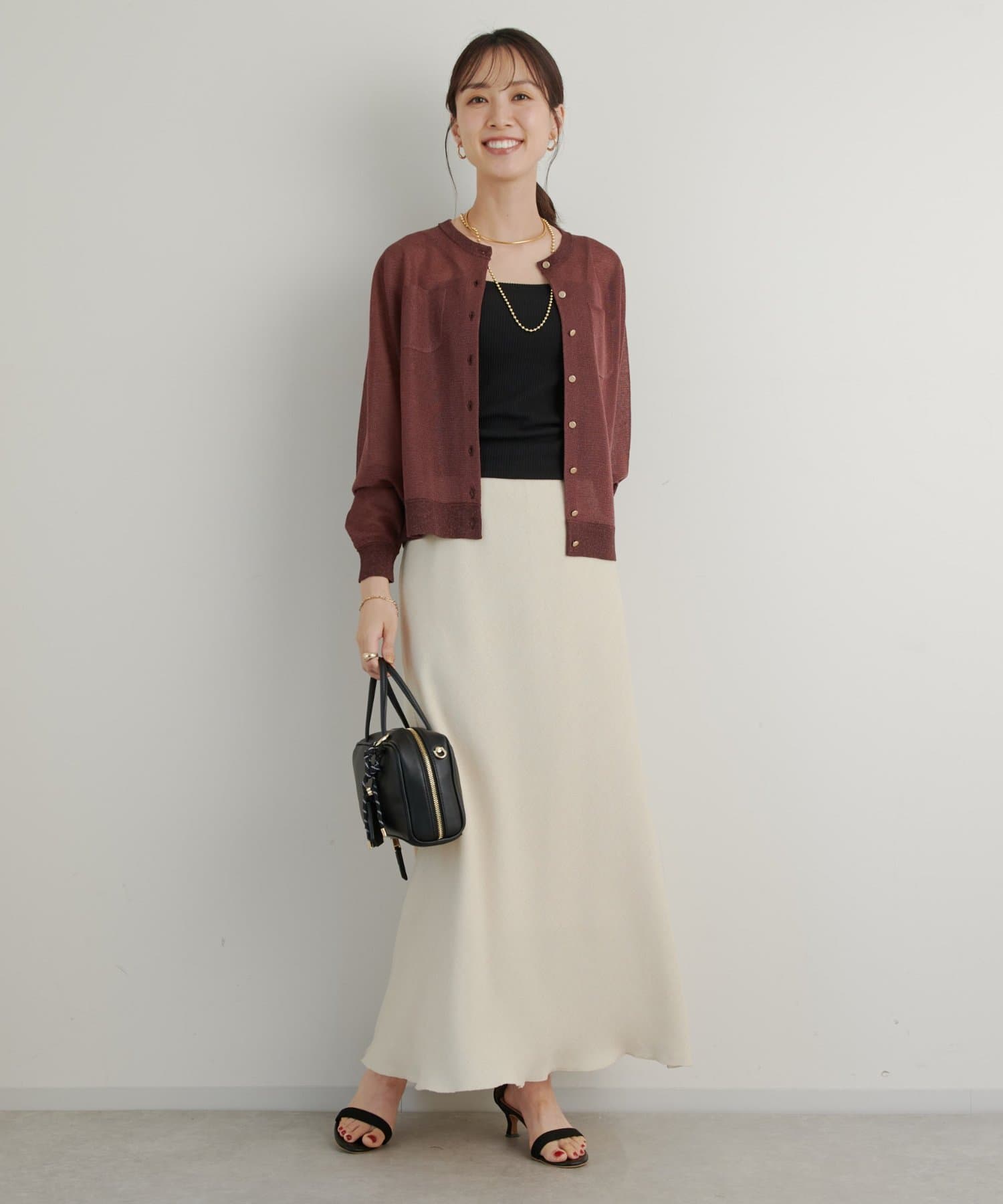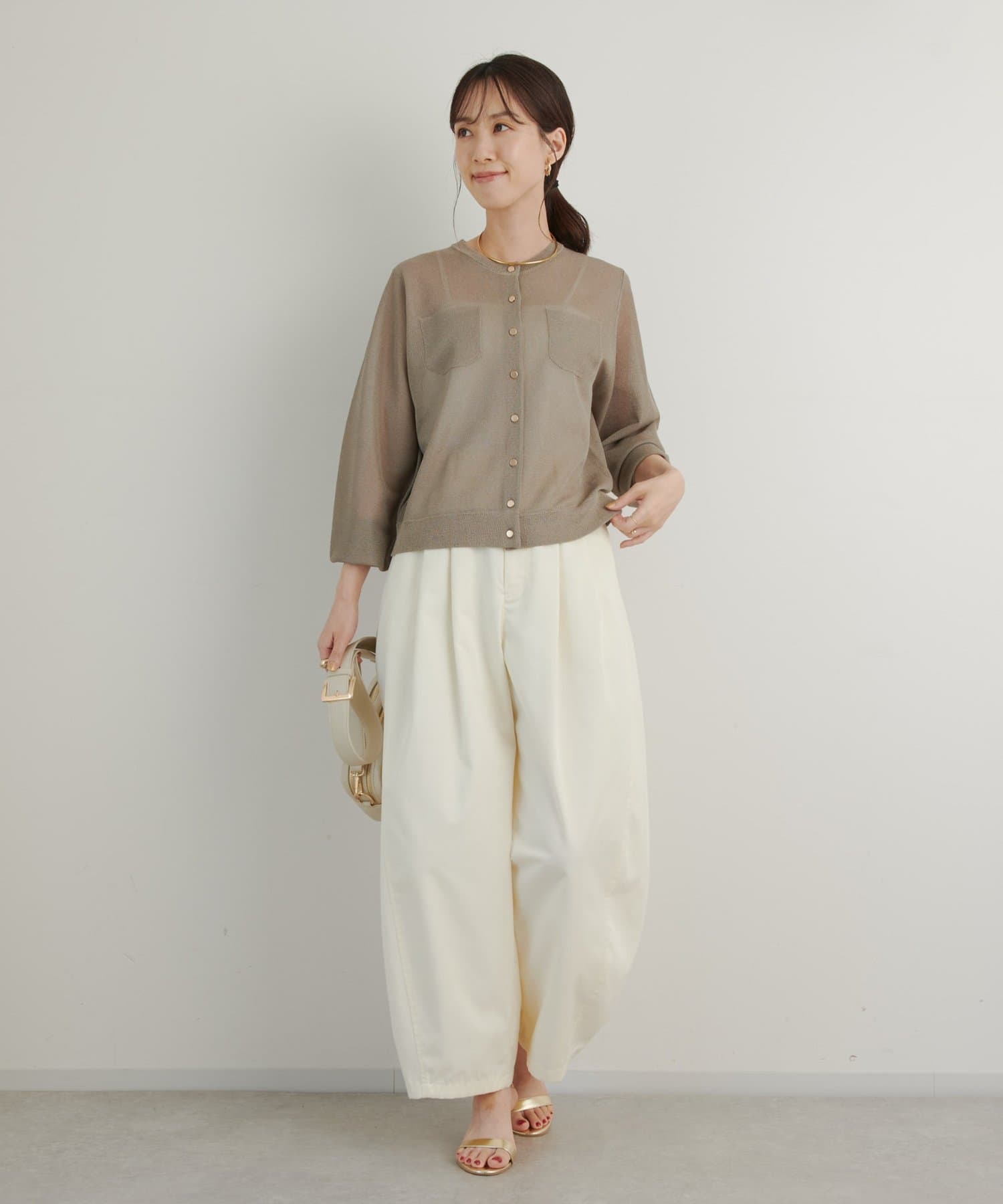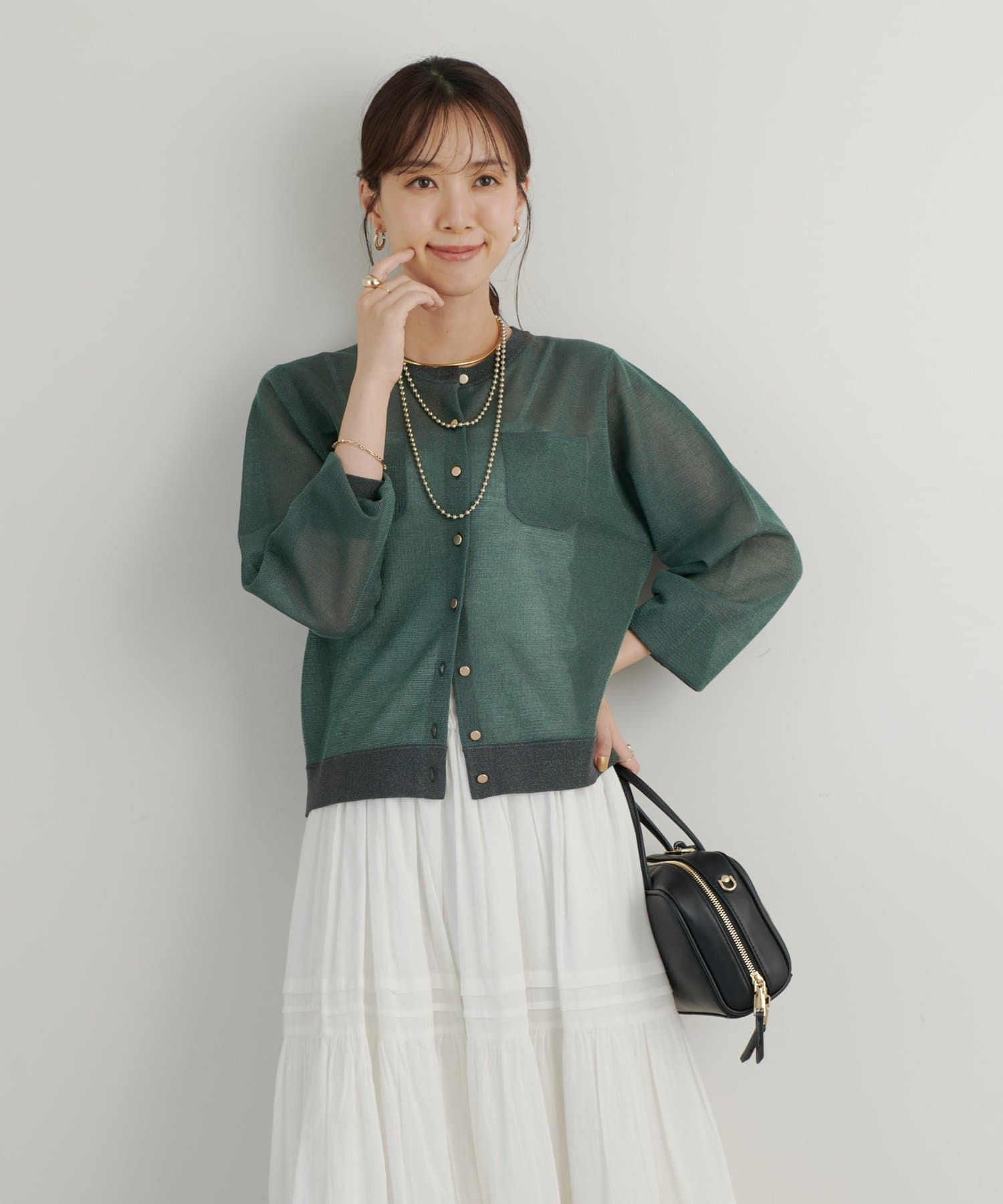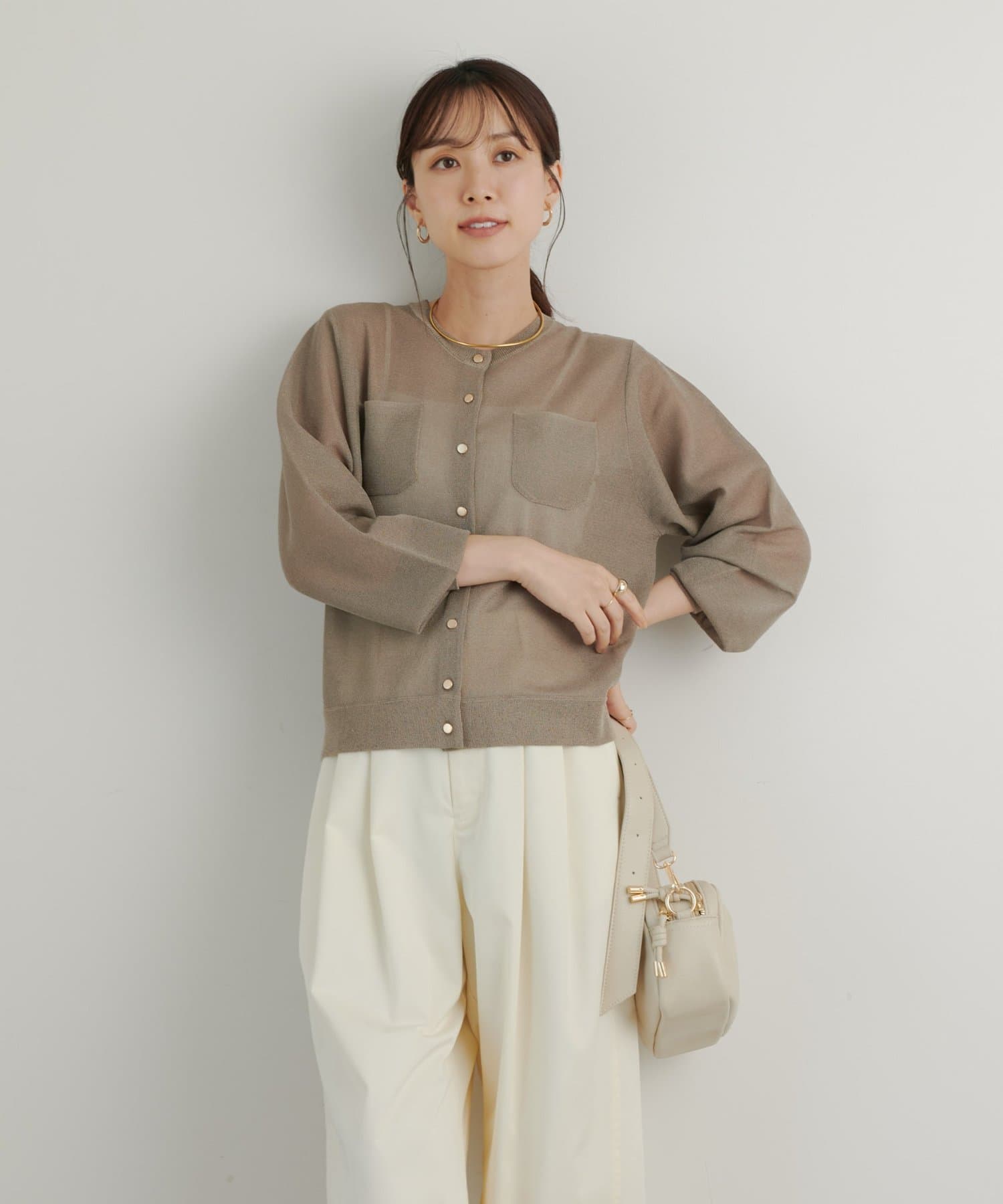 ・さりげないラメと透け感がトレンドを押さえたカーディガン。