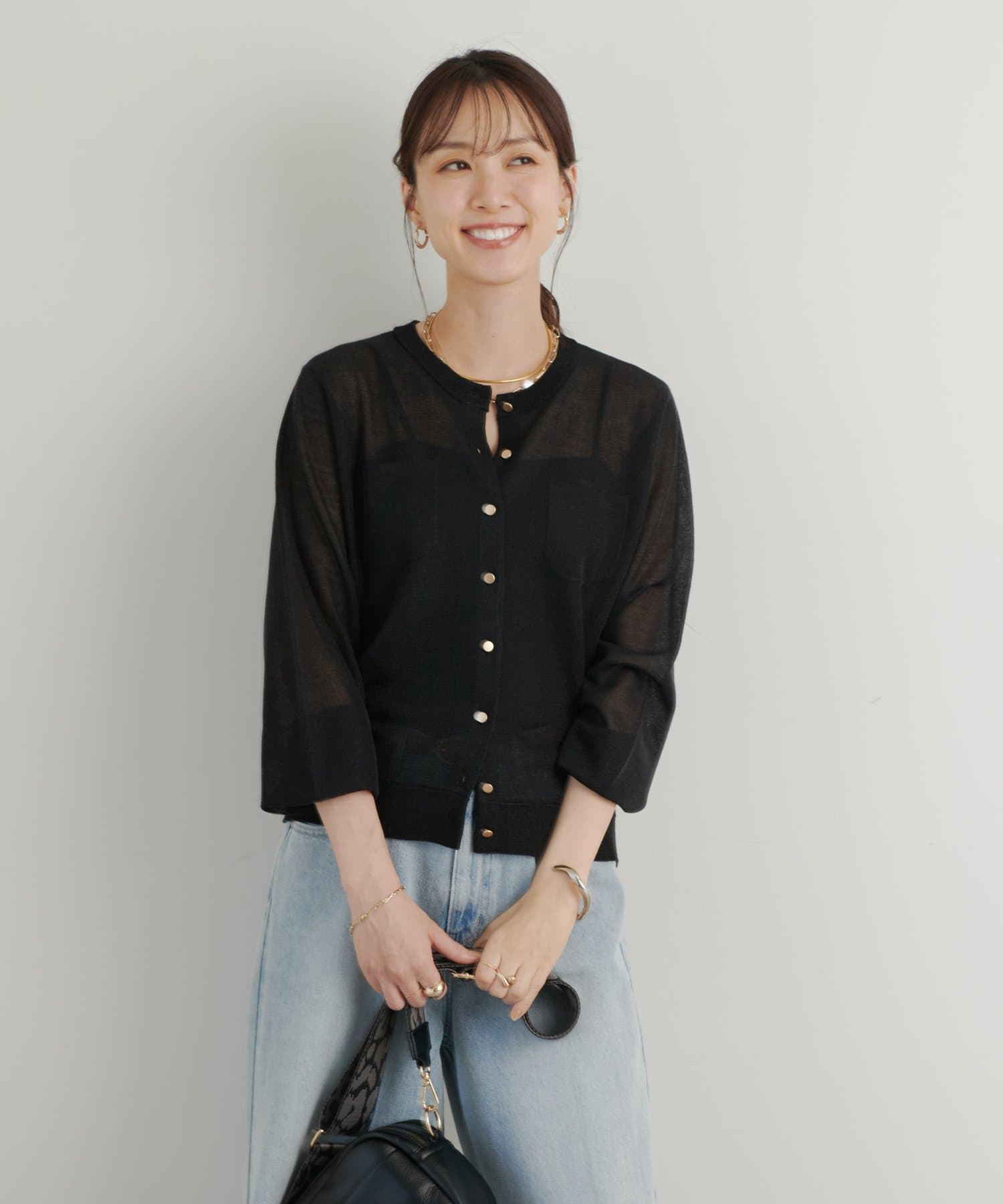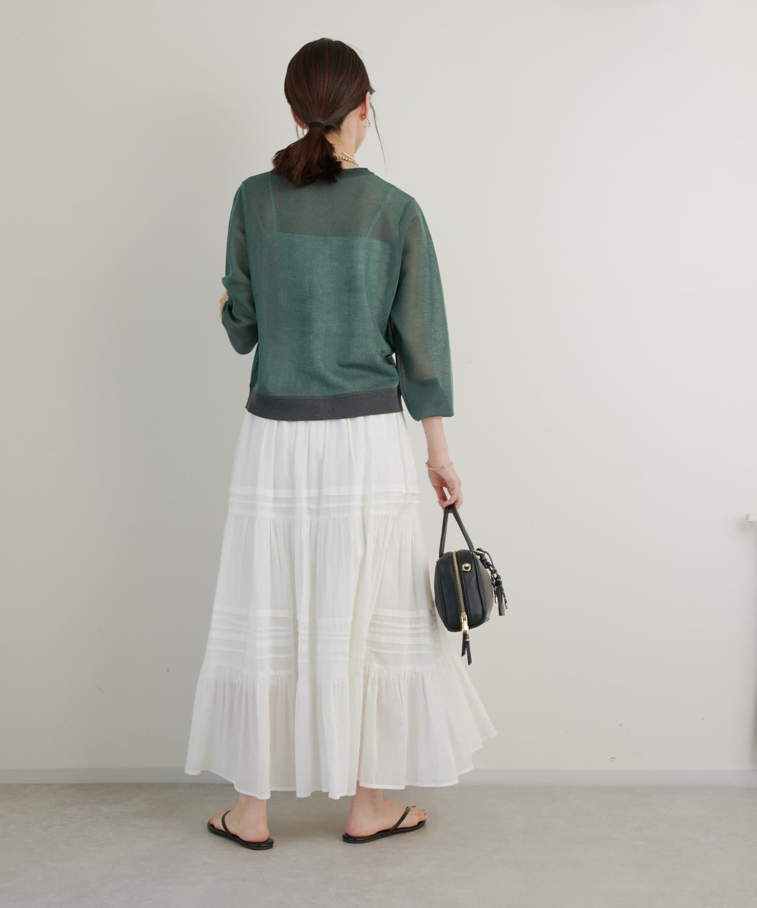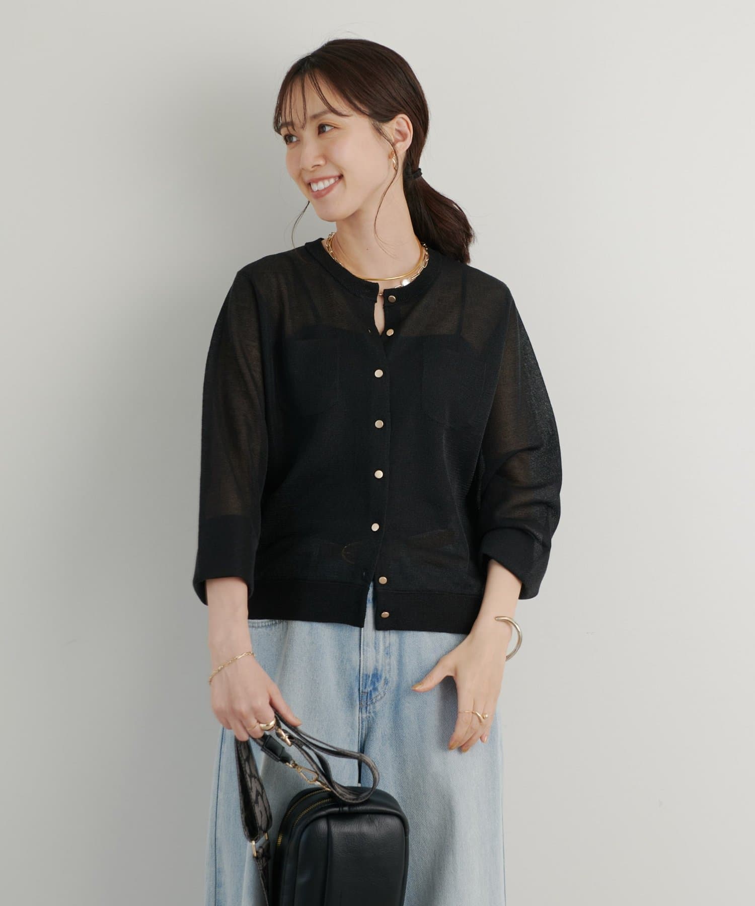 夏はキャミソールやタンクトップに合わせていただくとヘルシーな透け感がありおすすめです。