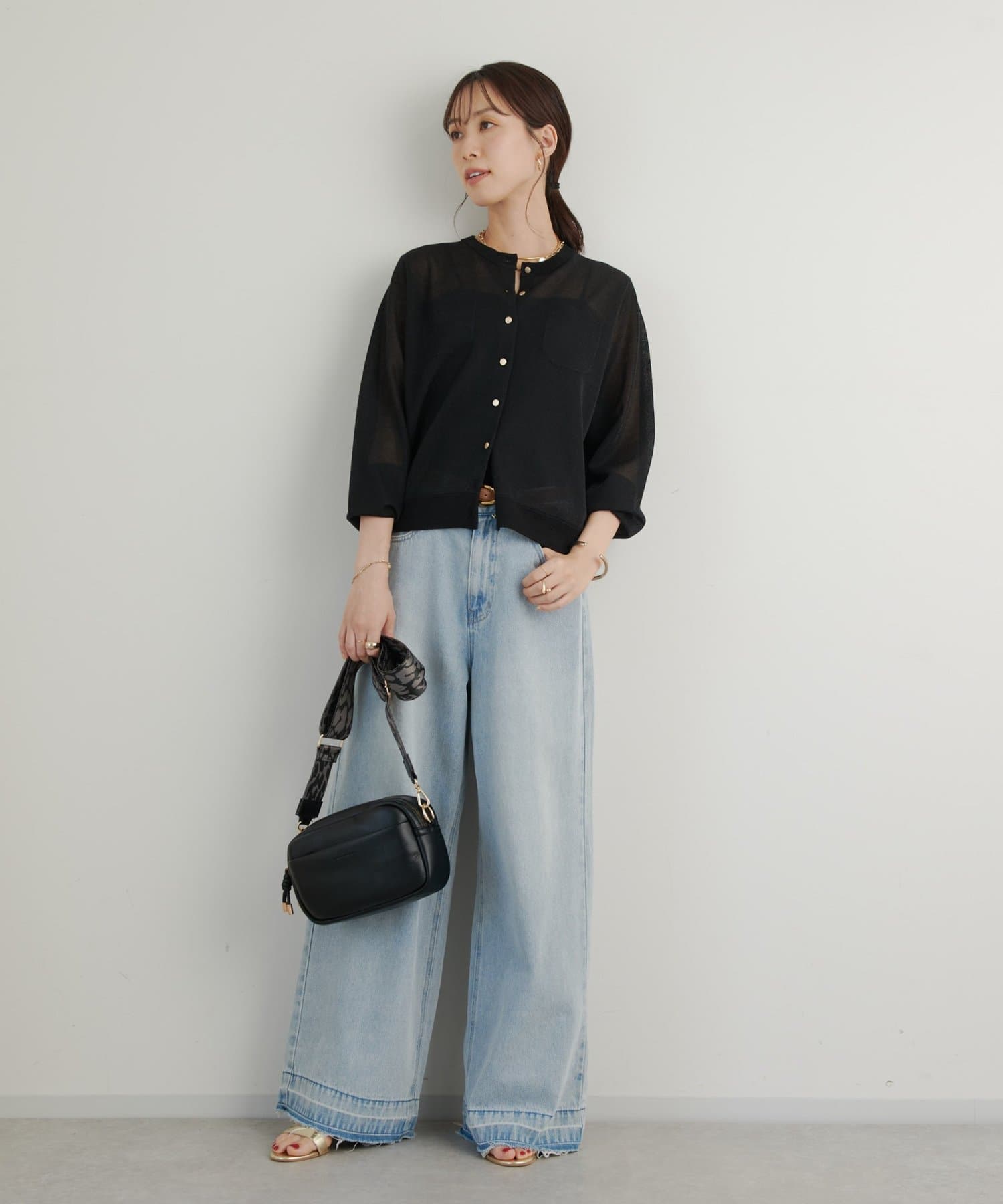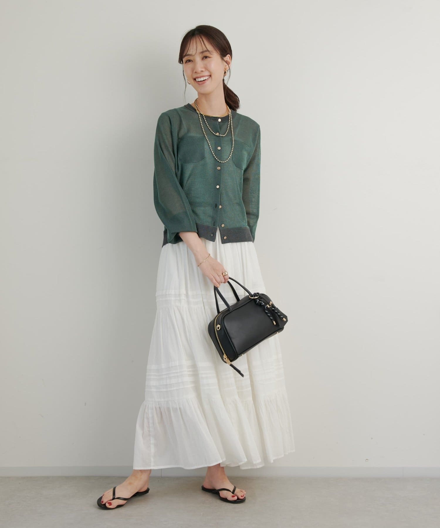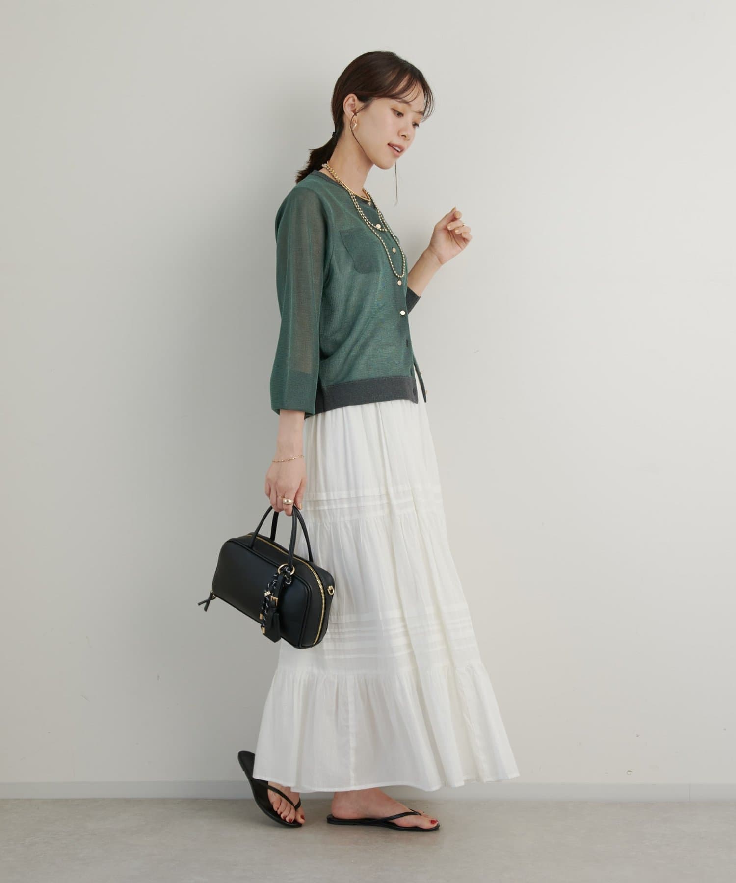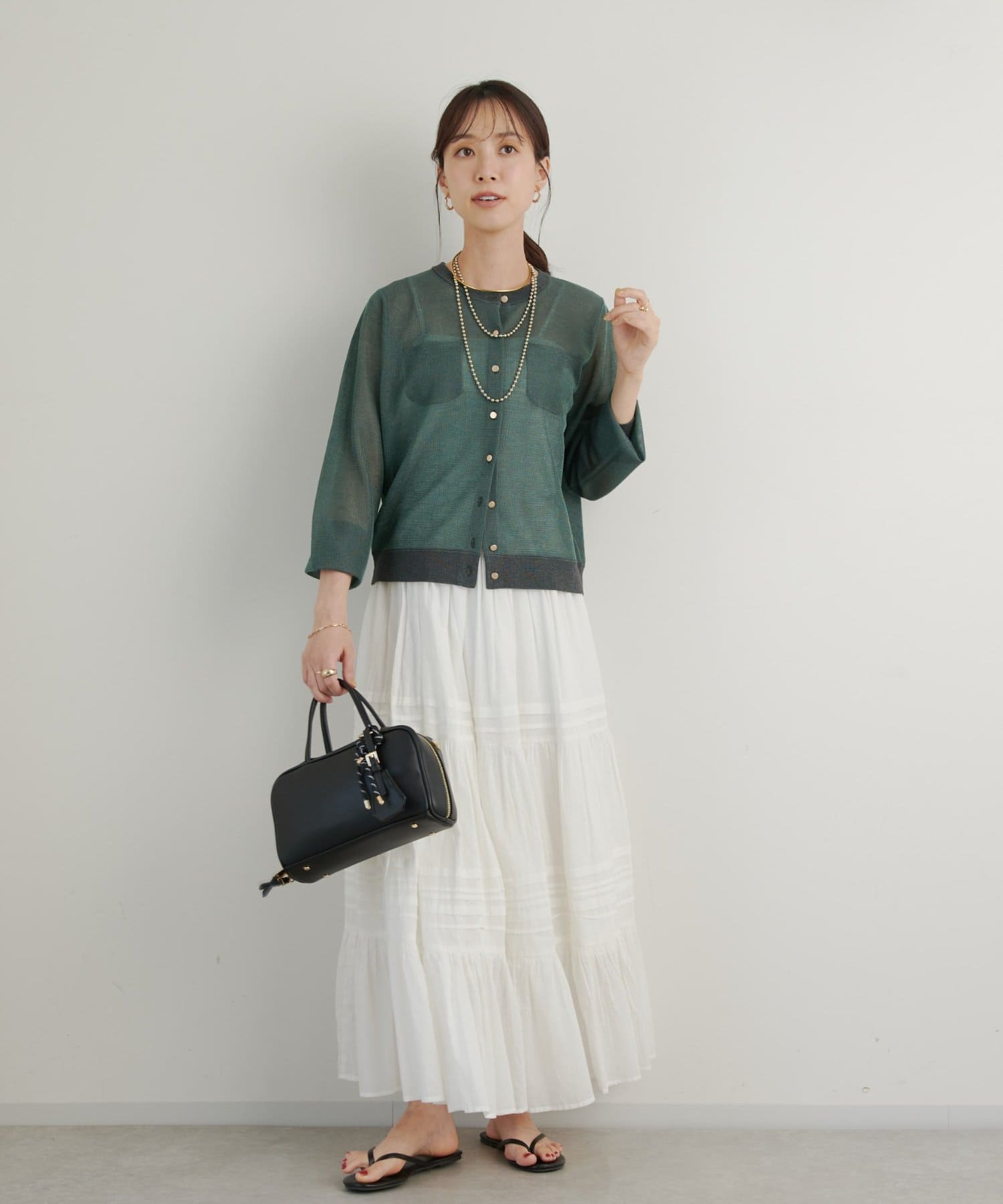 夏はキャミソールやタンクトップに合わせていただくとヘルシーな透け感がありおすすめです。