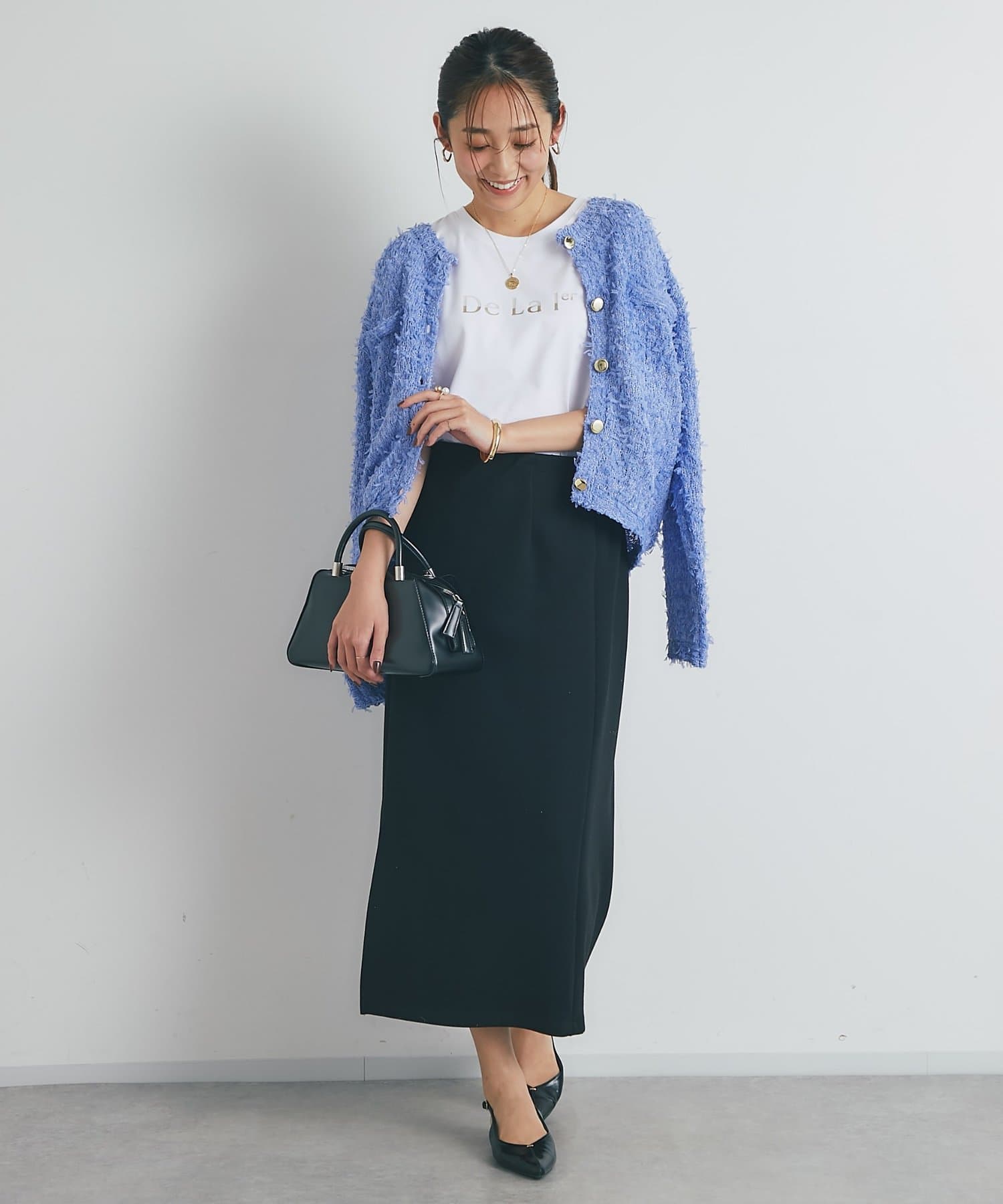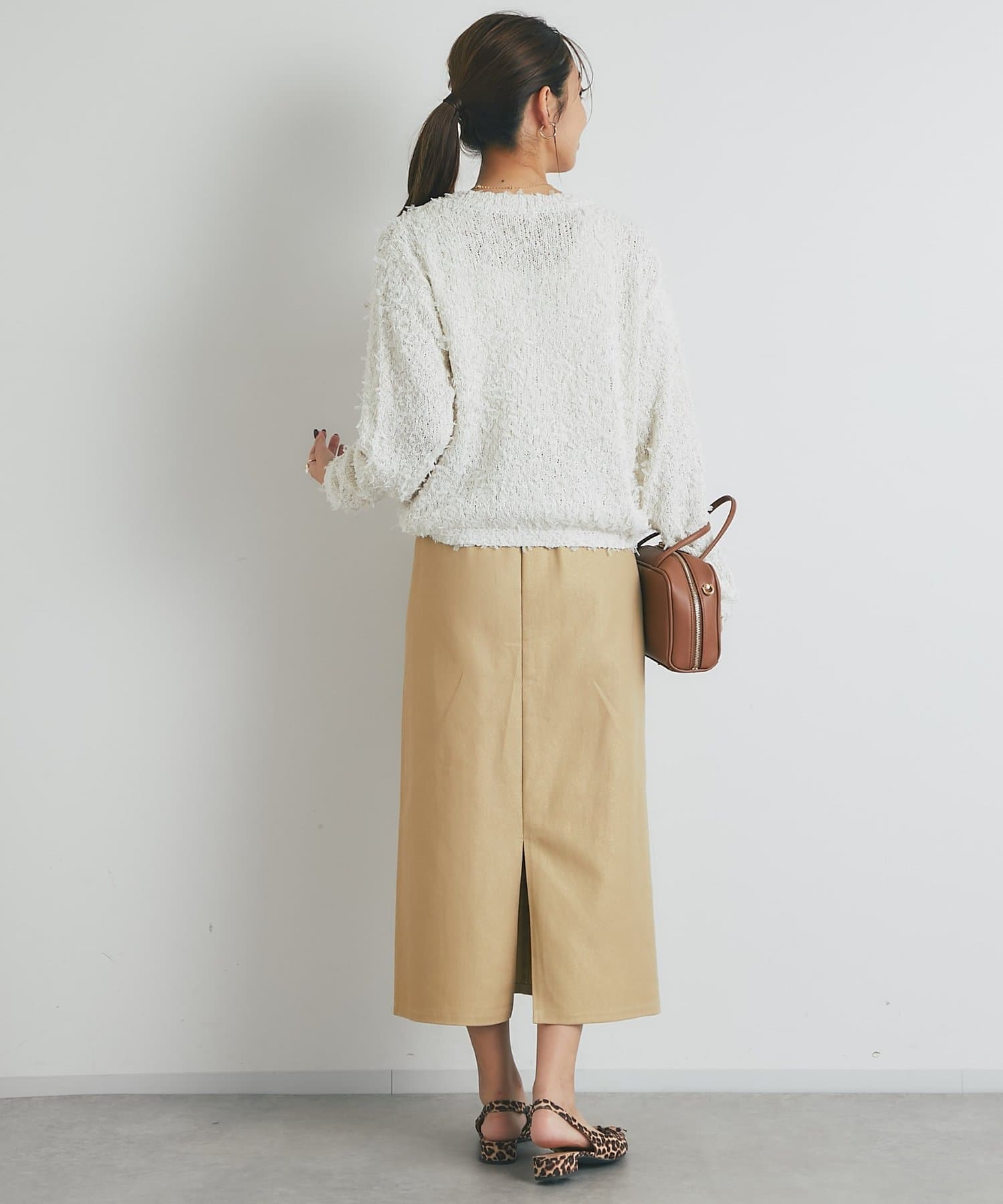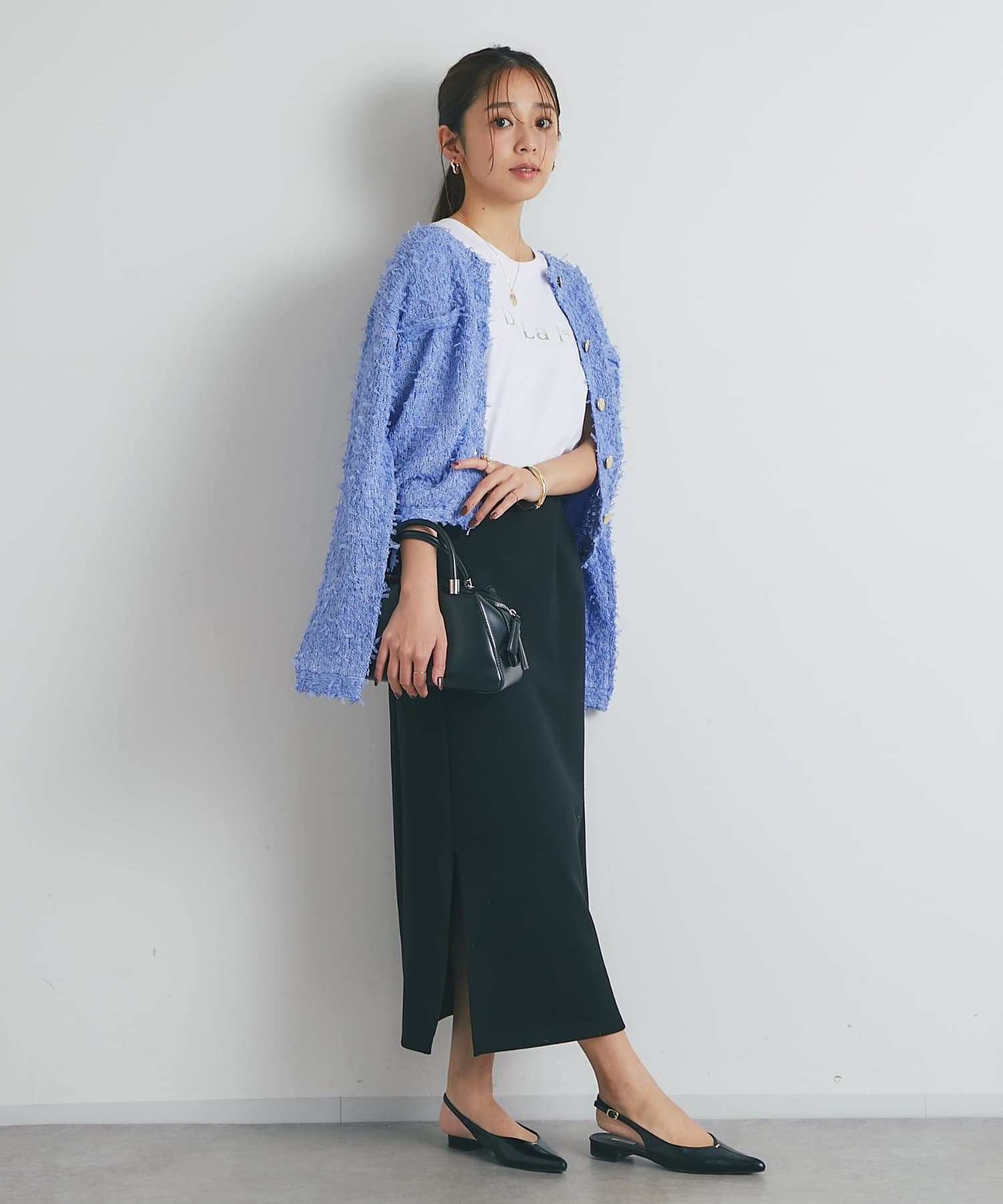 着丈がややコンパクトめなので、ボリューム感のあるスカートやデニムパンツで合わせてもバランスが取りやすく◎