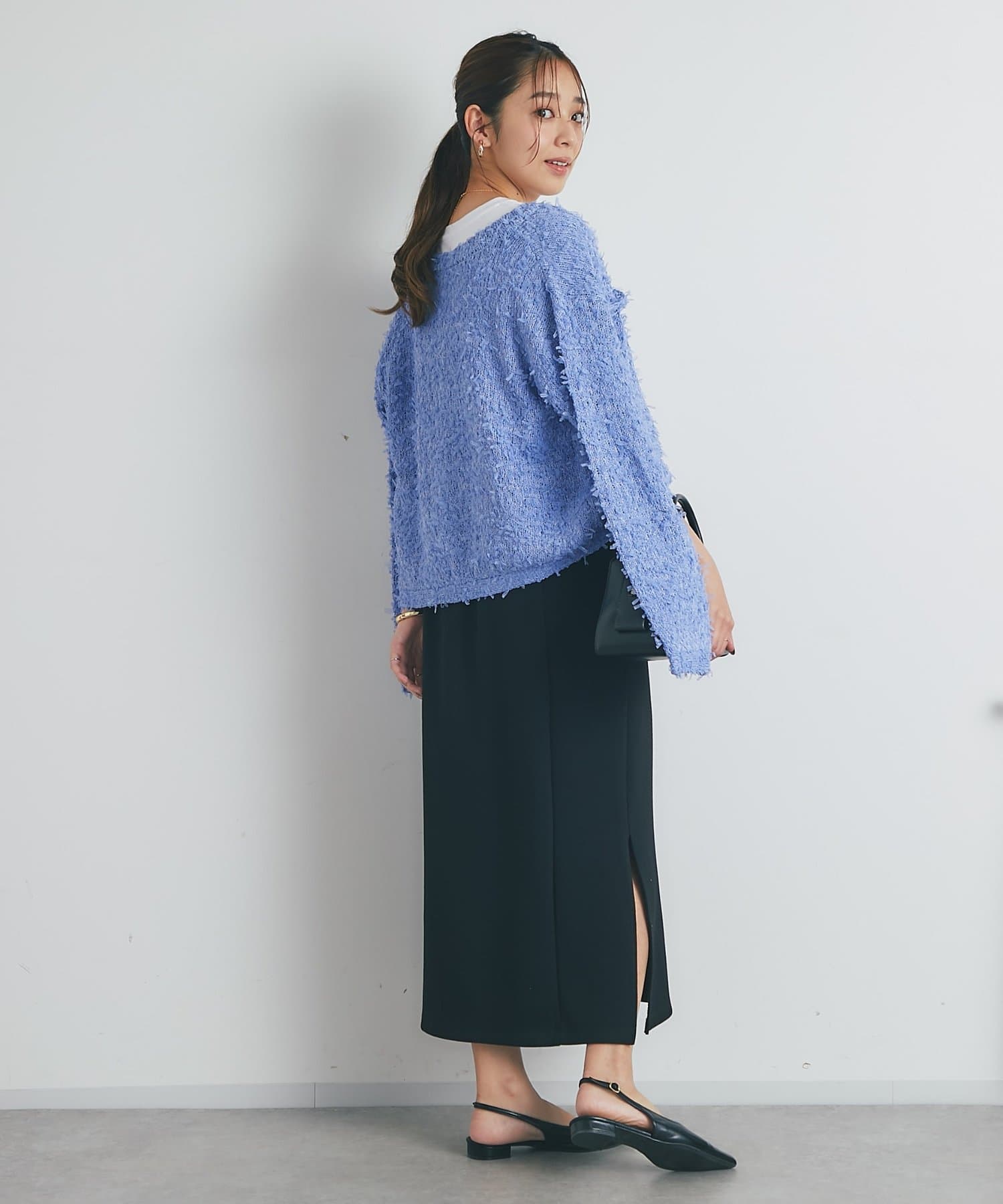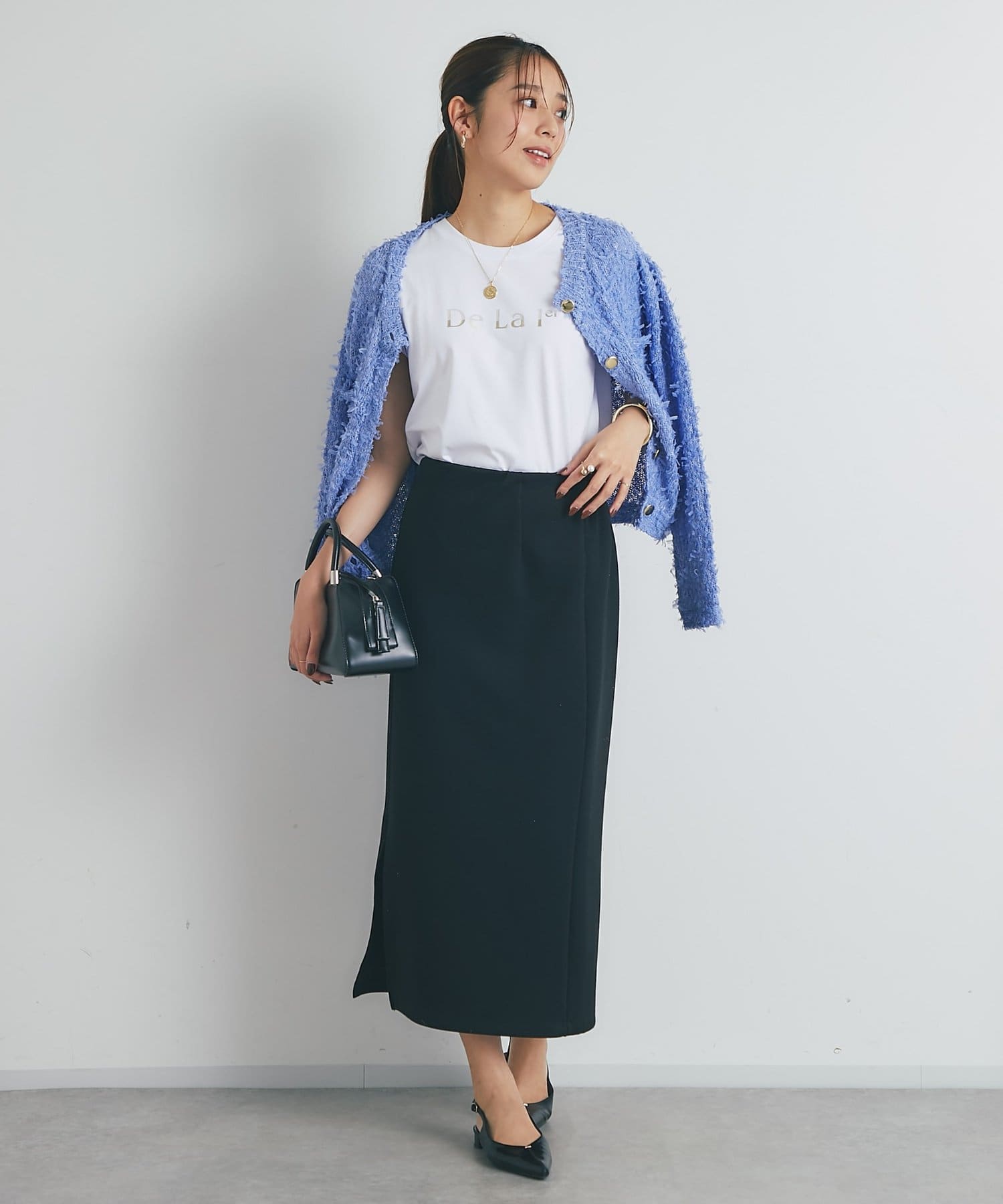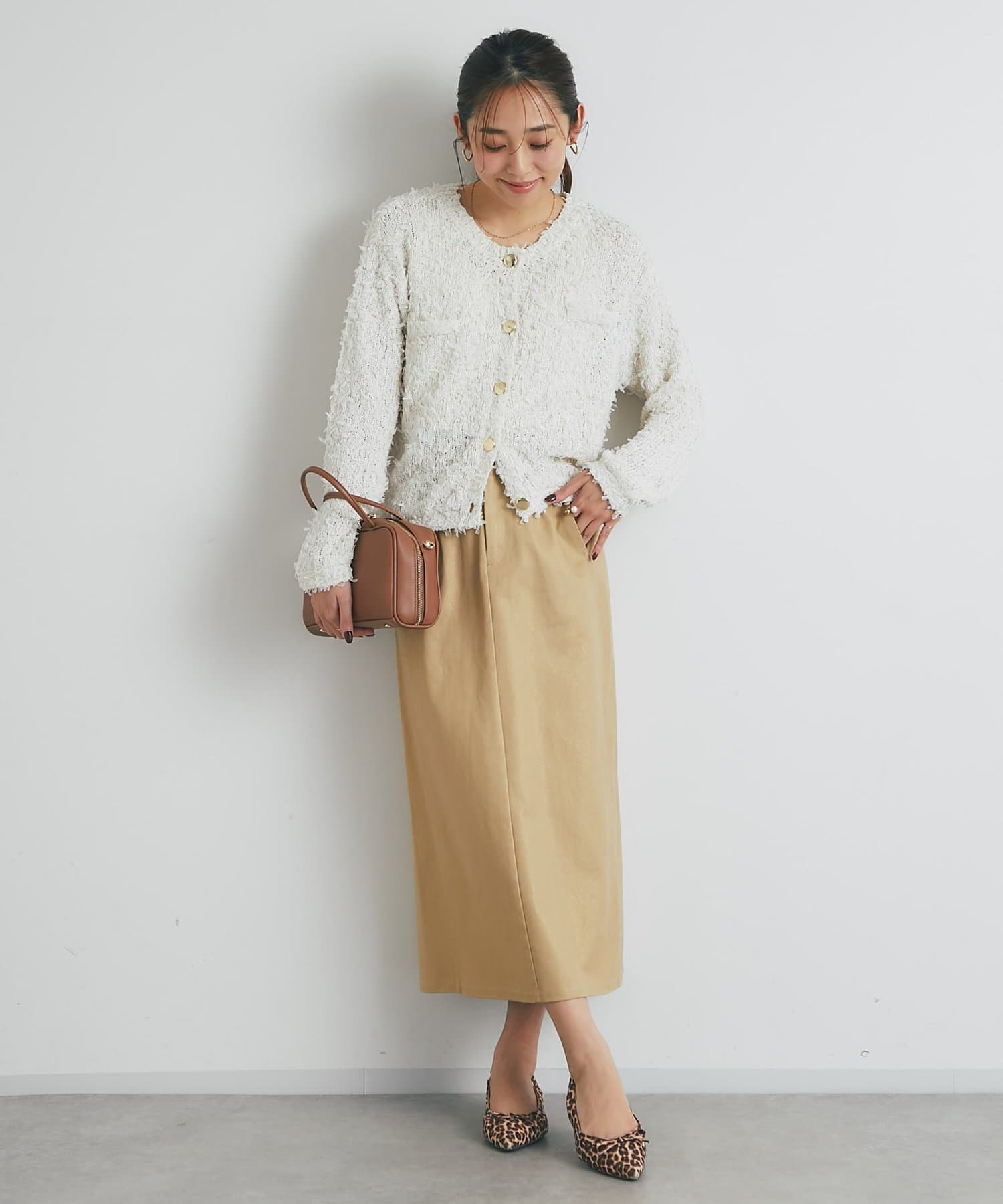 着丈がややコンパクトめなので、ボリューム感のあるスカートやデニムパンツで合わせてもバランスが取りやすく◎