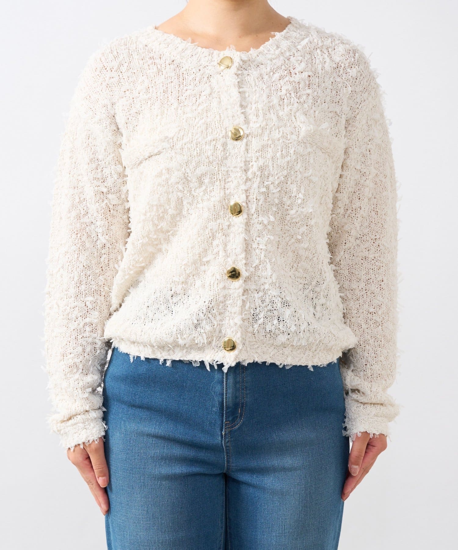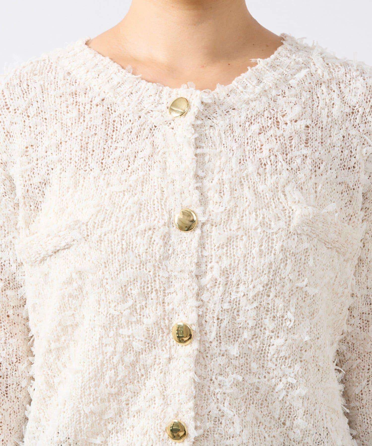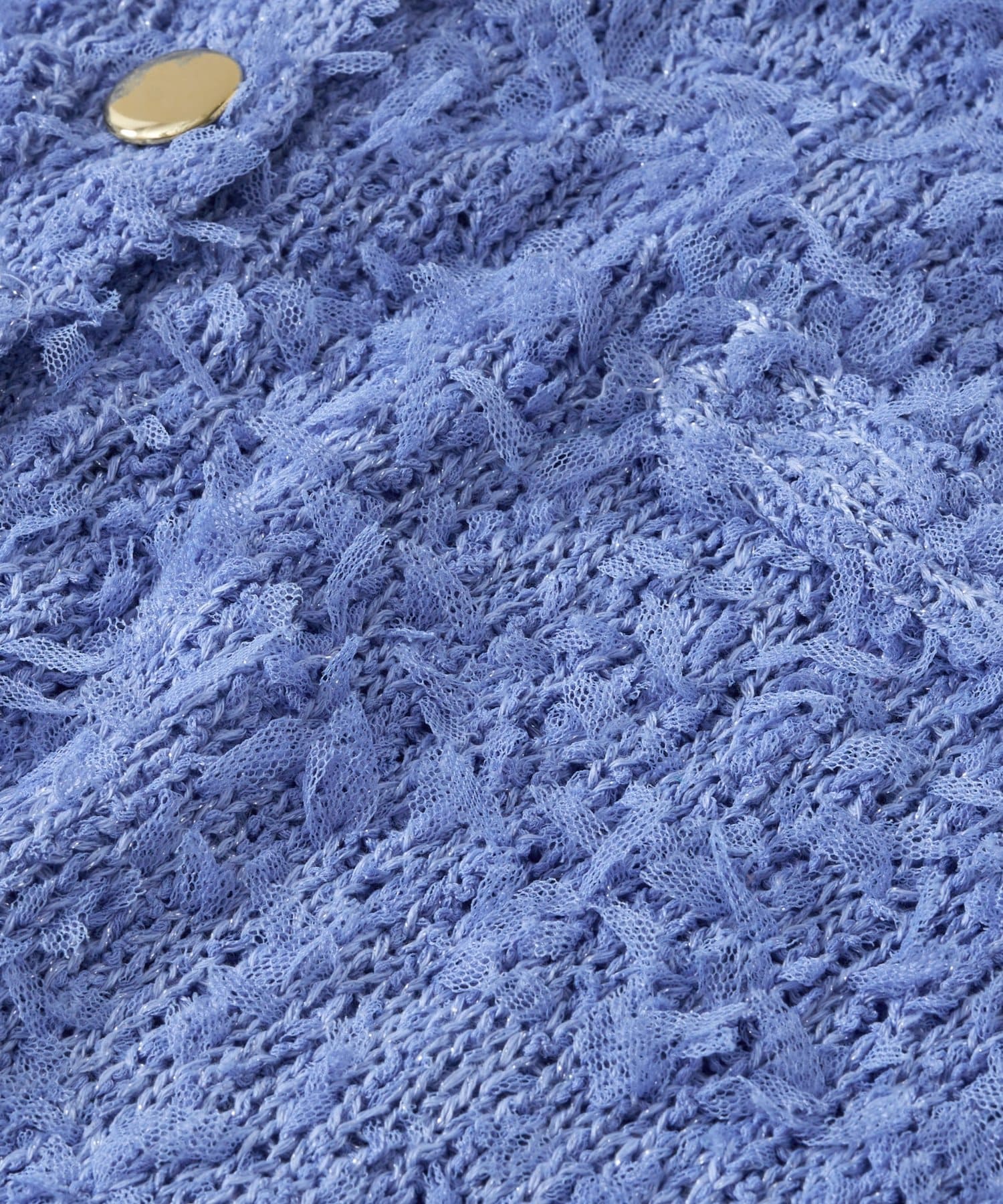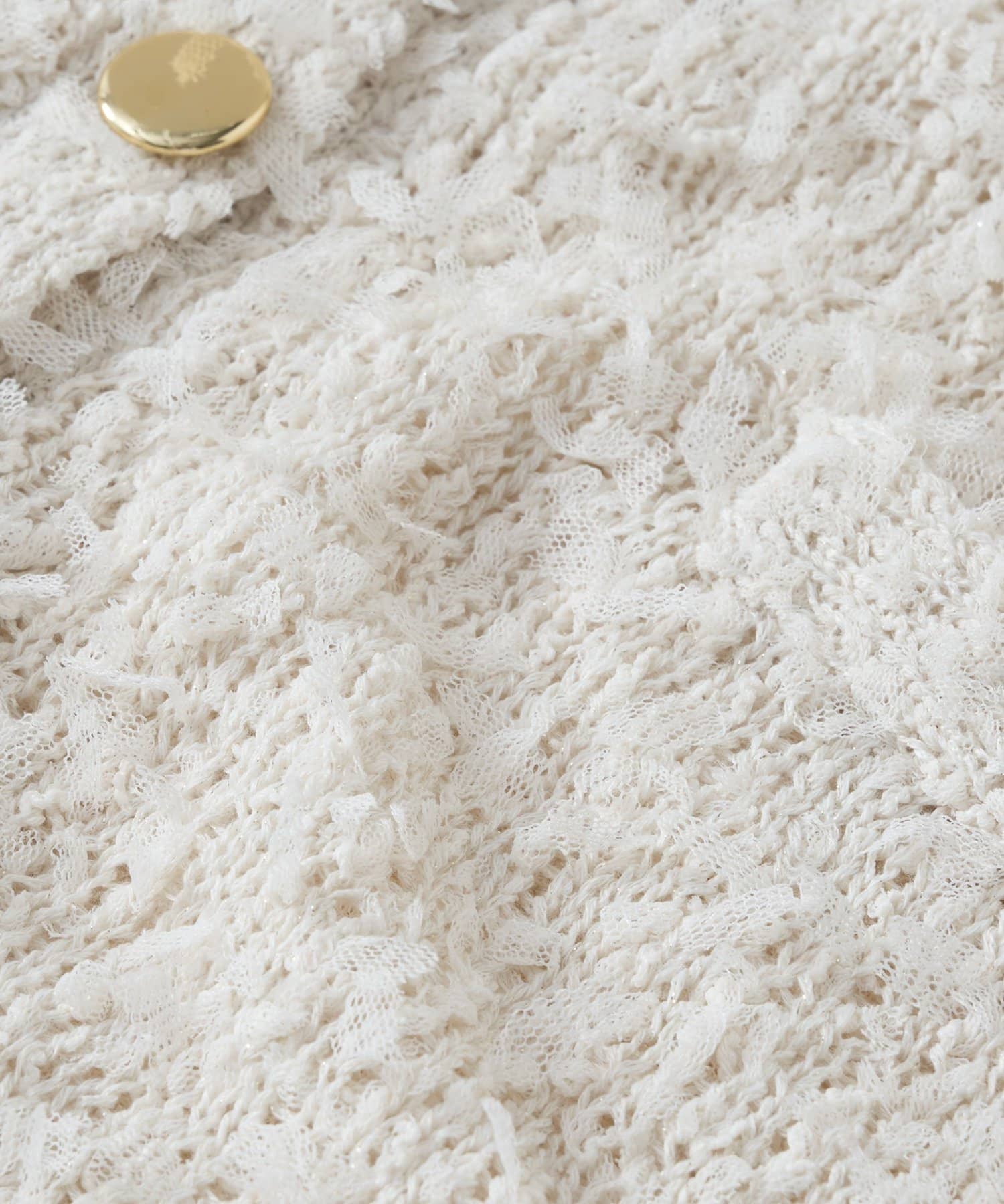 ・ほんのりラメ感がポイントの、チュールテープヤーン素材で抜け感を演出してくれるカーディガン。
