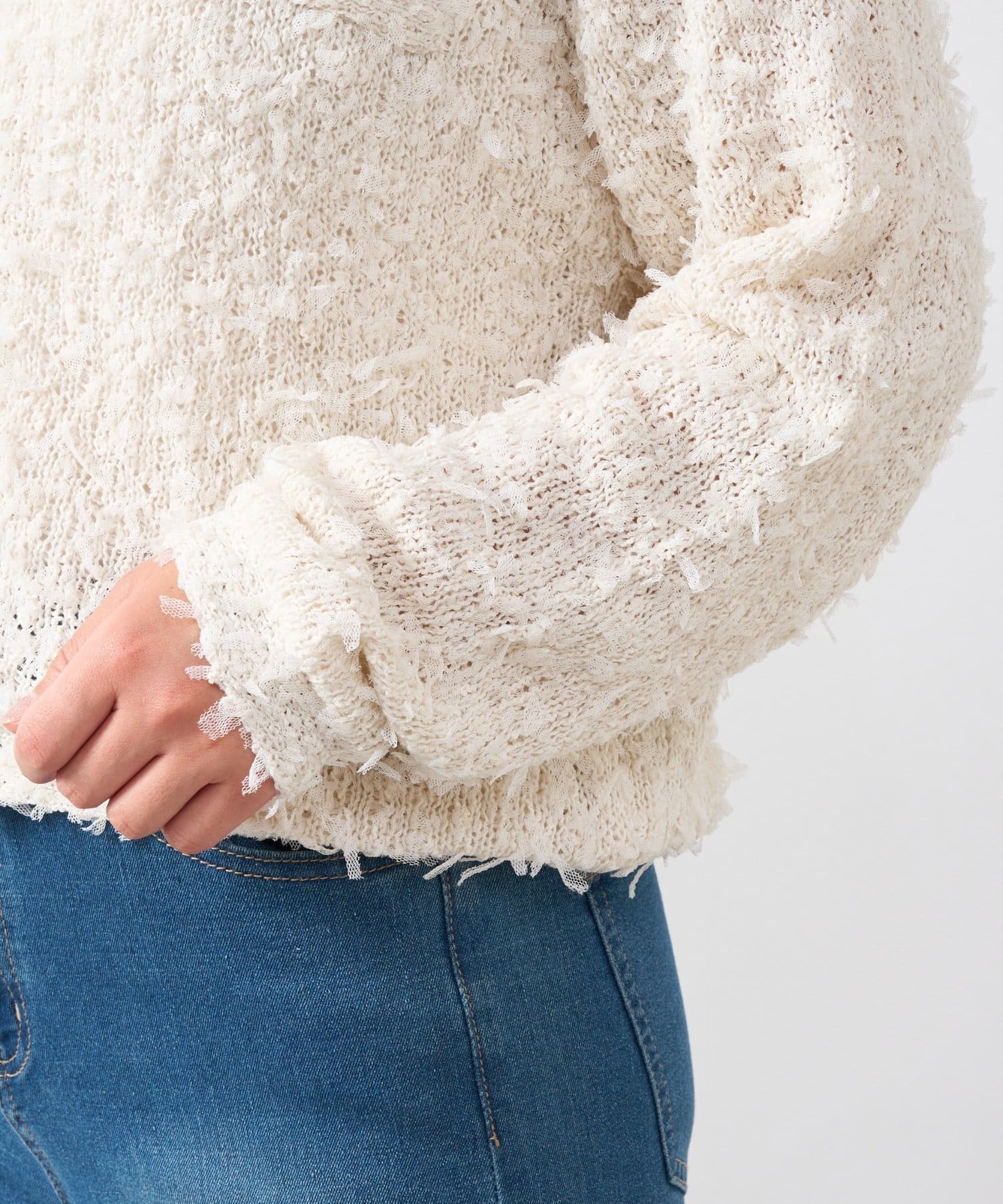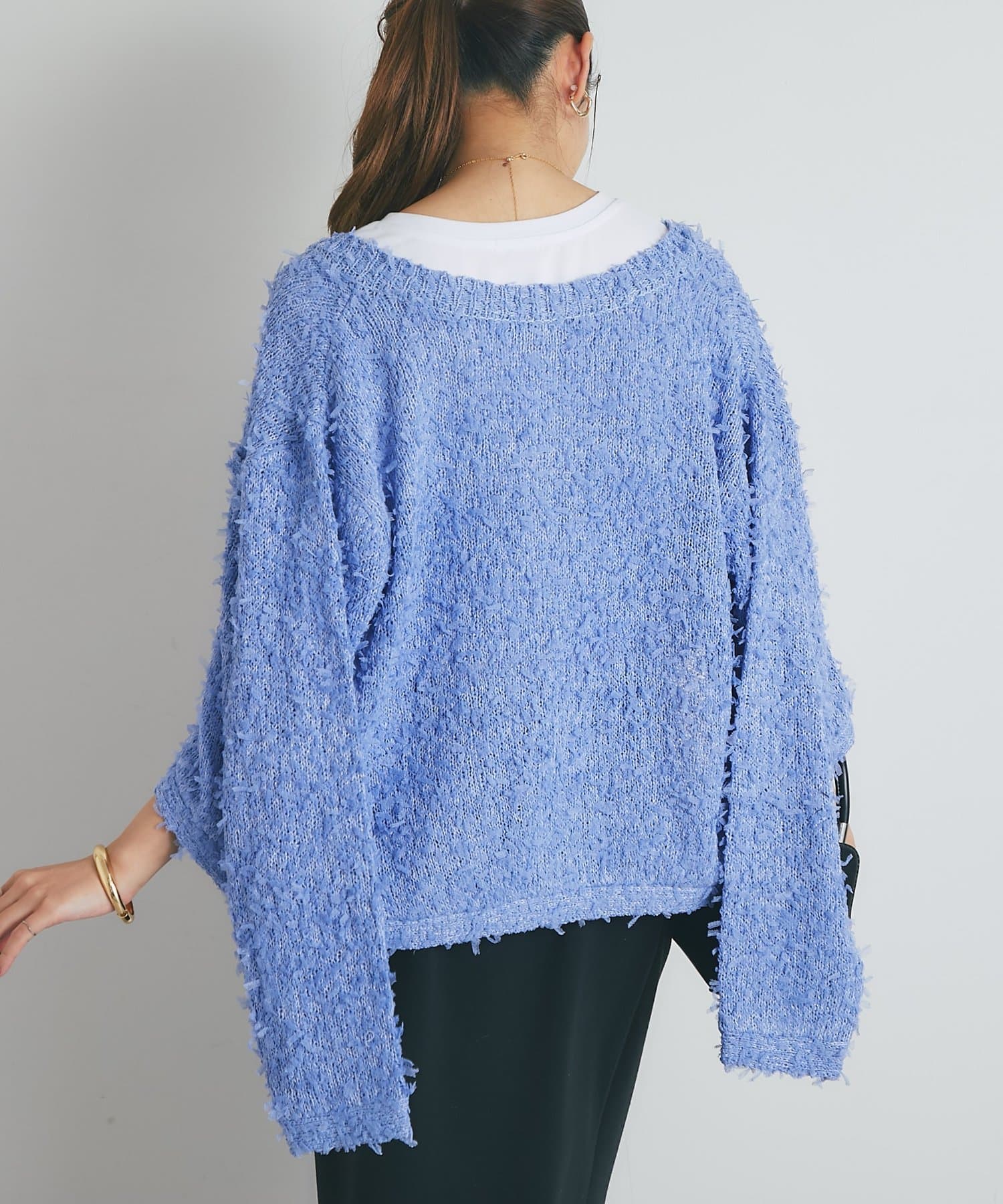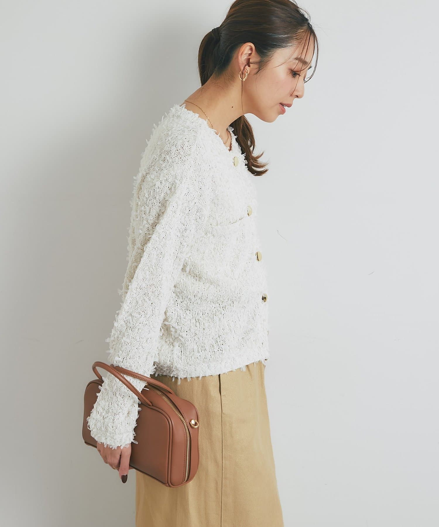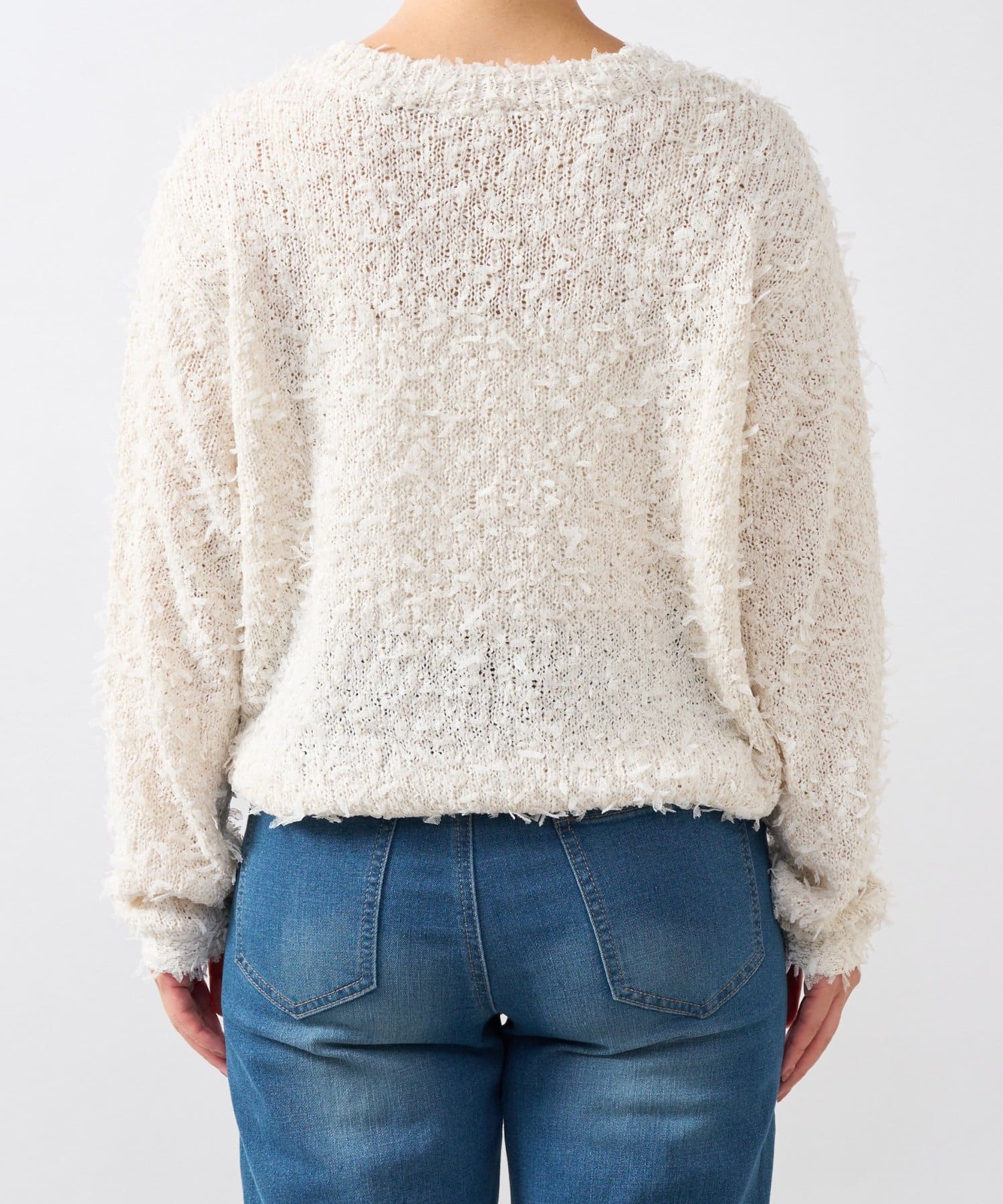 ・ほんのりラメ感がポイントの、チュールテープヤーン素材で抜け感を演出してくれるカーディガン。
