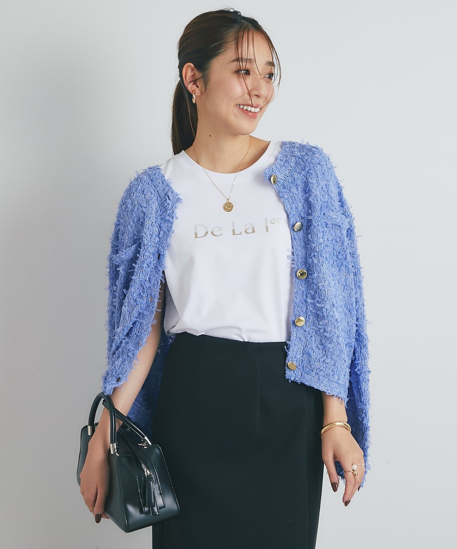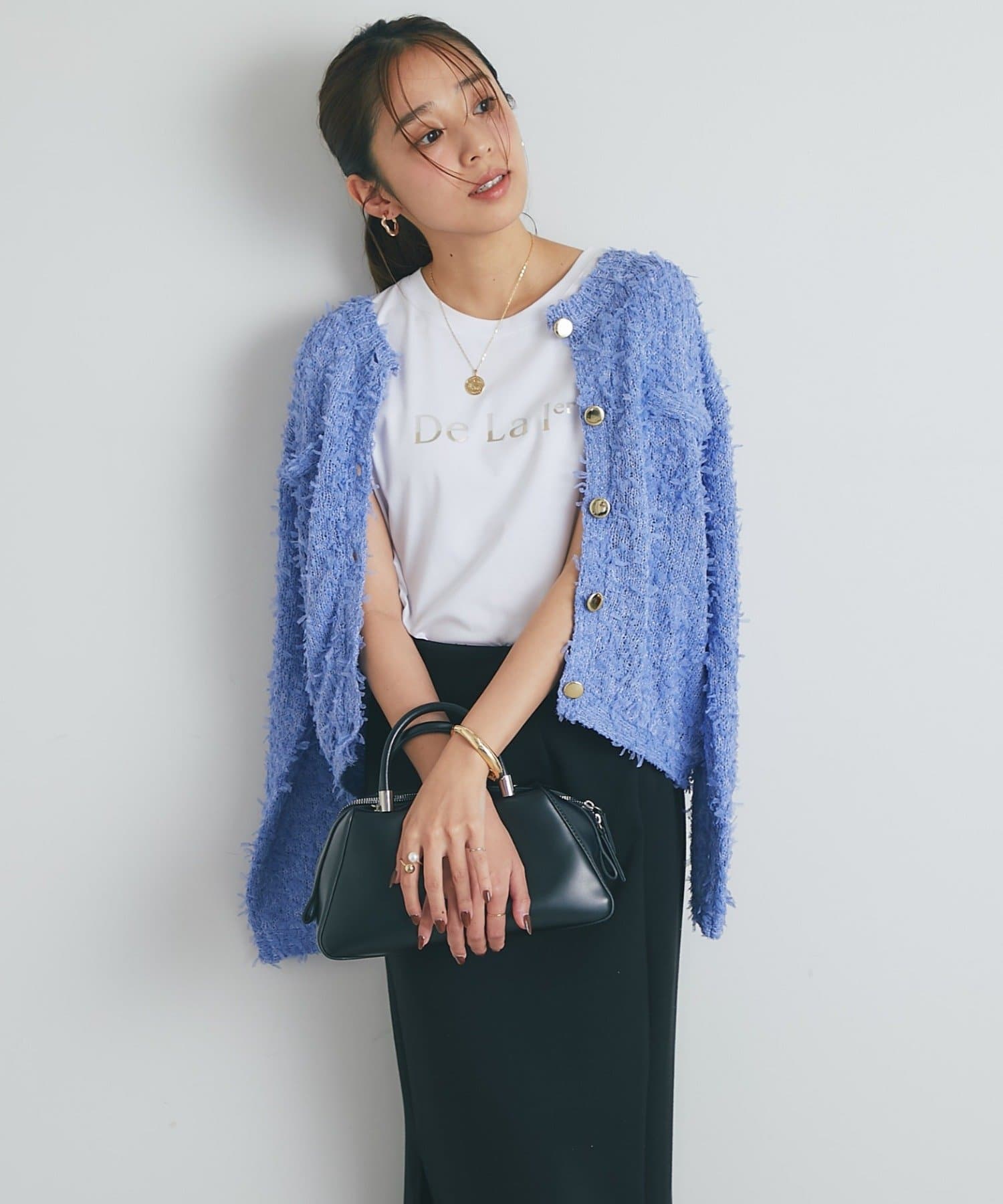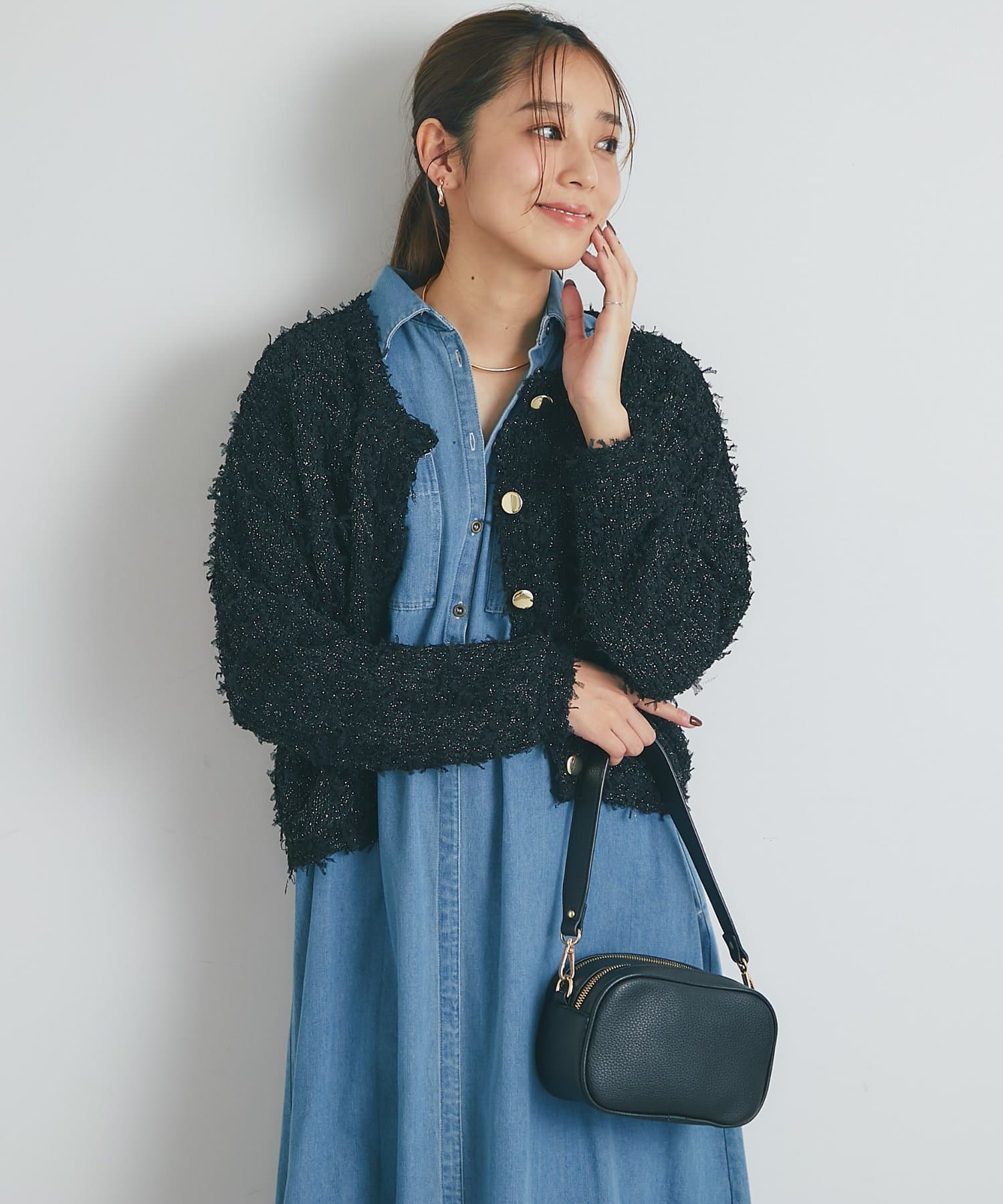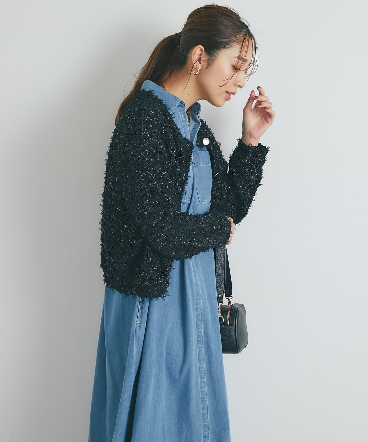 《抜け感のあるコーデに◎》ラメチュールテープヤーン金釦カーデ