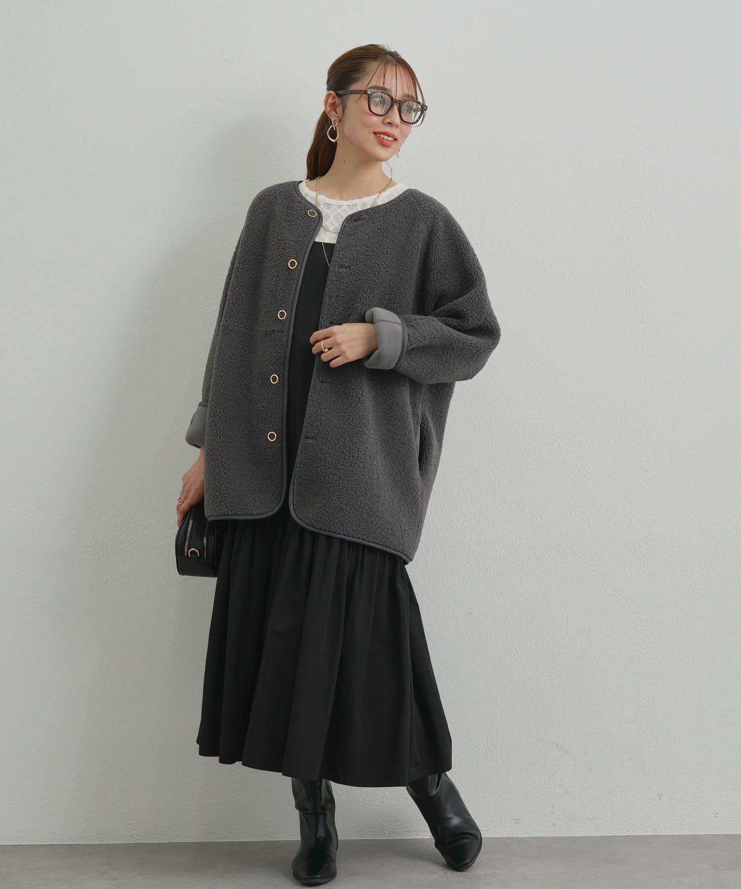 ・襟元と袖口のリブがカジュアルなアクセントをプラスし、異素材の組み合わせがこなれ感を演出します♪