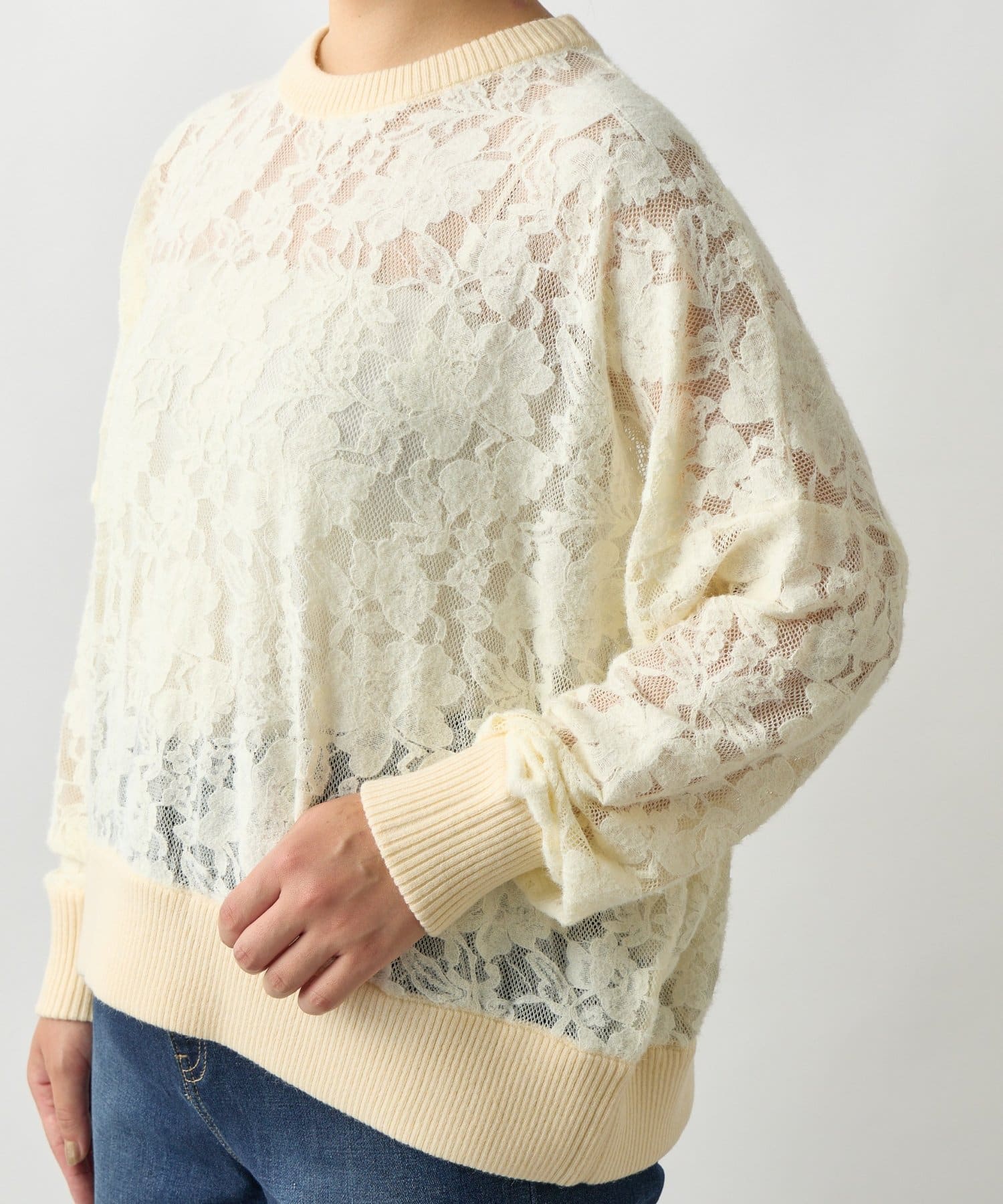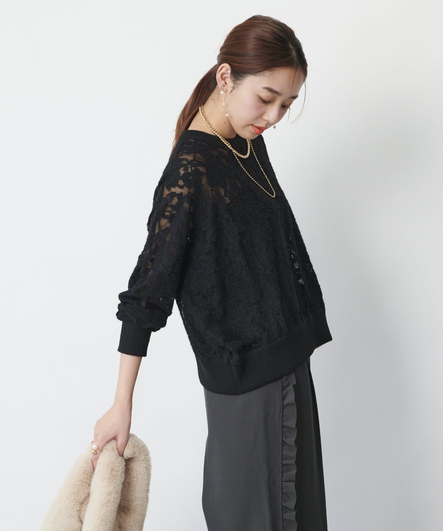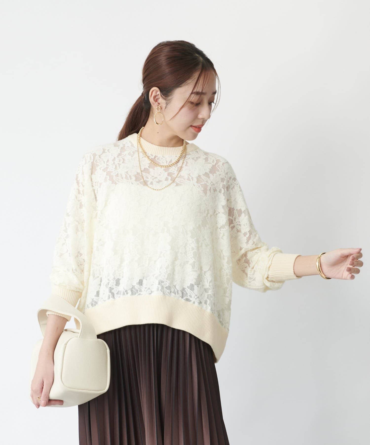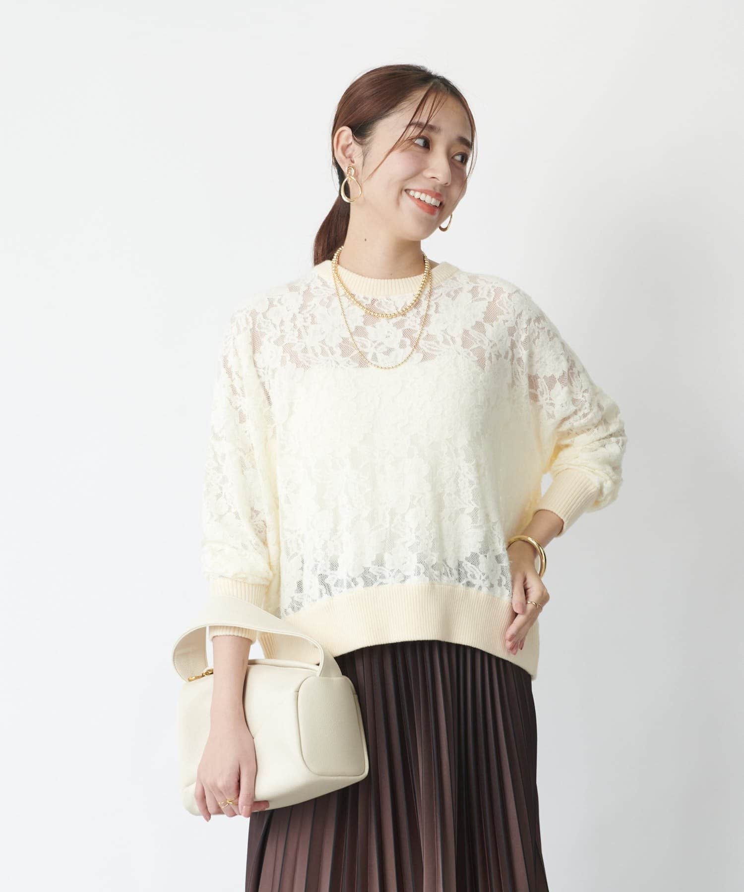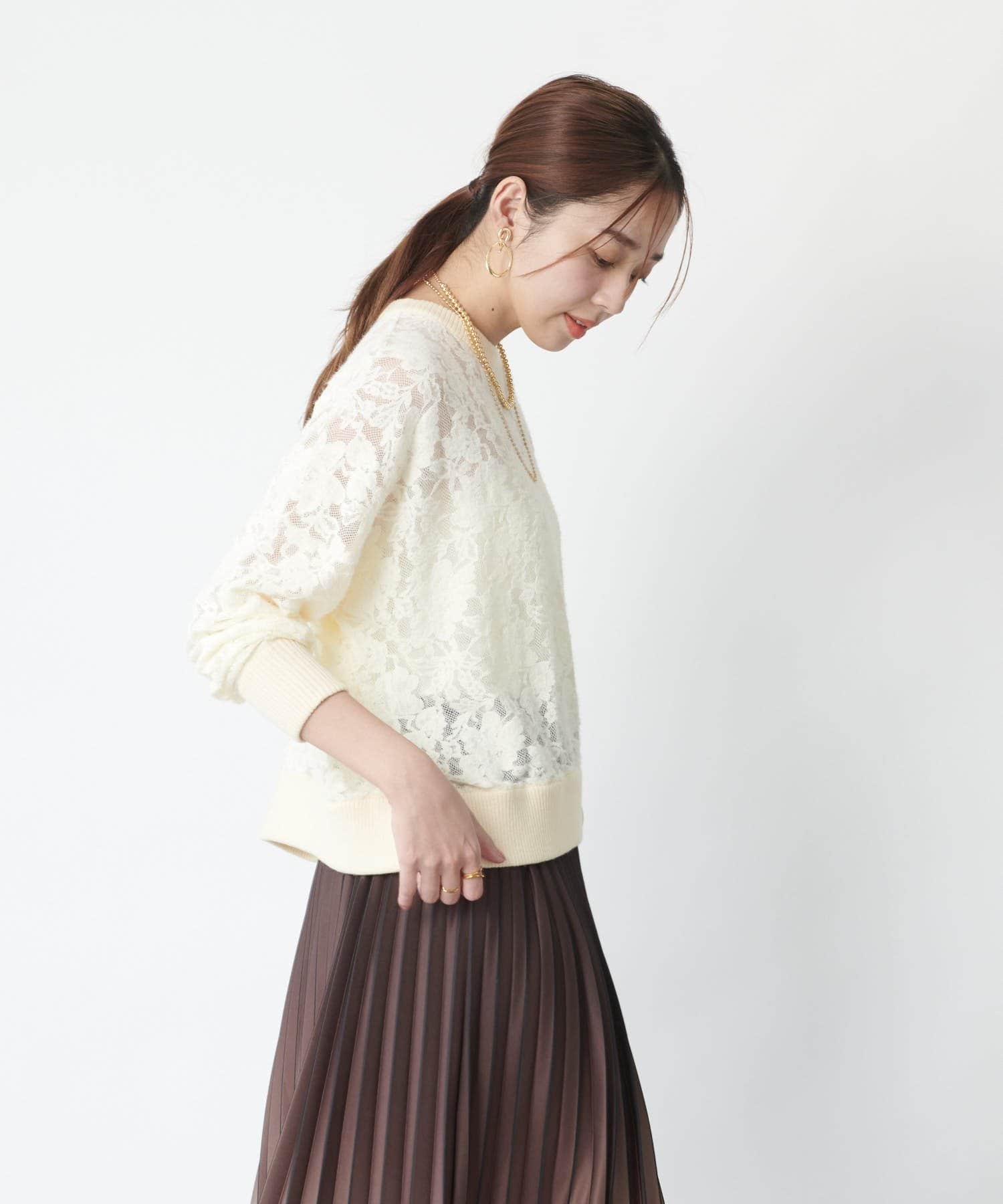 ・透け感のある繊細なレースを贅沢に使用した、大人フェミニンなムード漂うプルオーバー。