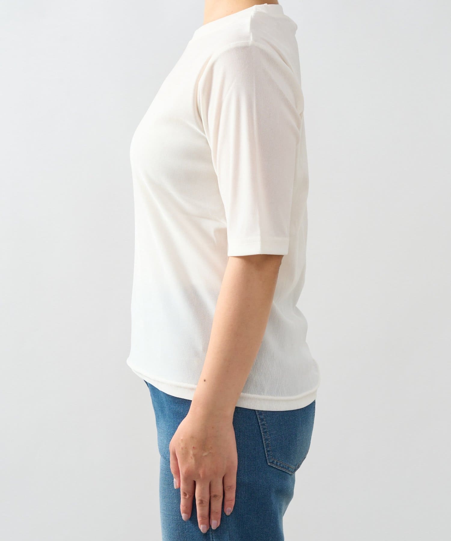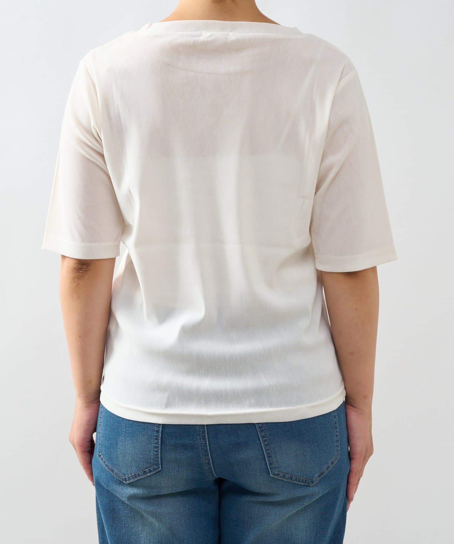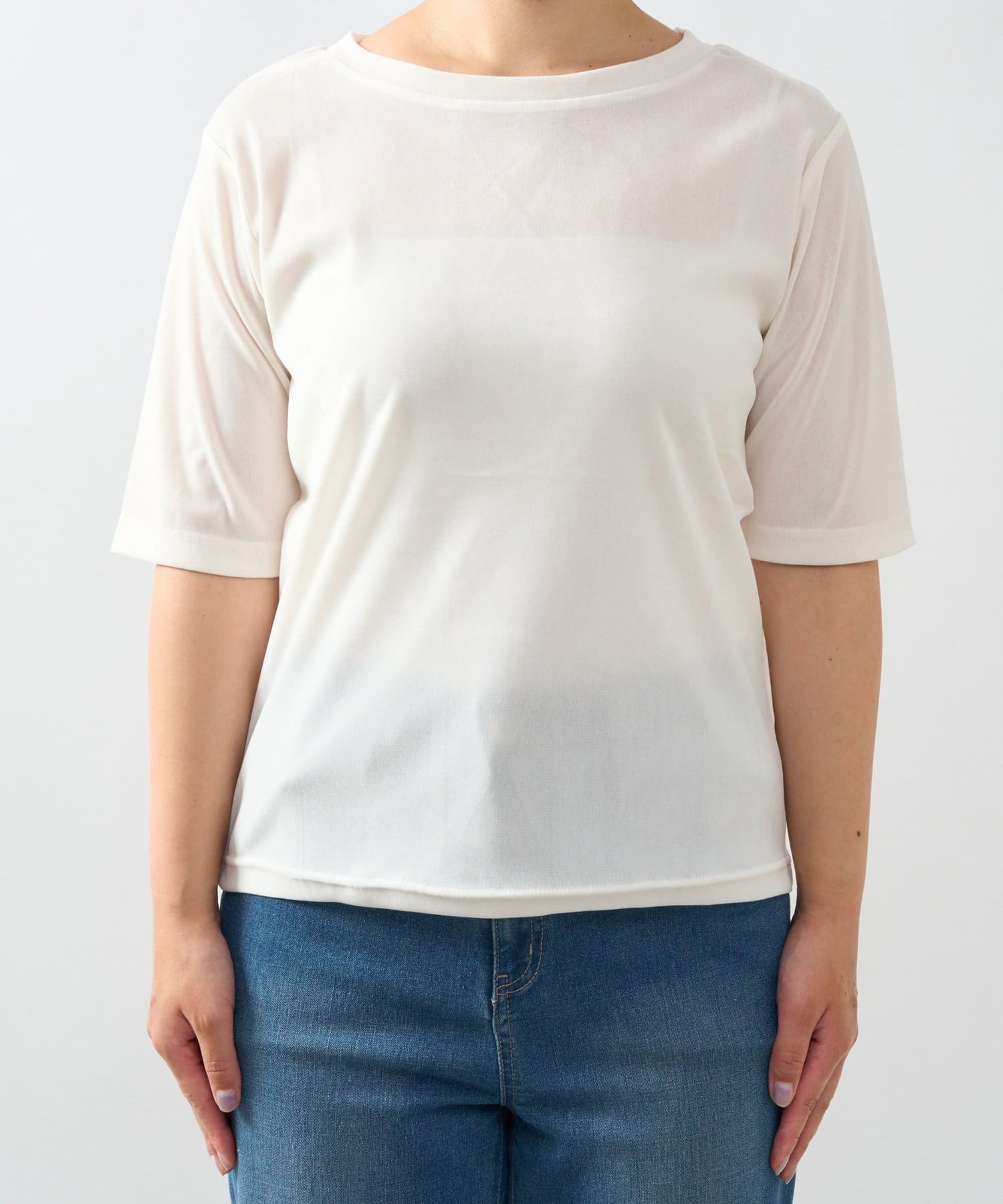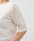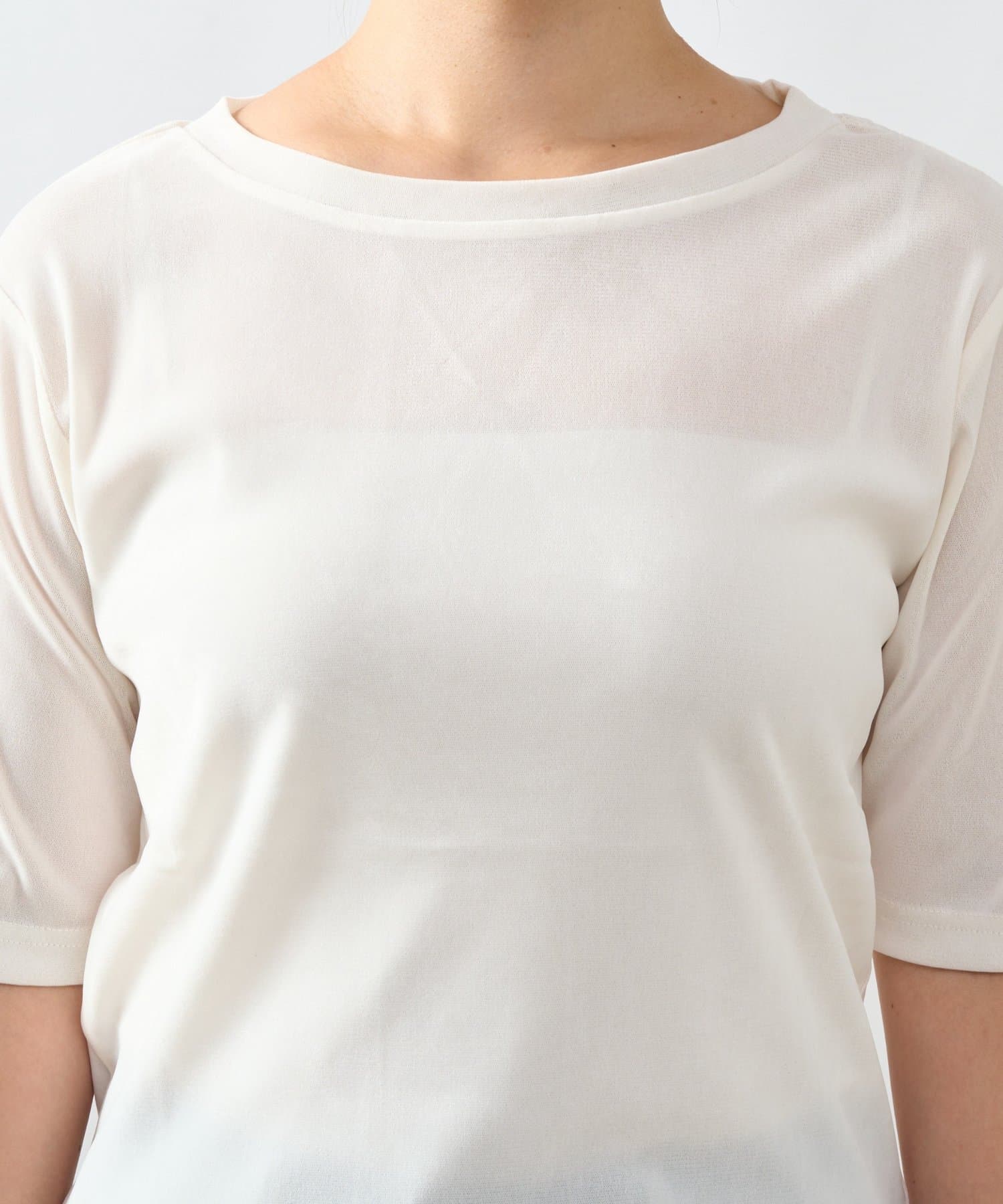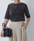 ・シンプルながらもさりげない透け感でこなれた雰囲気を演出してくれる五分袖カットソー。