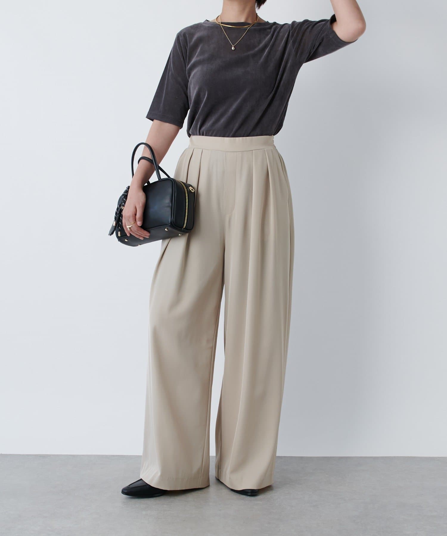 《美シルエット・楽な履き心地》2タックワイドパンツ