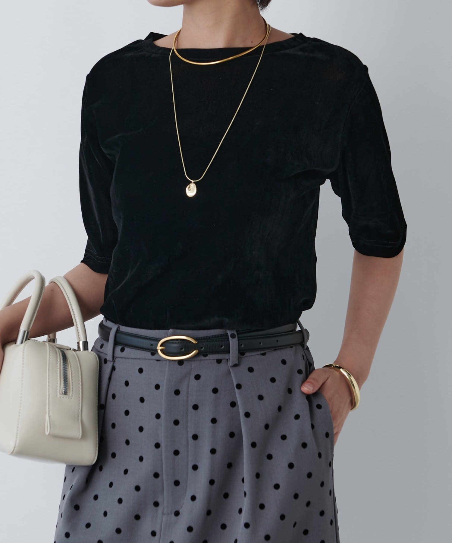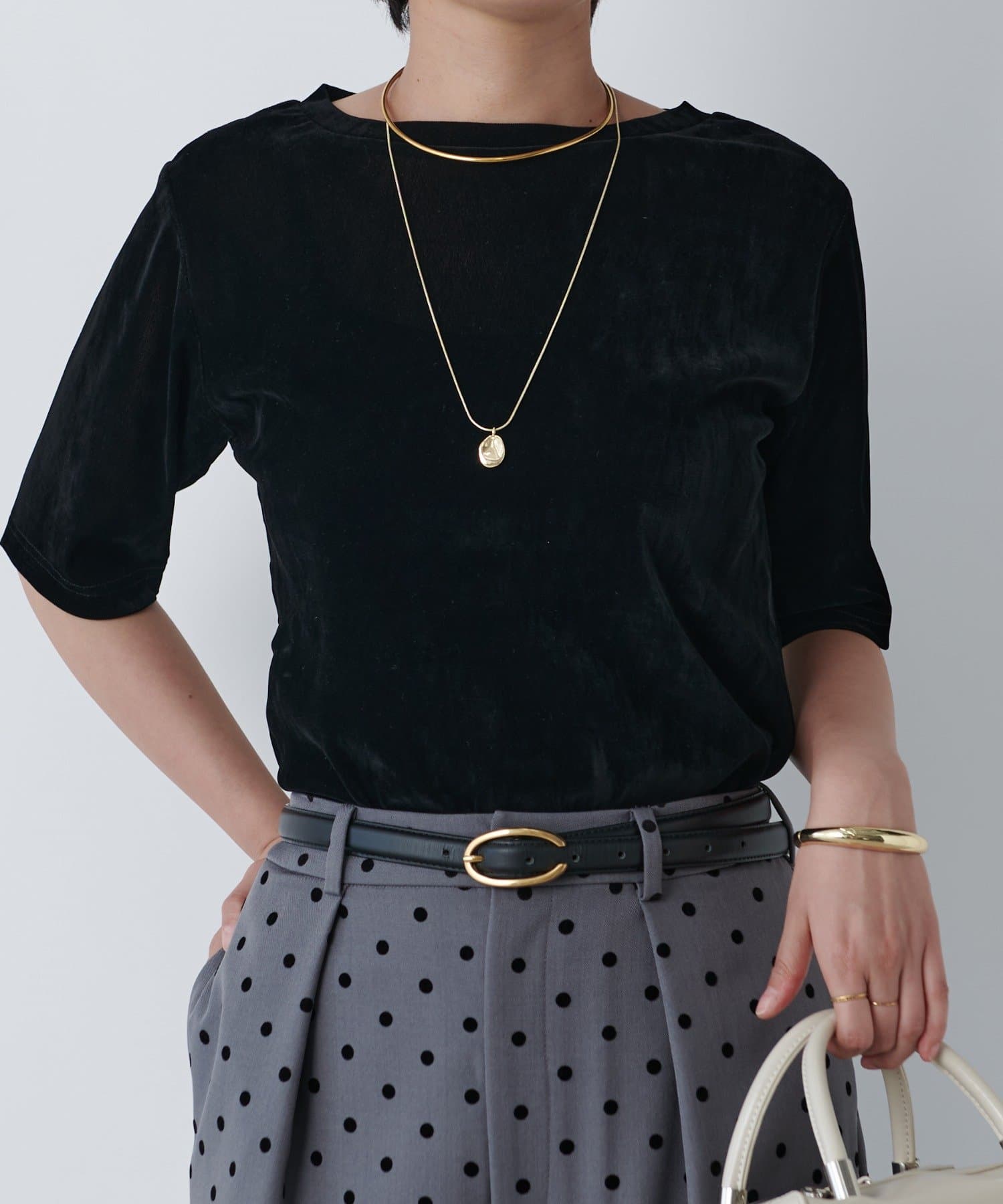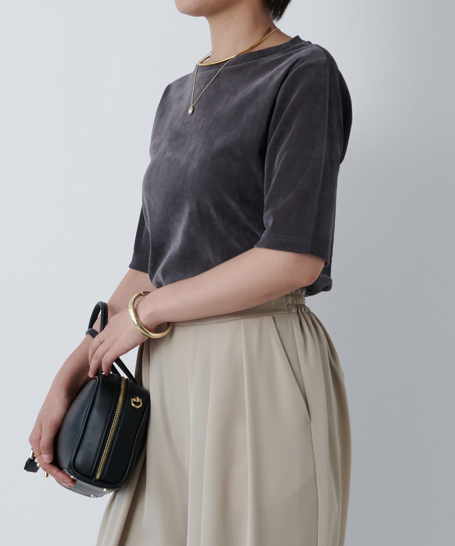 ・さらっとした肌触りでシア-ーベロア素材がコーデに映えます。