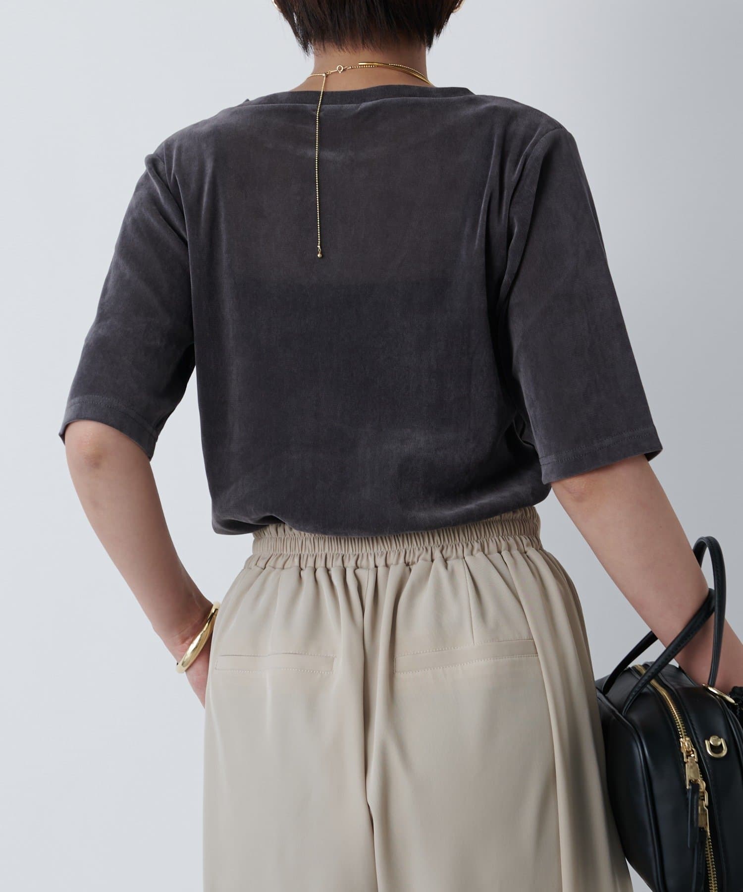 TOP > un dix cors > レディース > トップス > Tシャツ/カットソー > 《さりげない透け感・着回し万能》シアーベロア5分袖プルオーバー