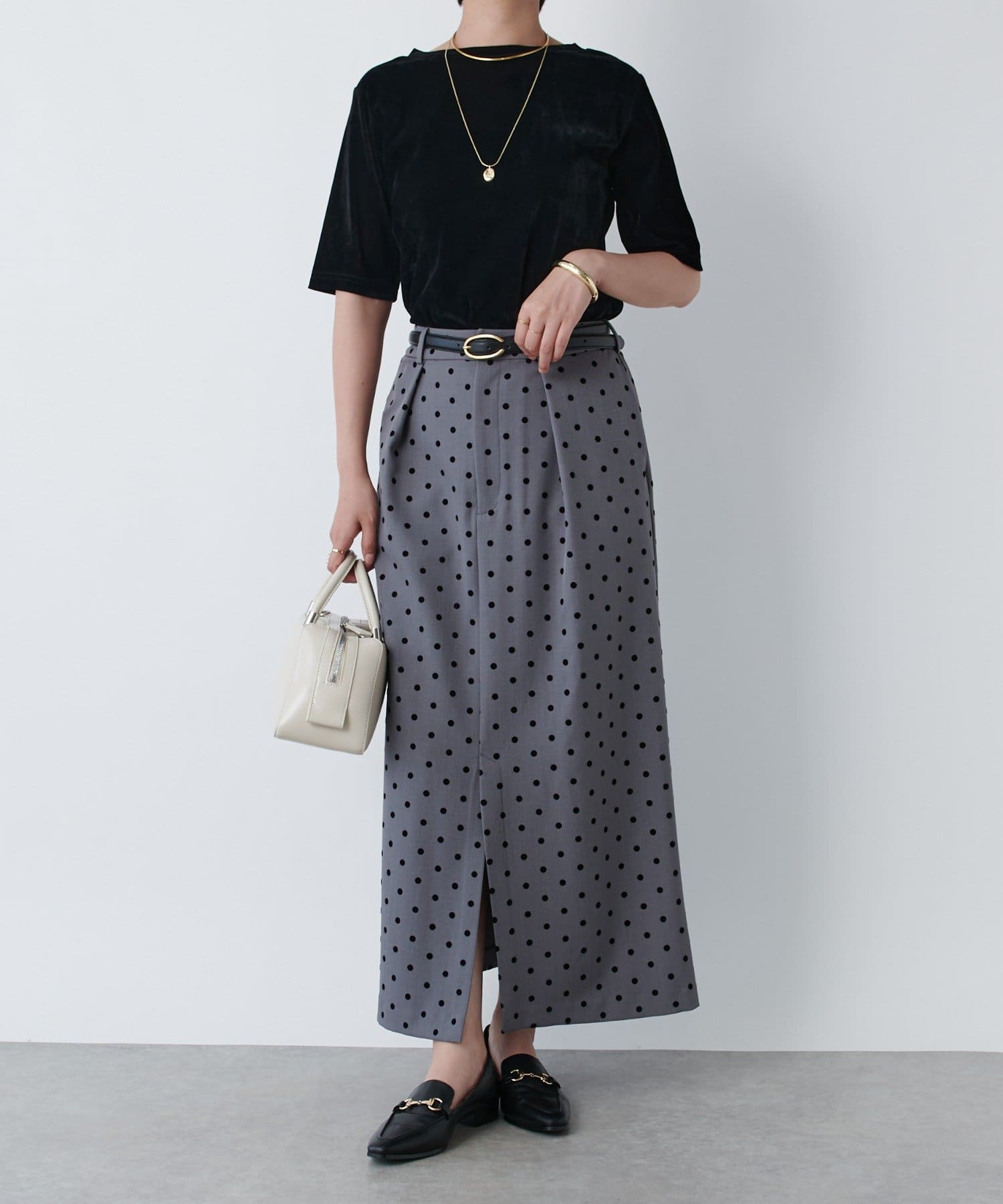 《大人可愛い・着映え力抜群◎》フロッキードットタックスカート