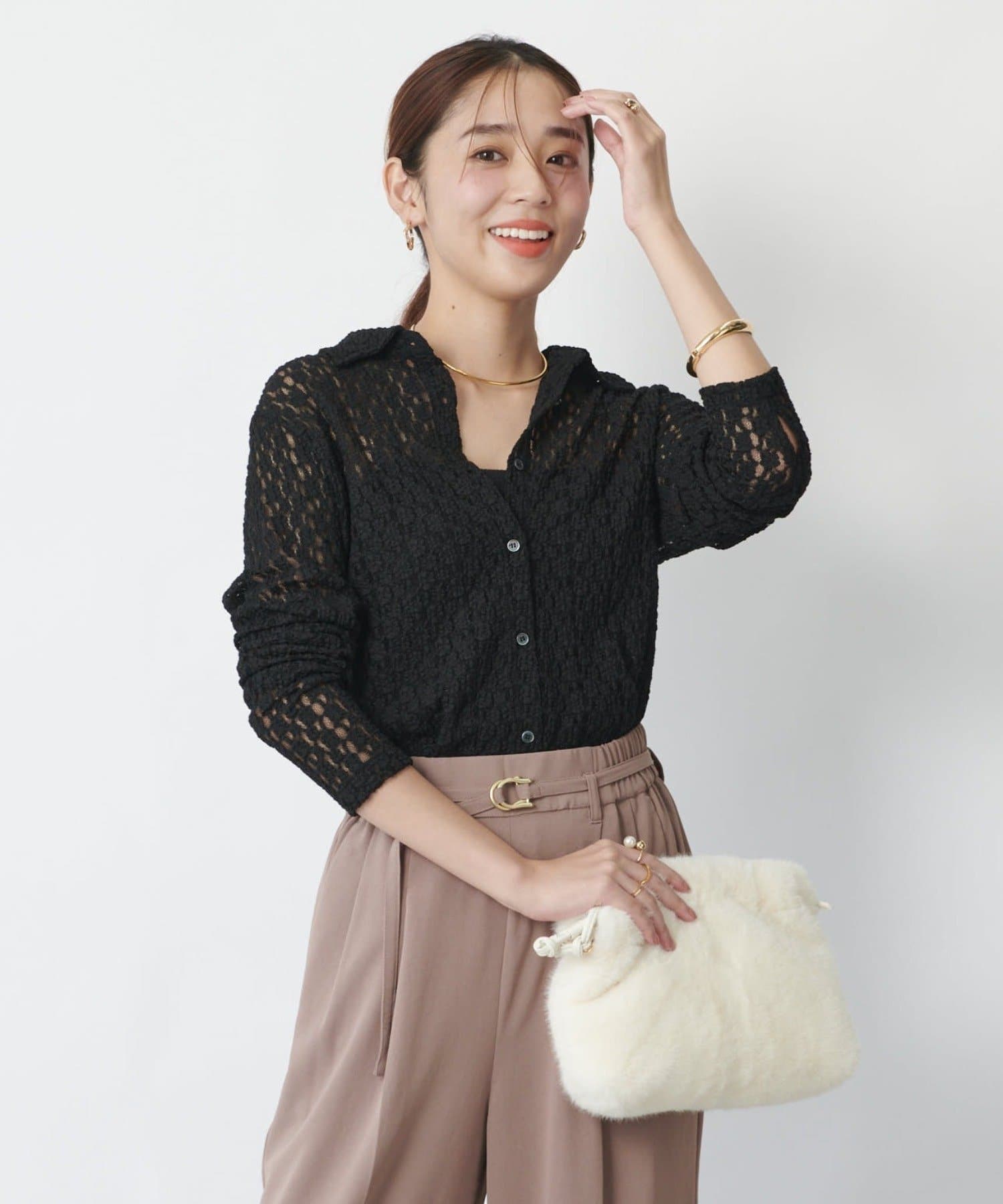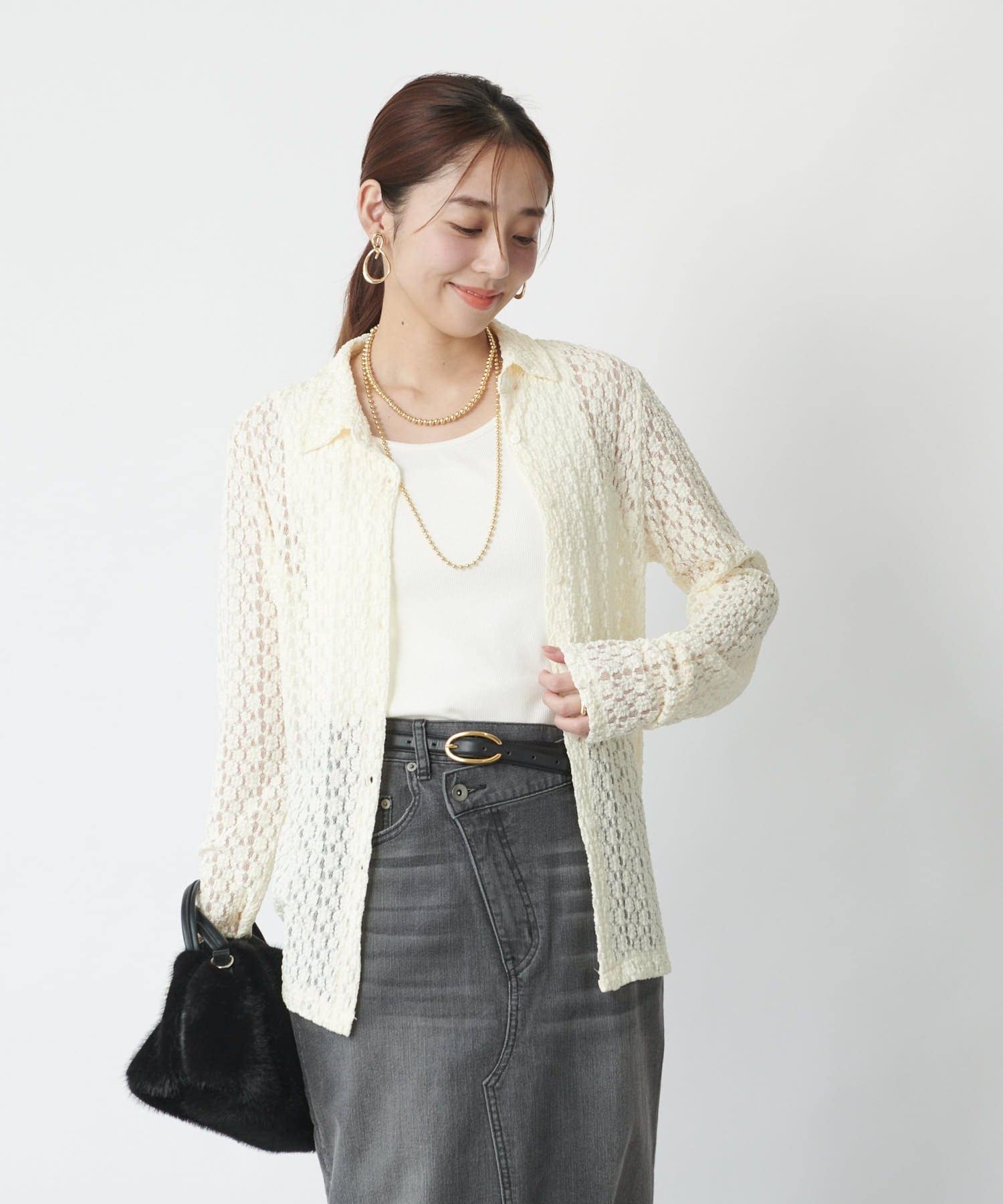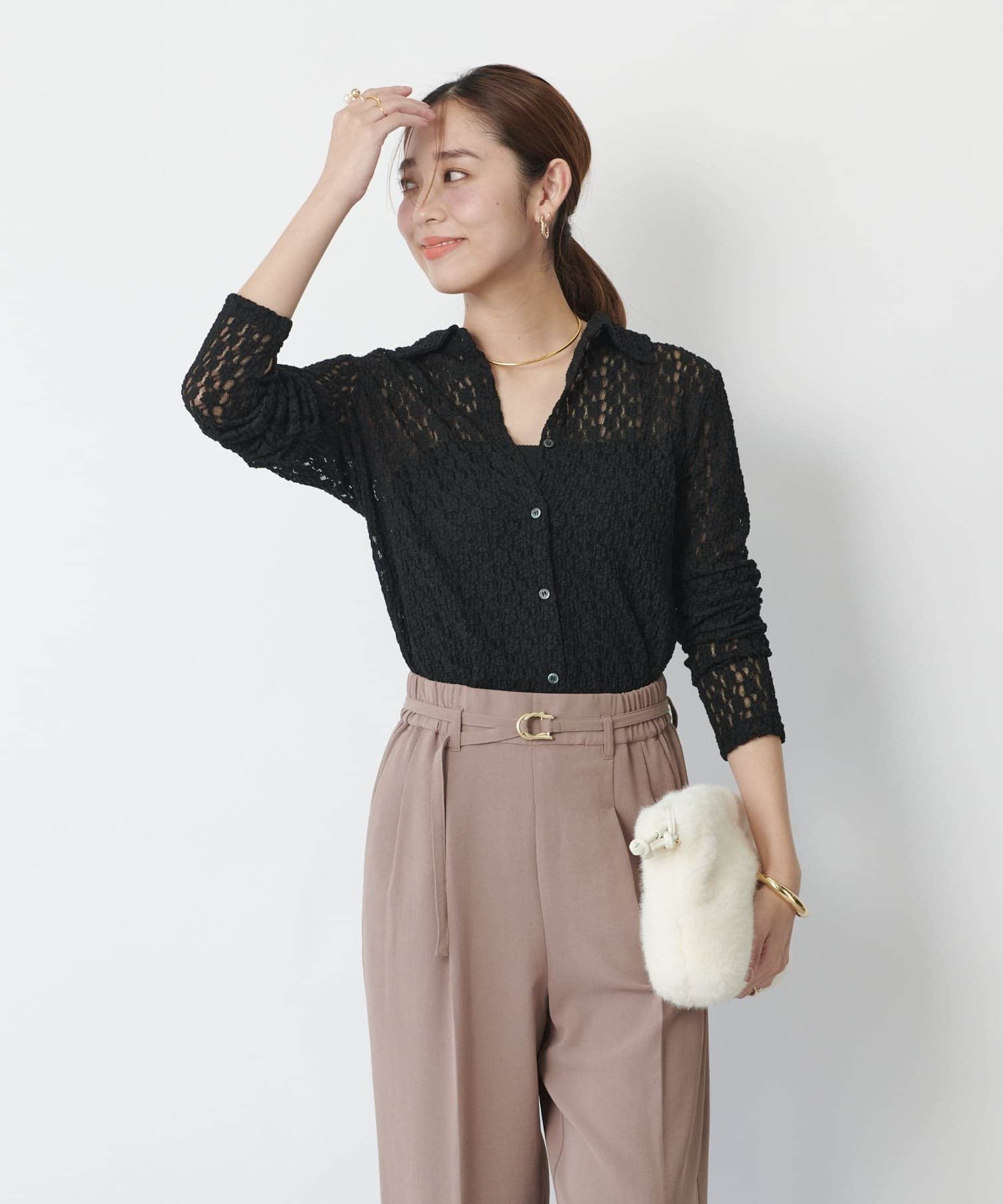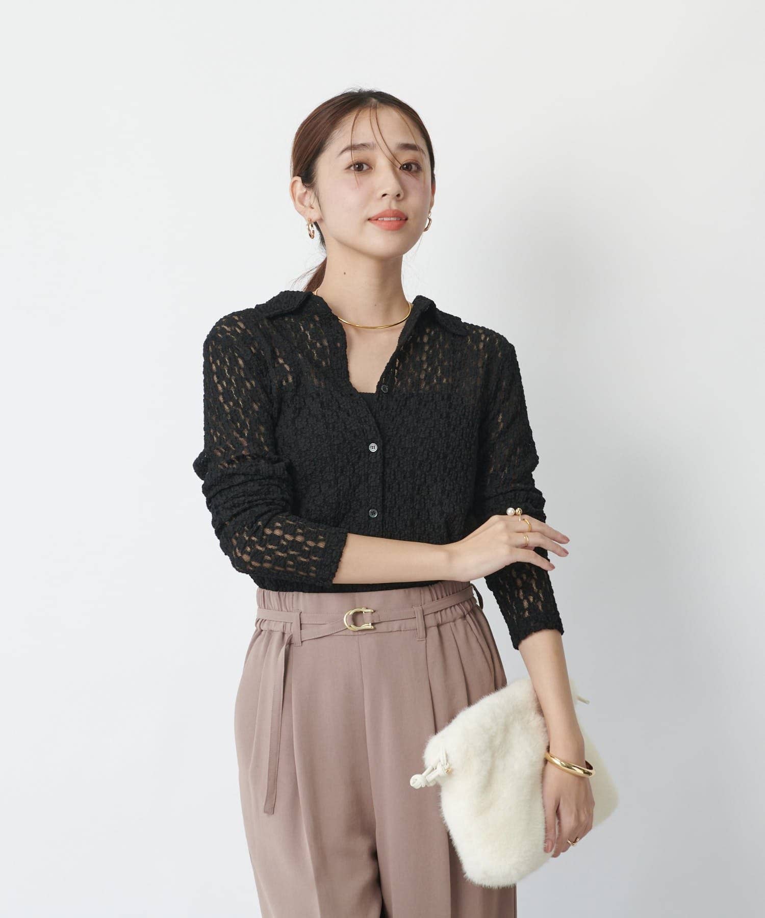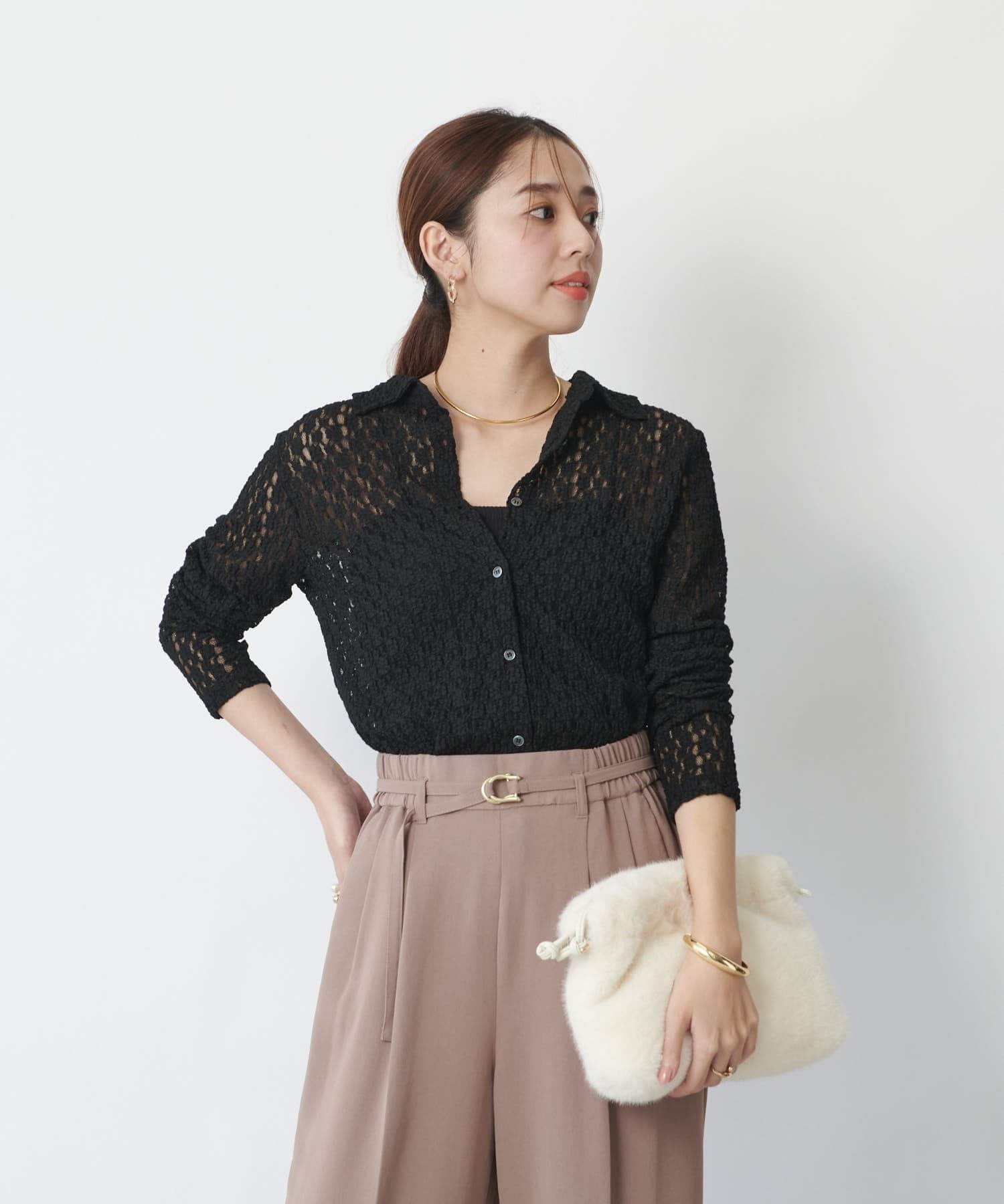 ・繊細な透かし編みが、いつものコーディネートに洗練されたニュアンスをプラスしてくれるレースシャツ。