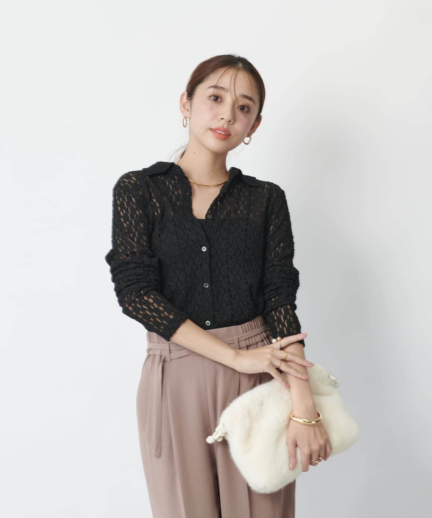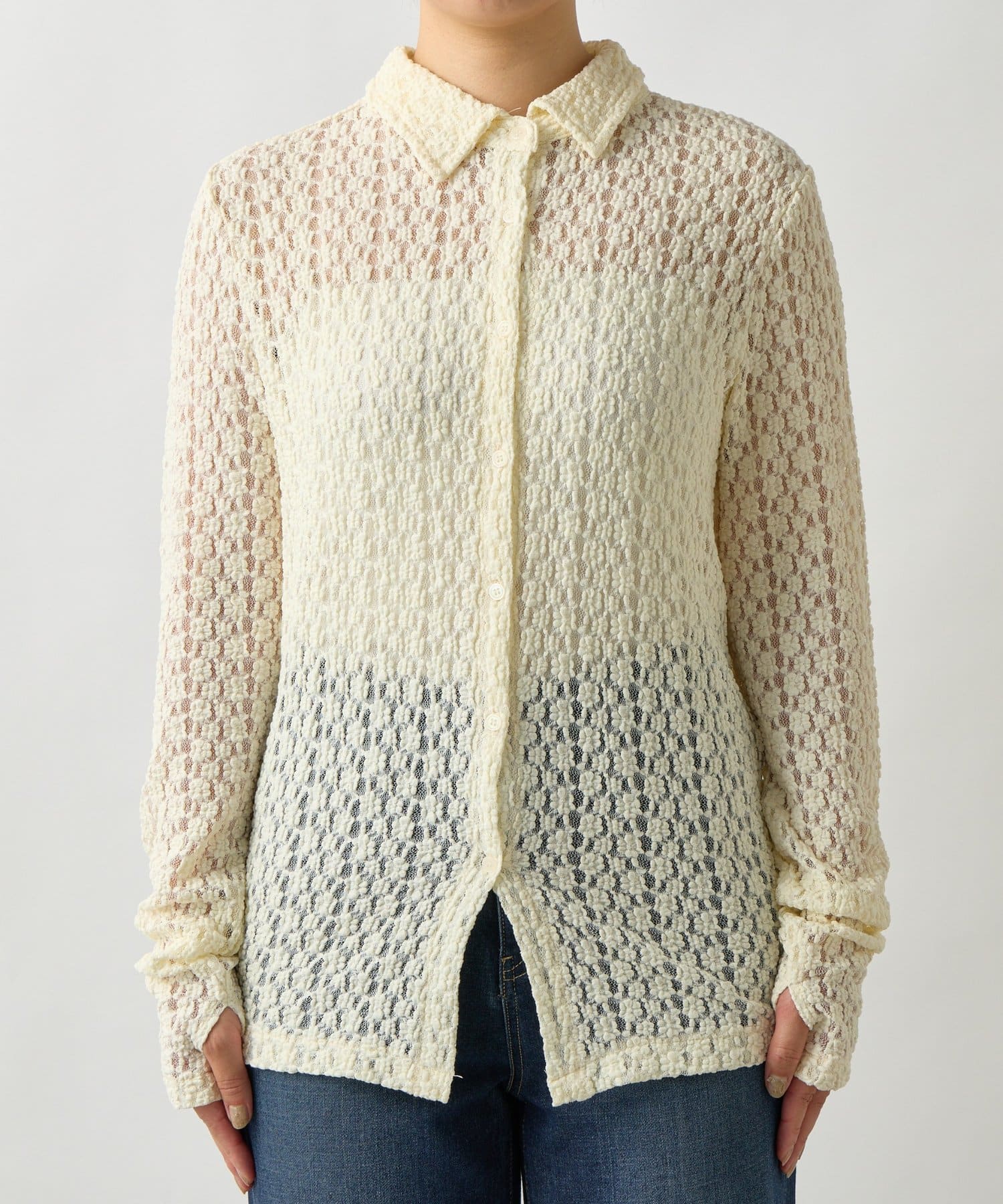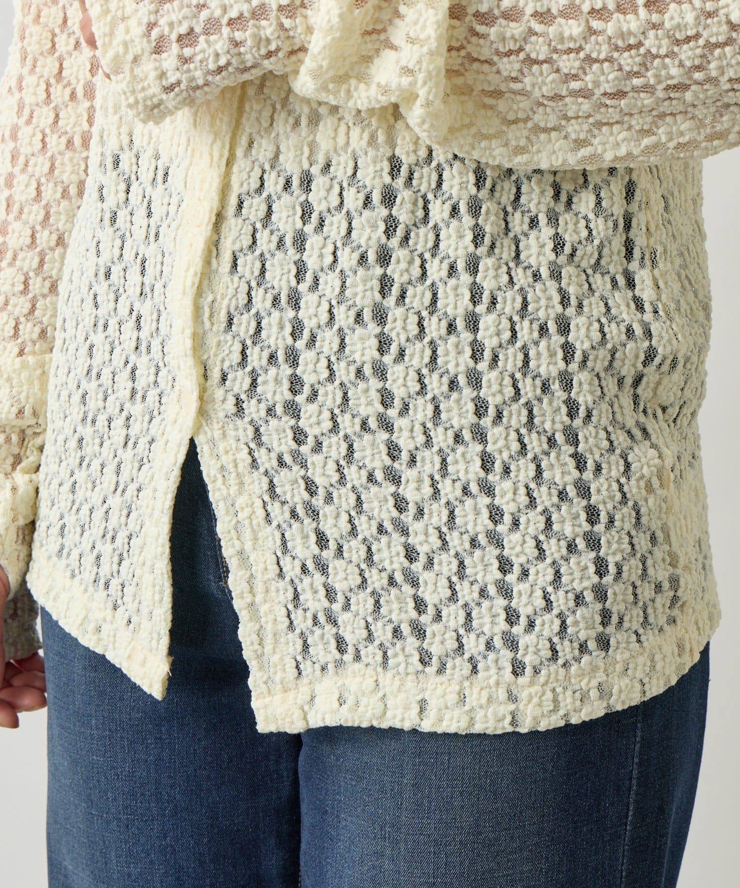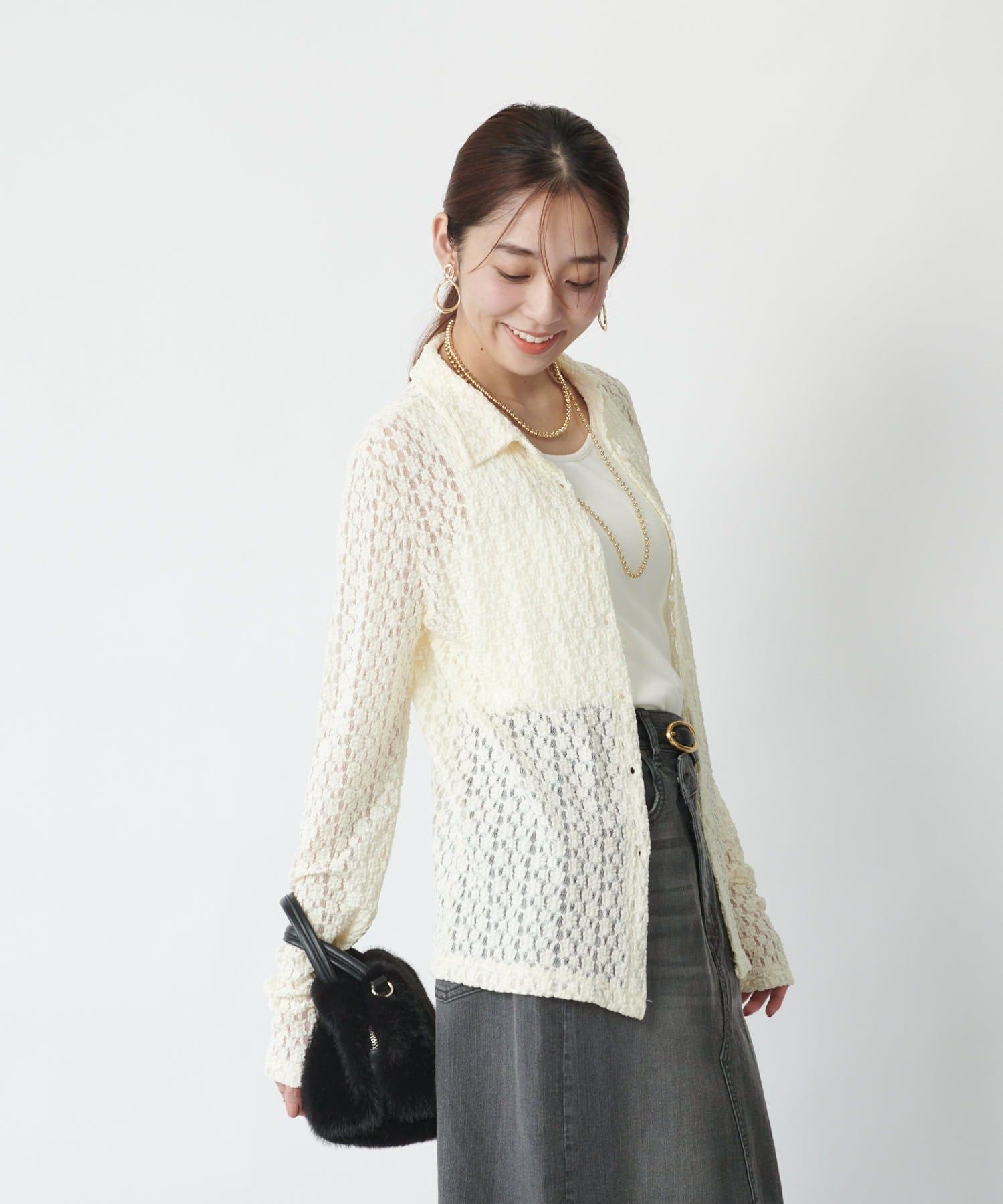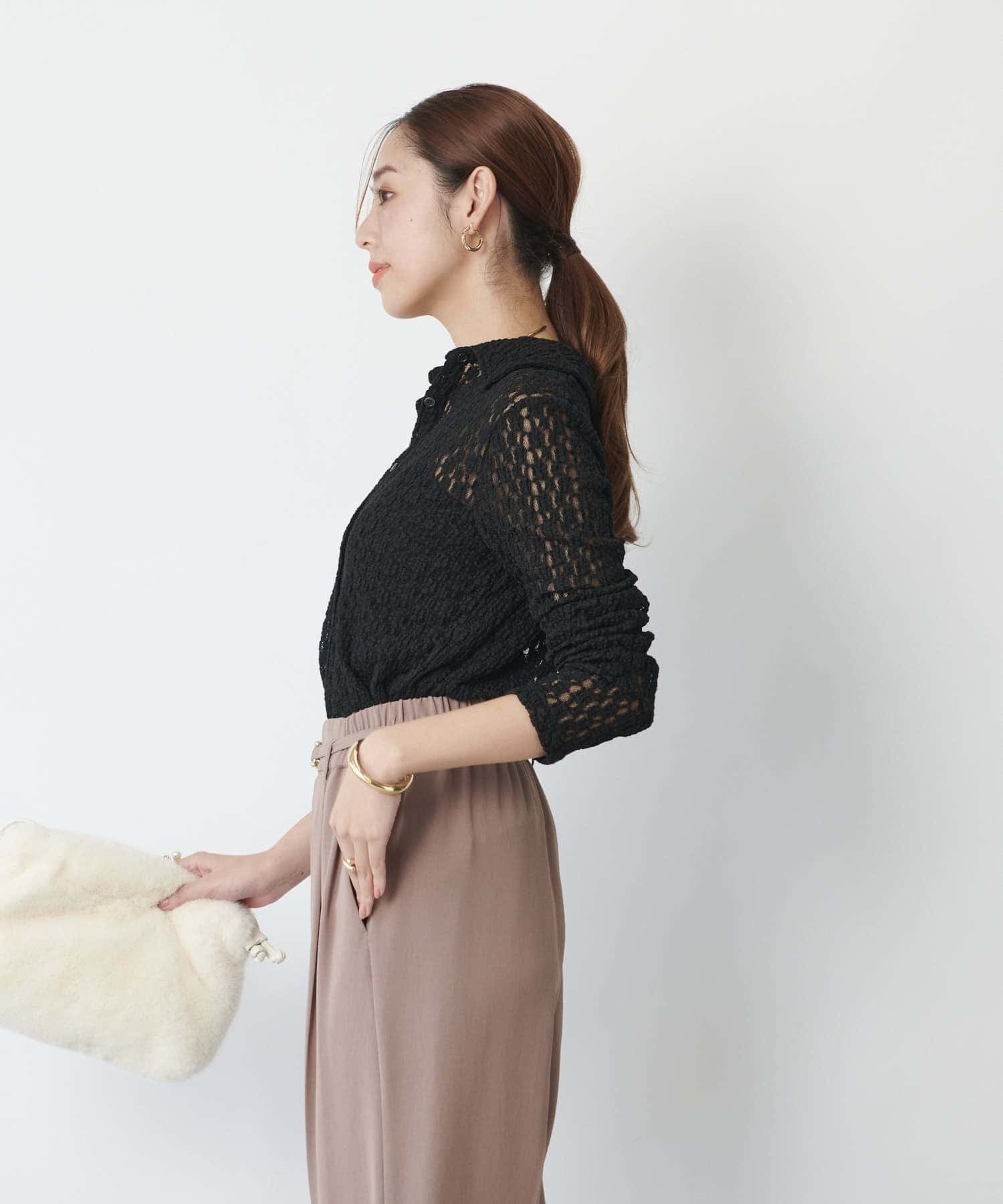 ・繊細な透かし編みが、いつものコーディネートに洗練されたニュアンスをプラスしてくれるレースシャツ。