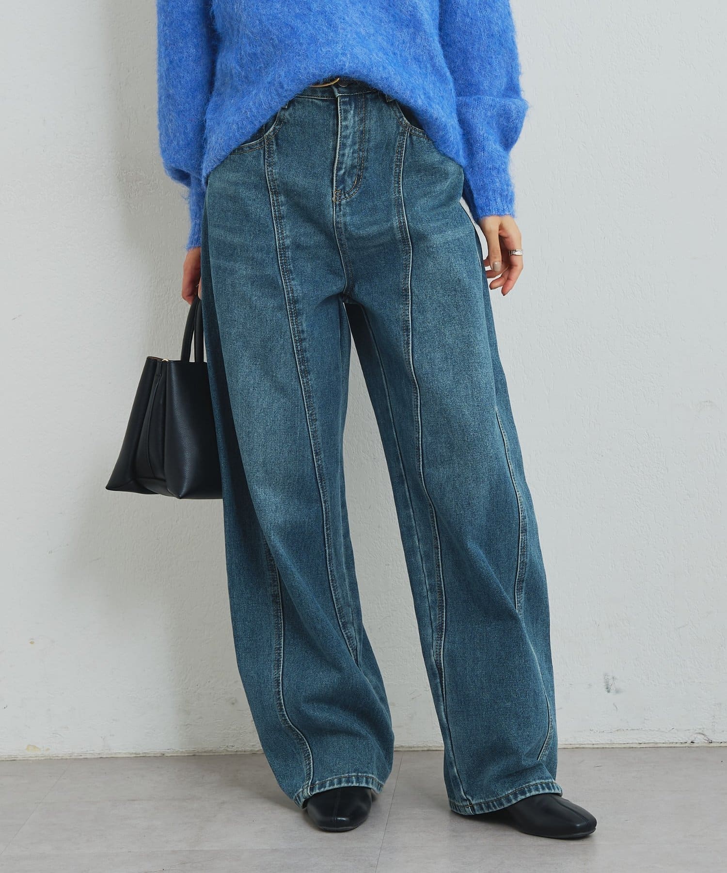 《着るだけでこなれ感》フロント切替カーブデニムパンツ