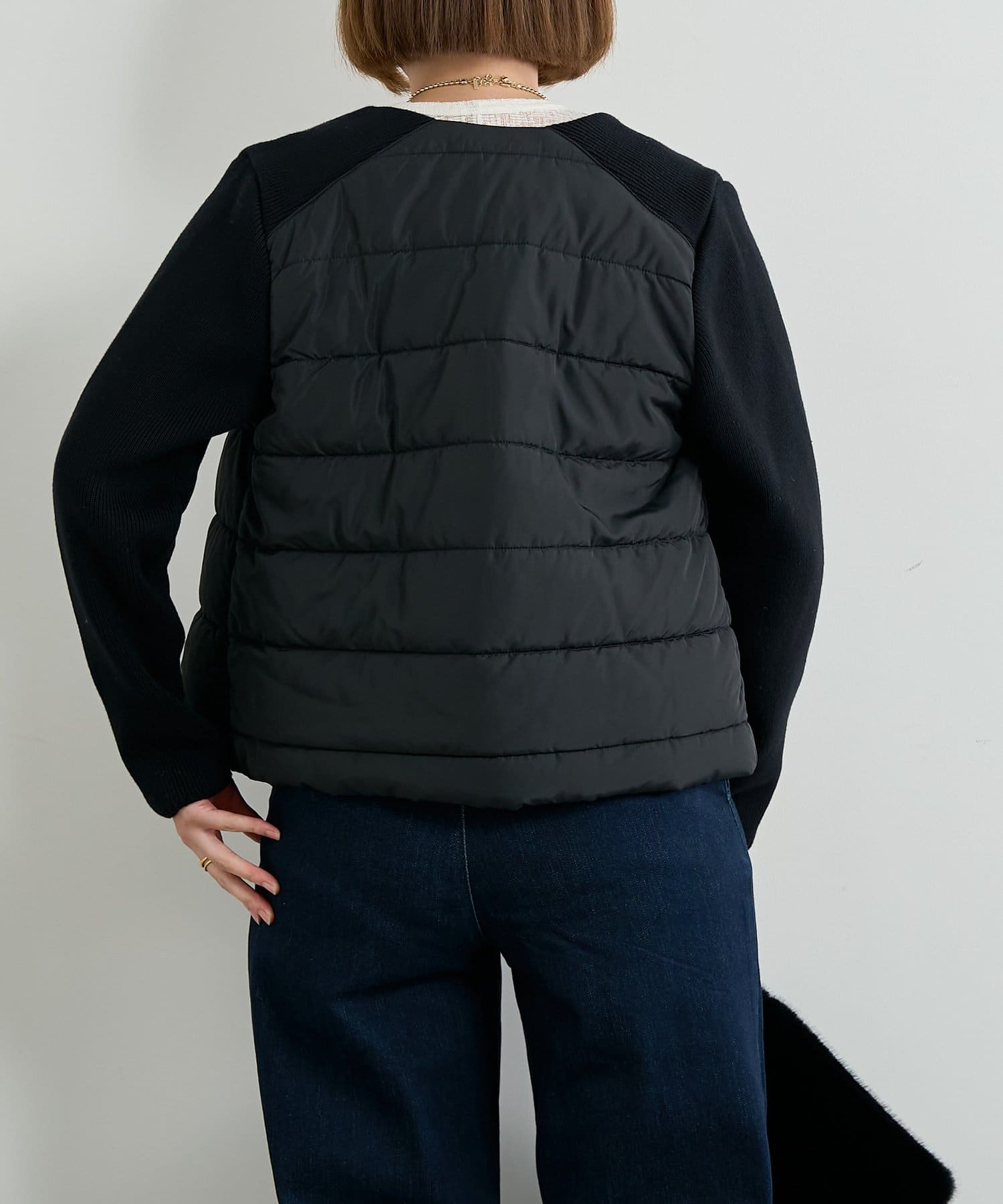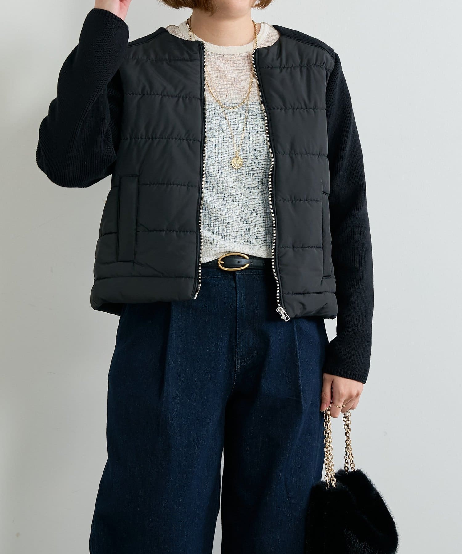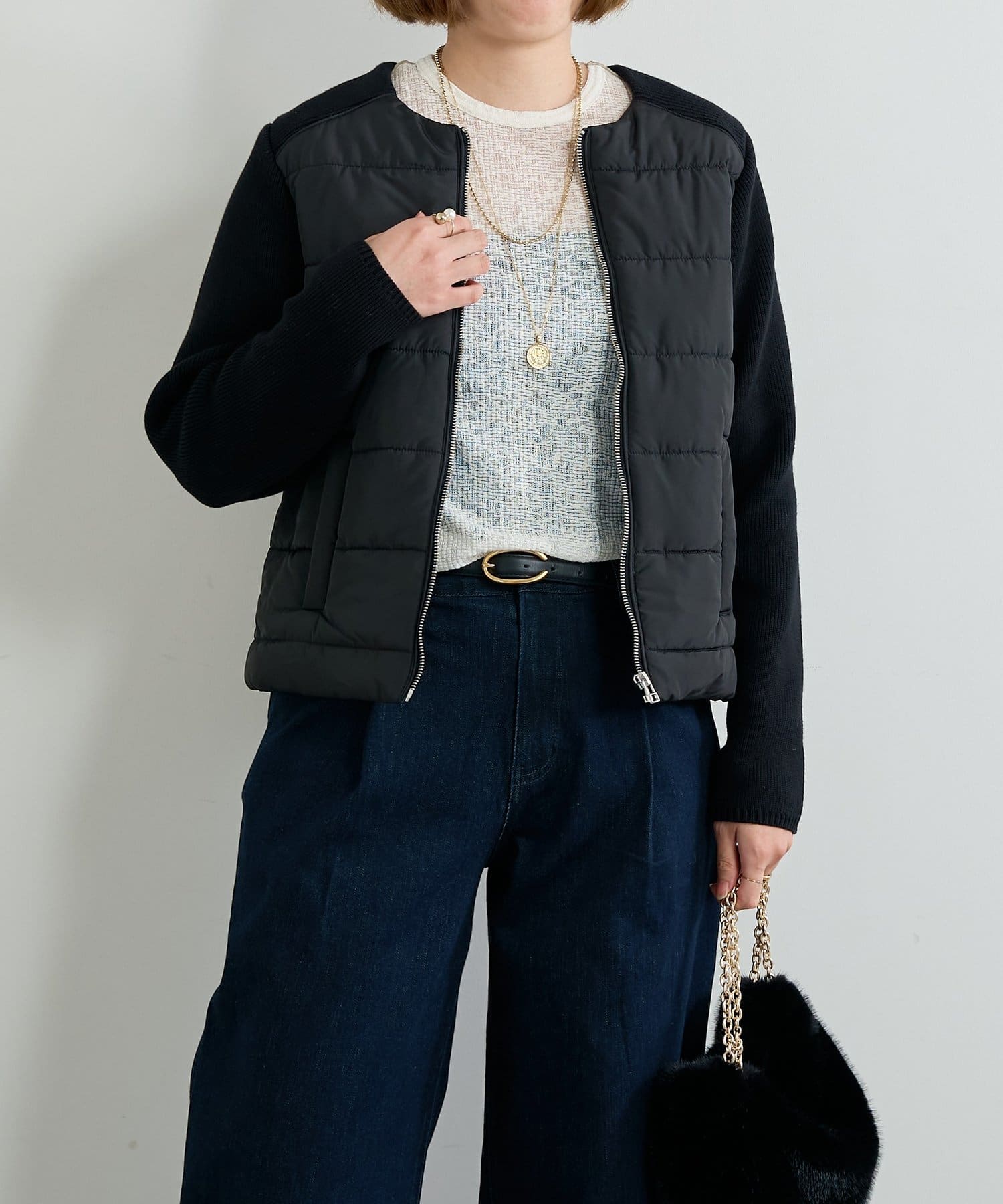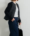 あえて色のトーンが異なるインナーを合わせることで、個性が光るスタイリングに。