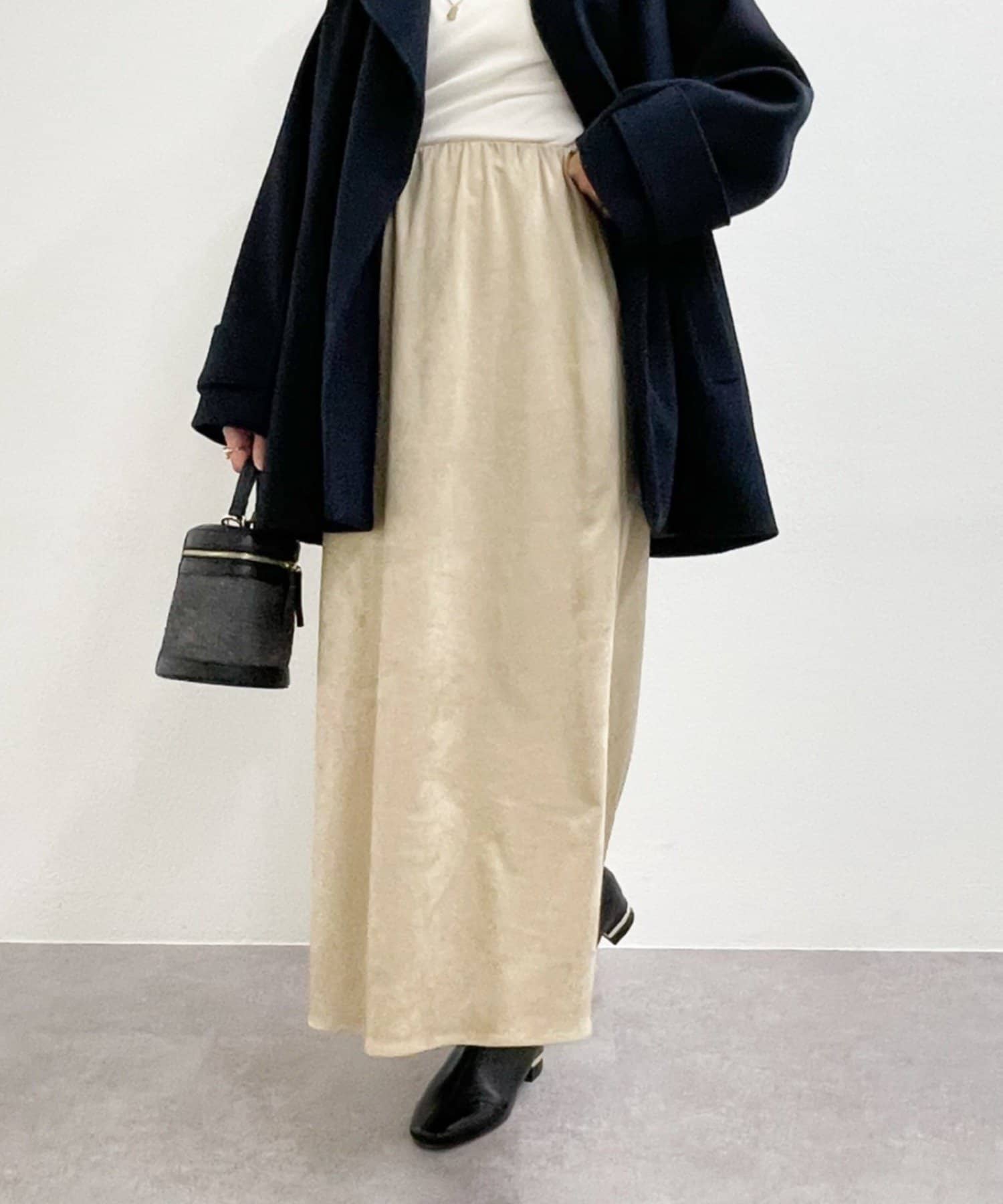 ・滑らかな質感の上品なスエード素材で仕立てられた、こなれ感をプラスしてくれるスカート。