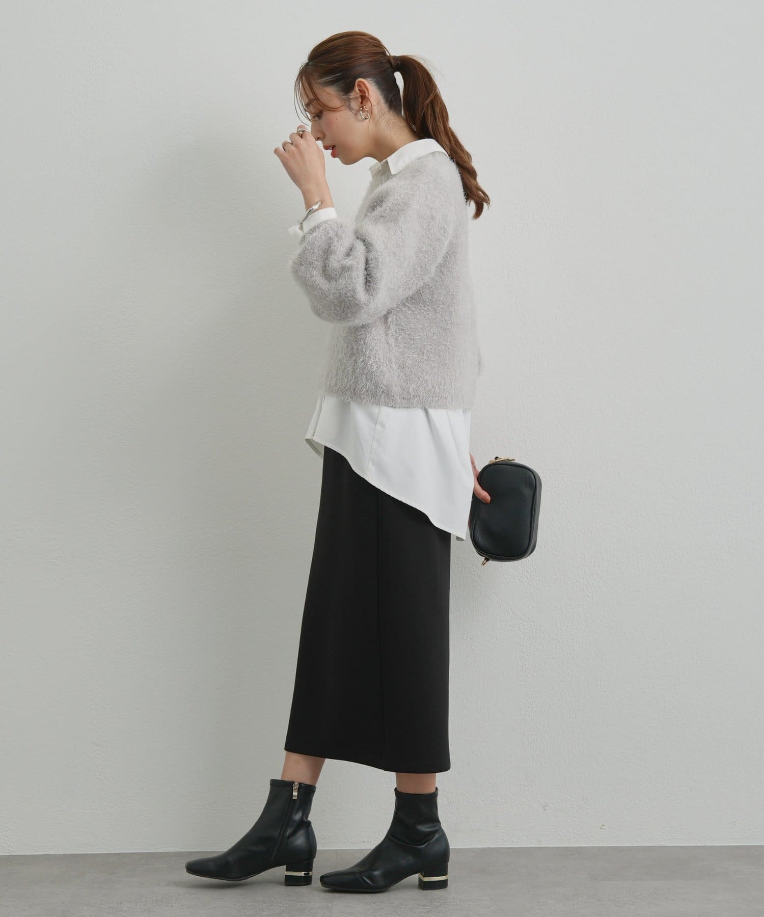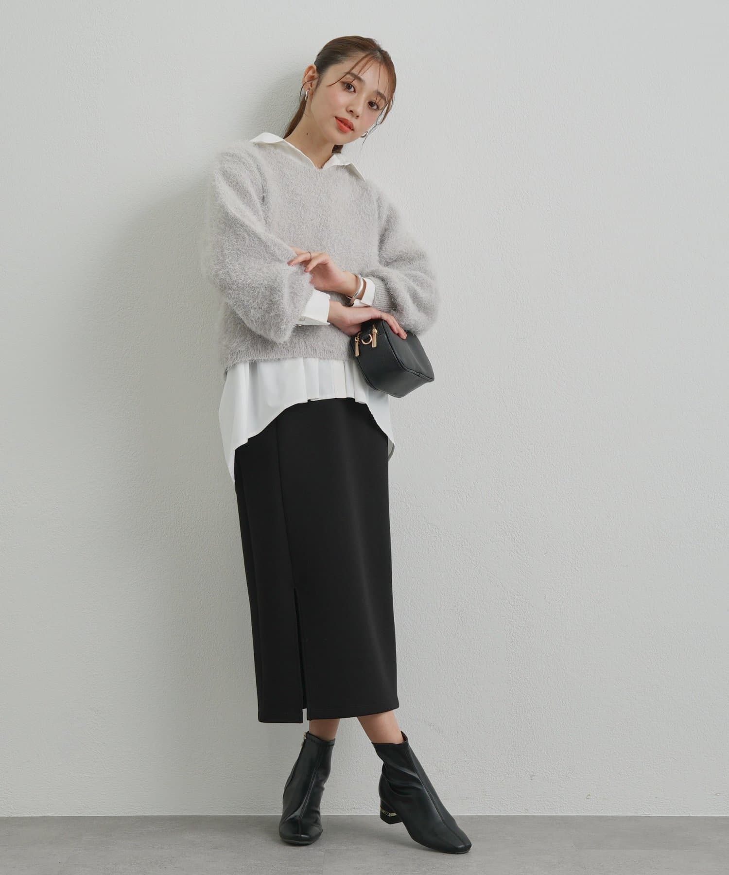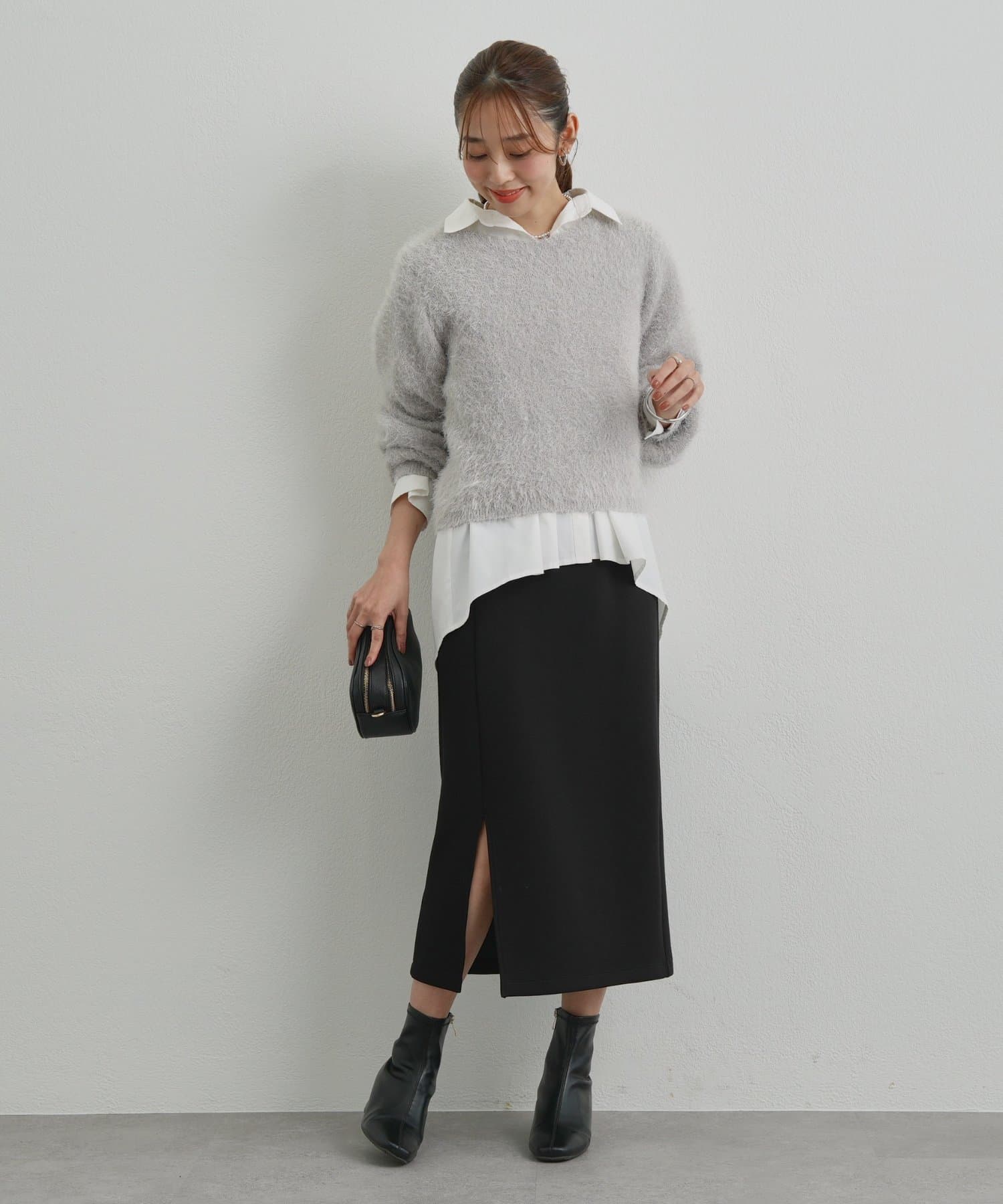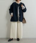 タックパンツやIラインスカートなどを合わせると、きちんと感のあるオフィススタイリングに。