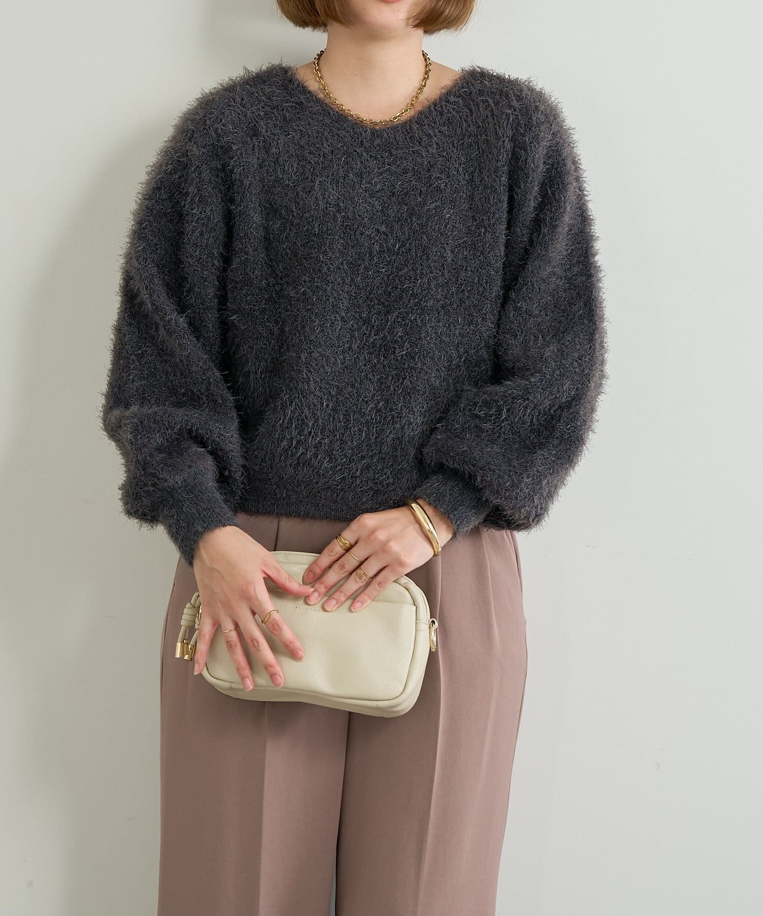 ・見た目にもあたたかく、思わず触れたくなるようなシャギー素材のニットトップス◎