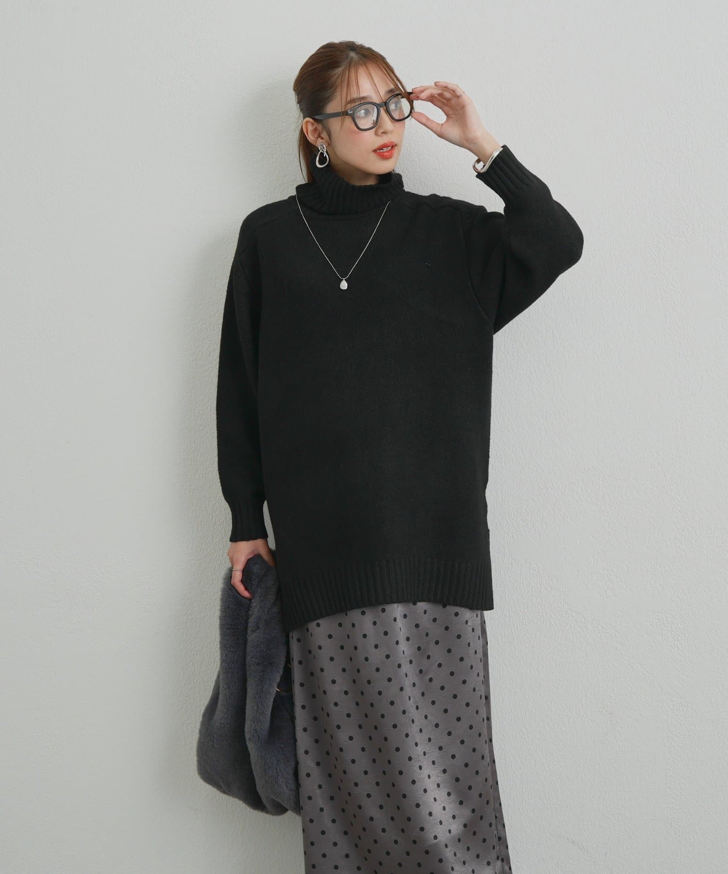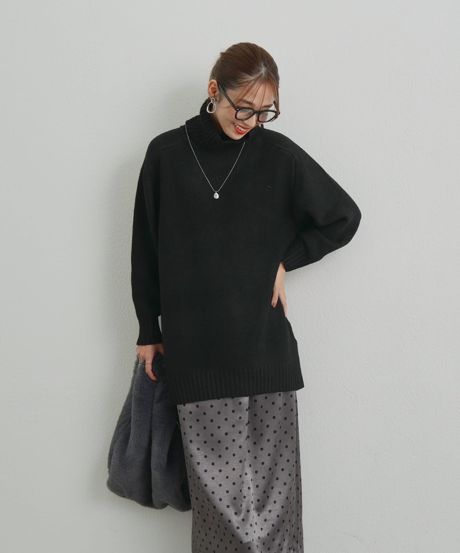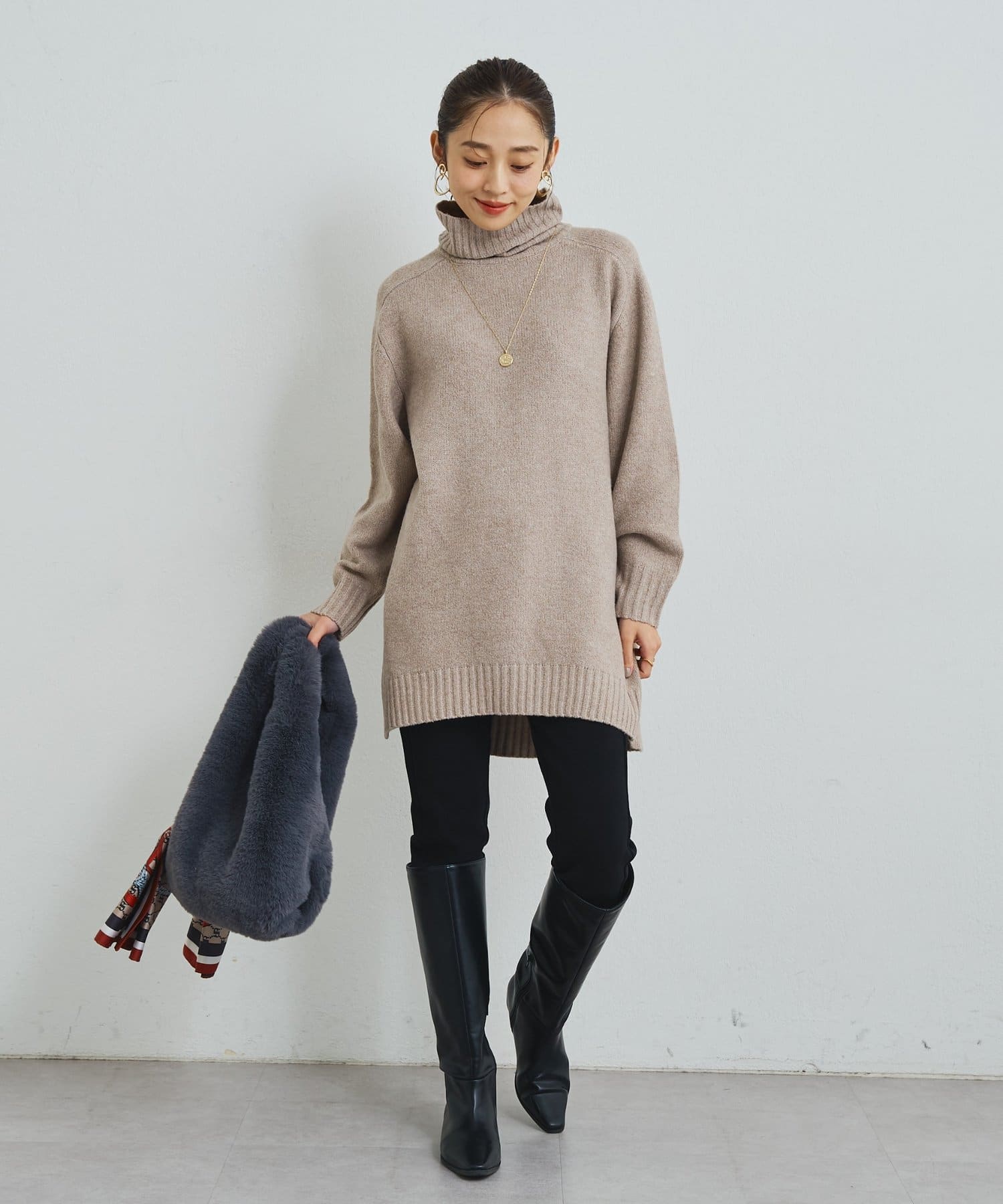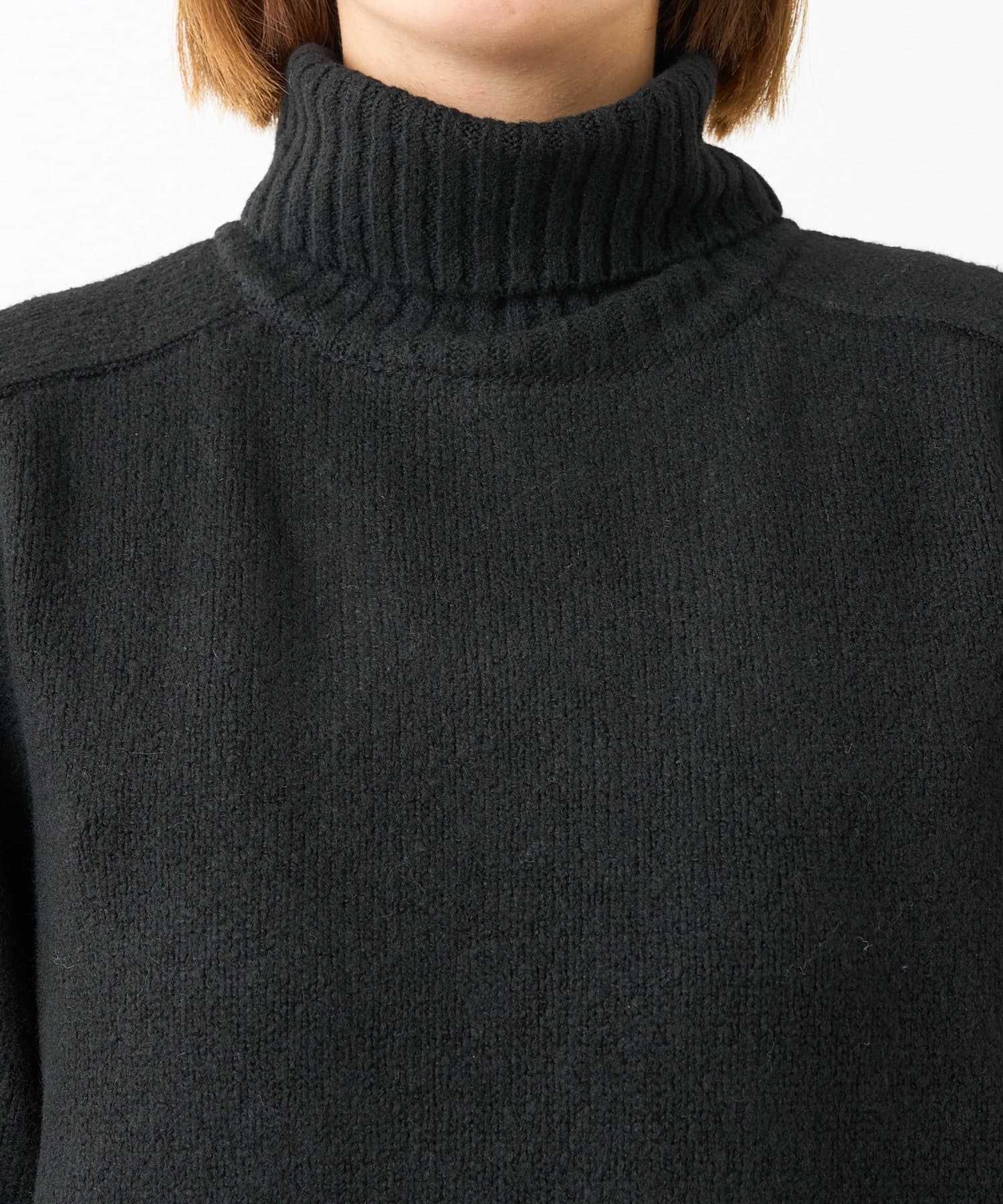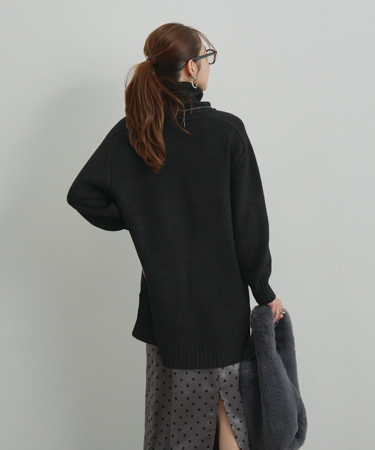 ・暖かさはもちろん、お顔まわりのポイントにもなるワイドめタートルのニット。