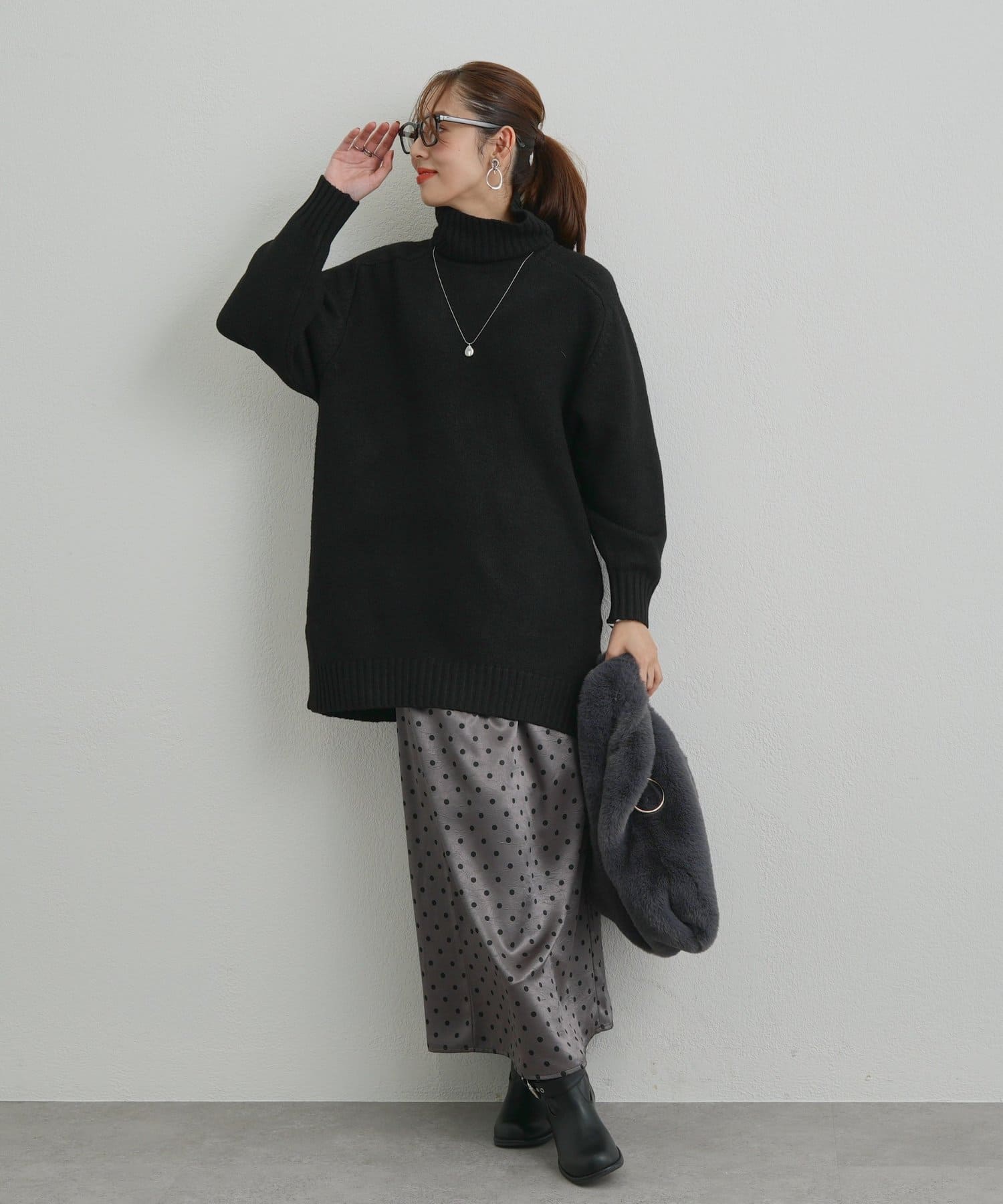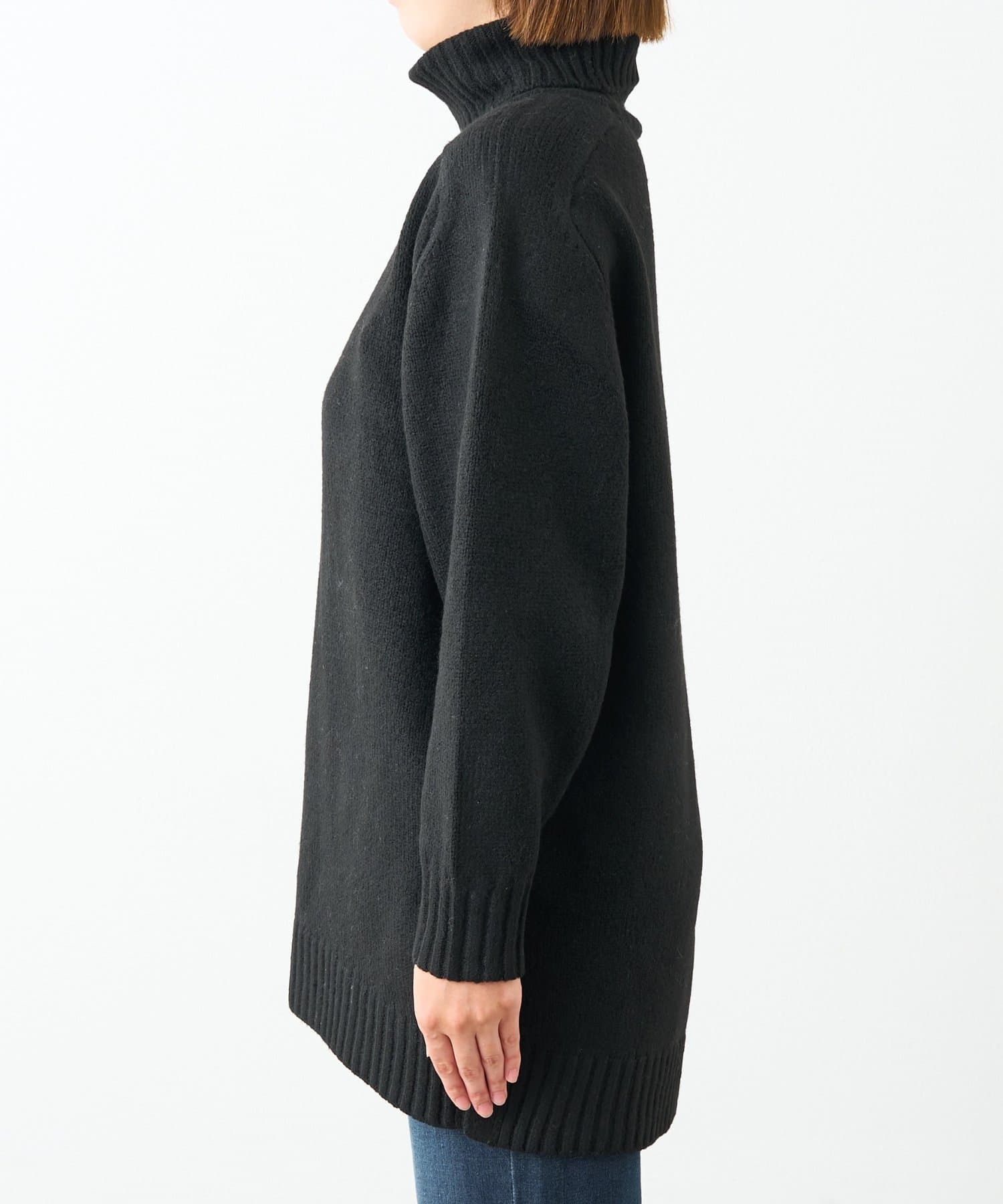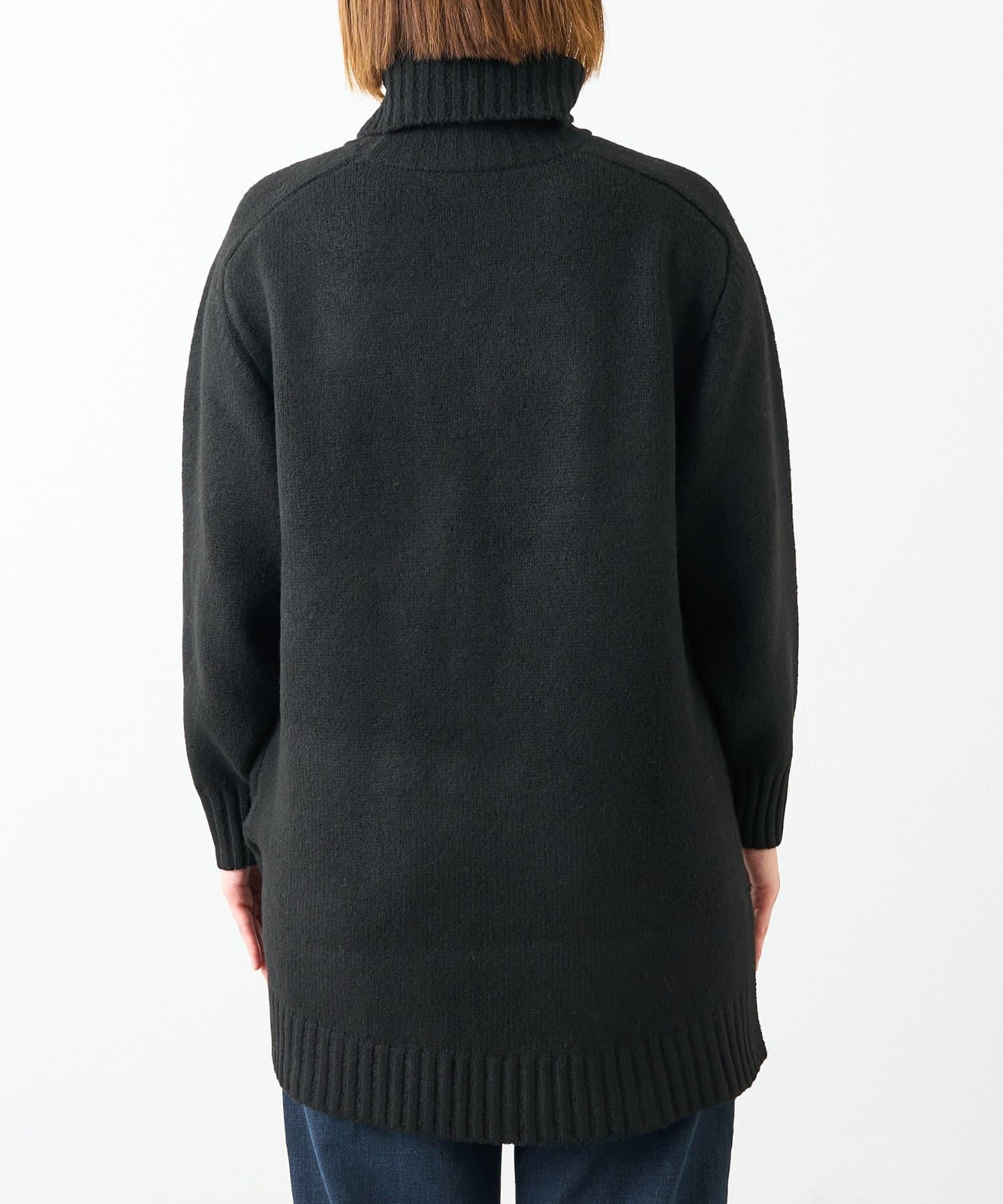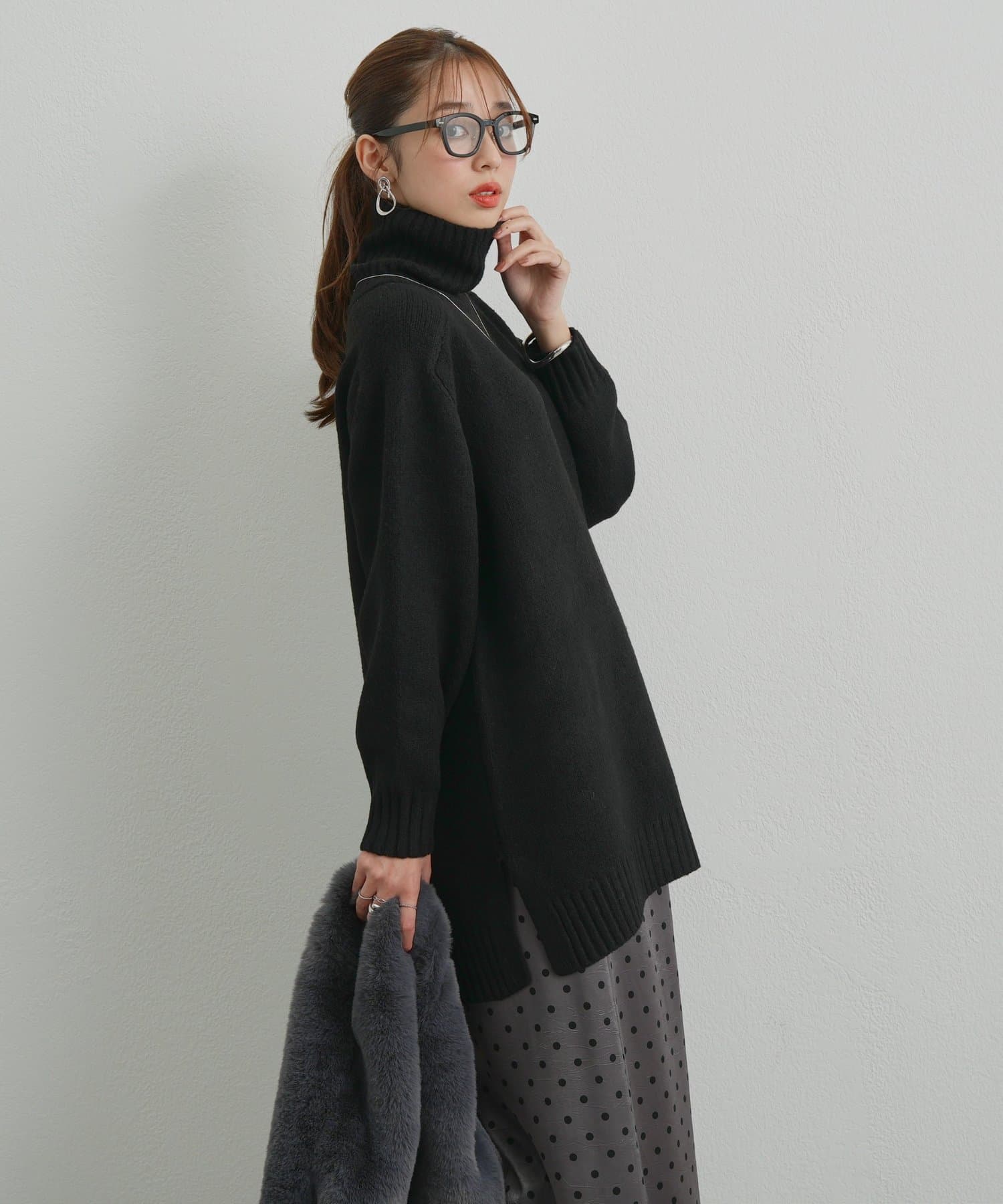 ・暖かさはもちろん、お顔まわりのポイントにもなるワイドめタートルのニット。