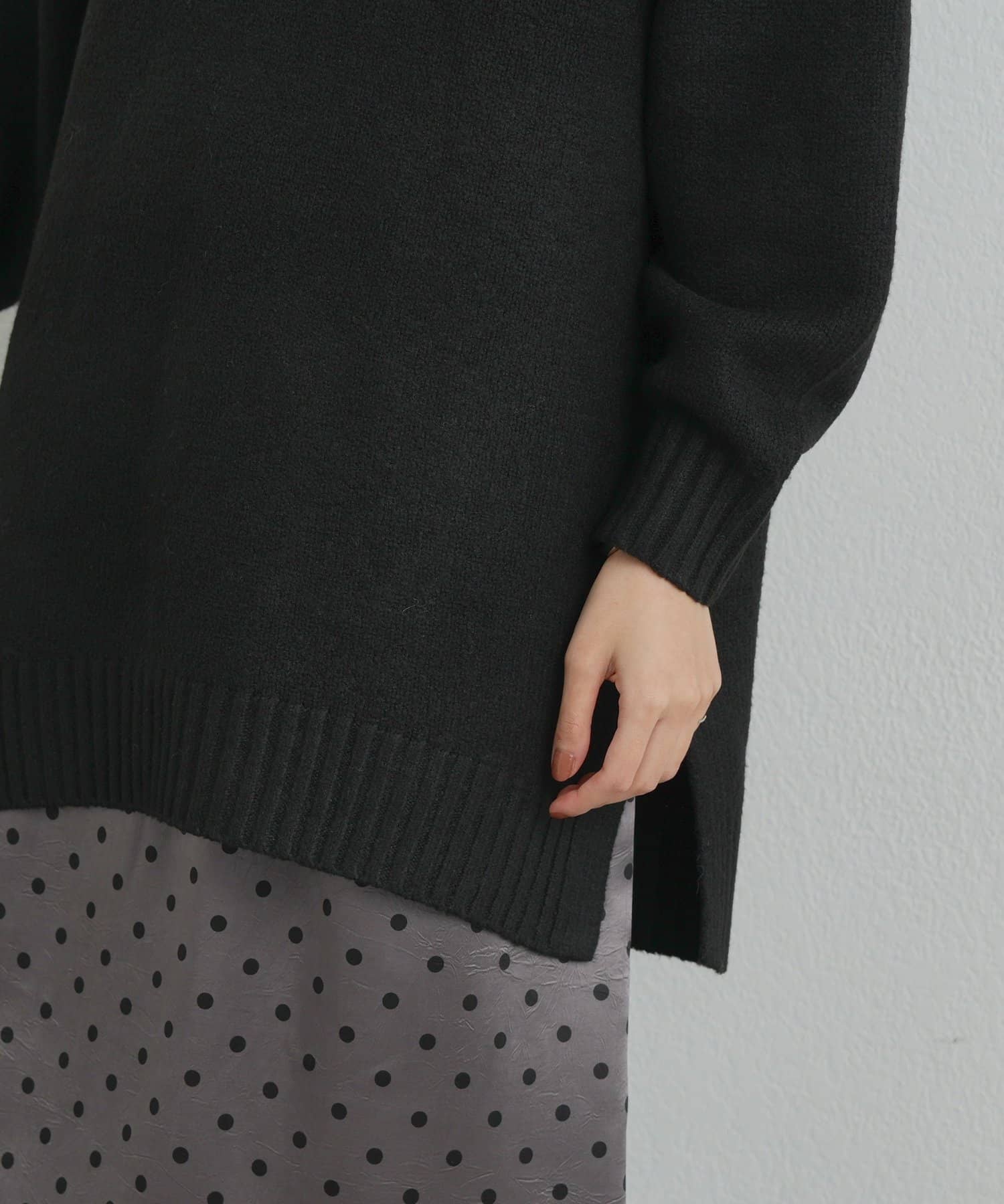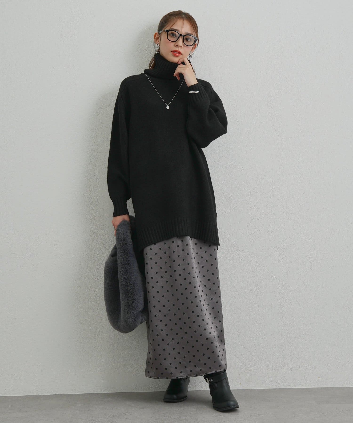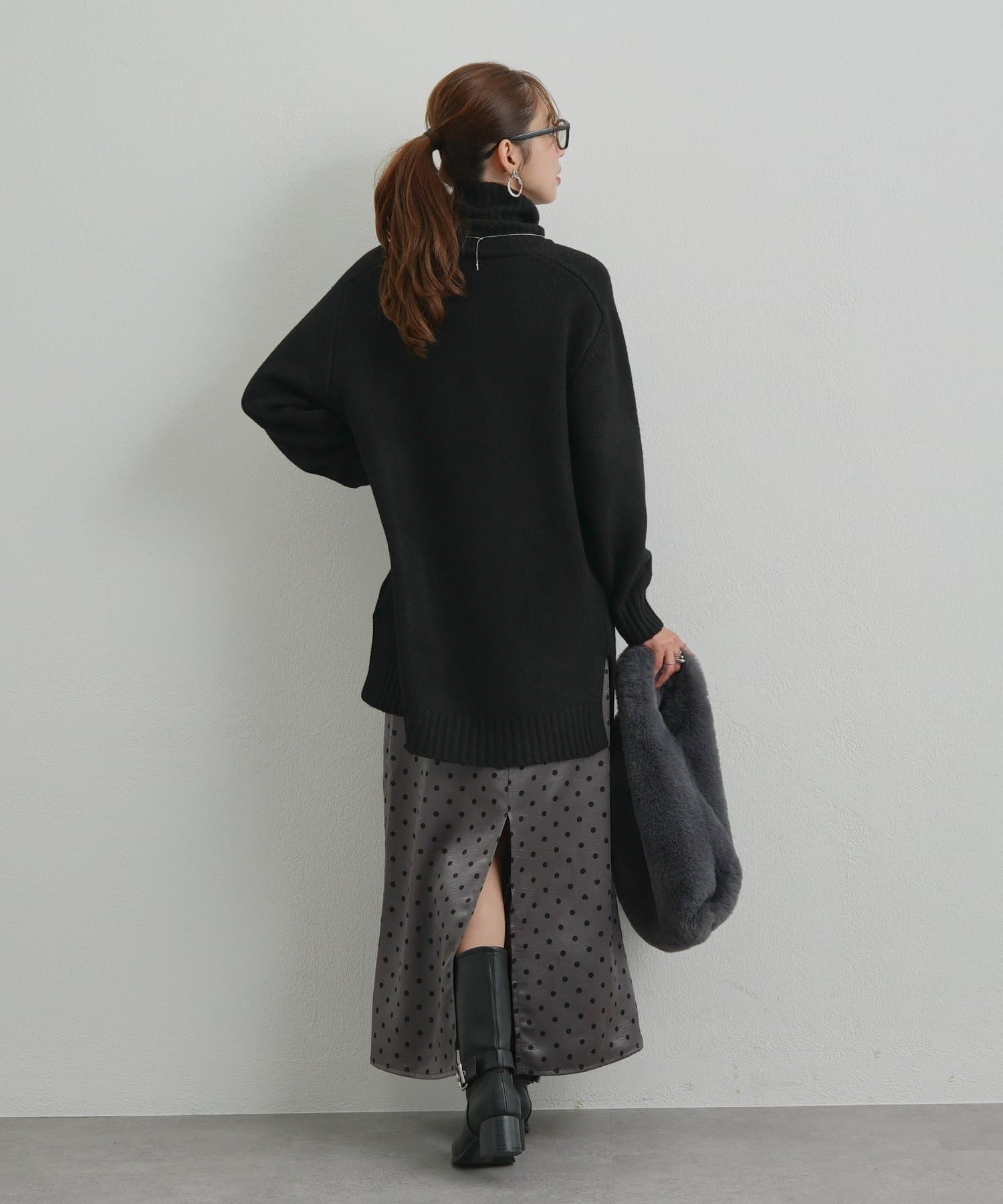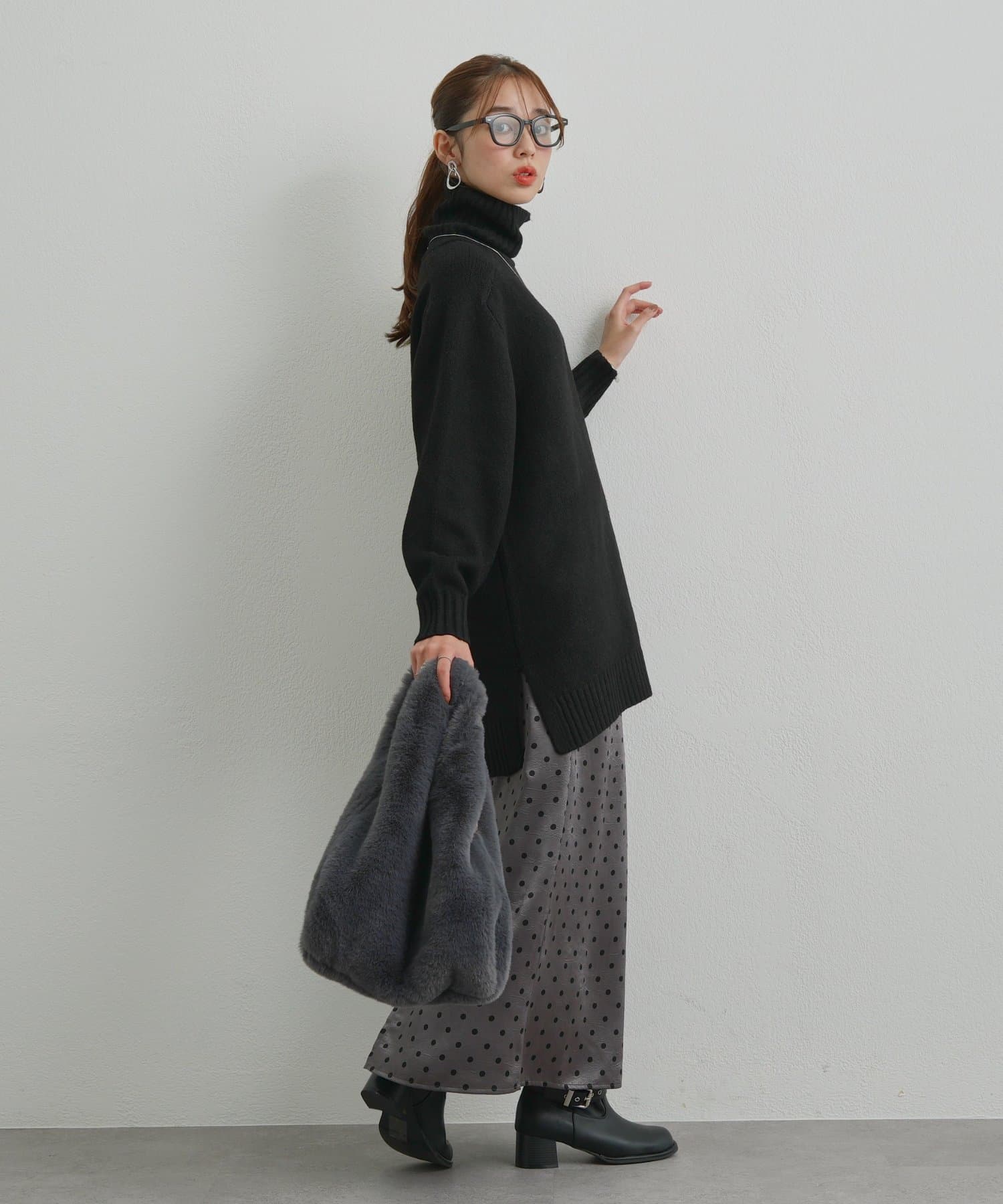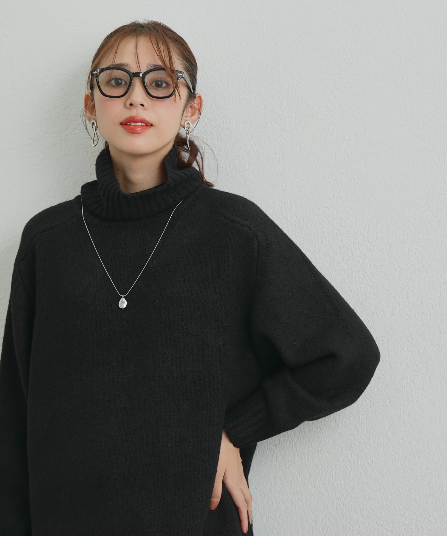 ・暖かさはもちろん、お顔まわりのポイントにもなるワイドめタートルのニット。