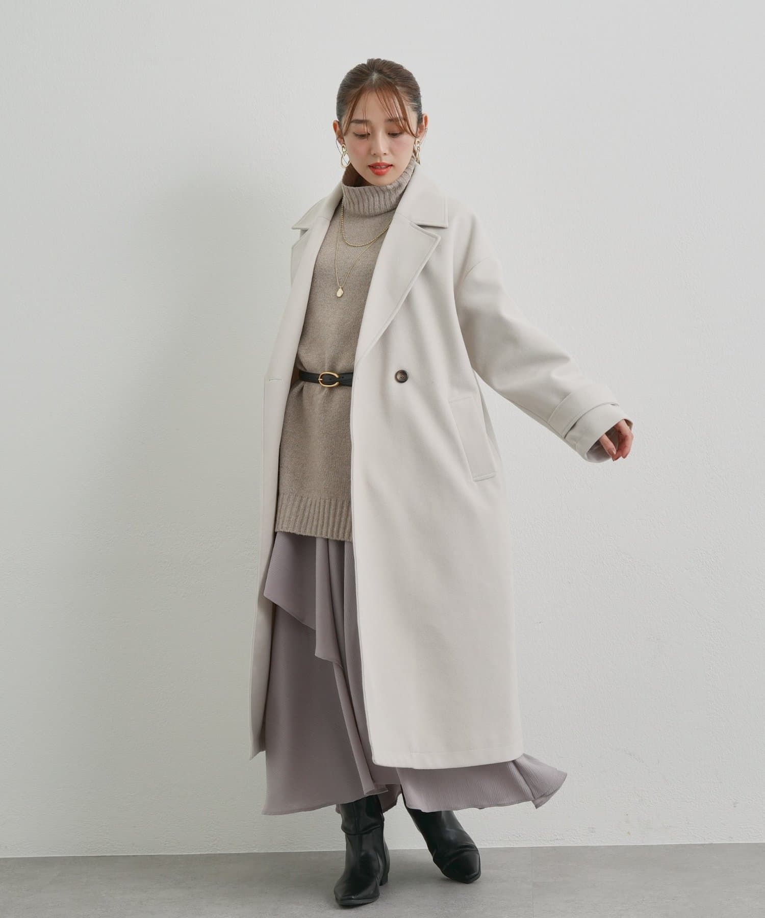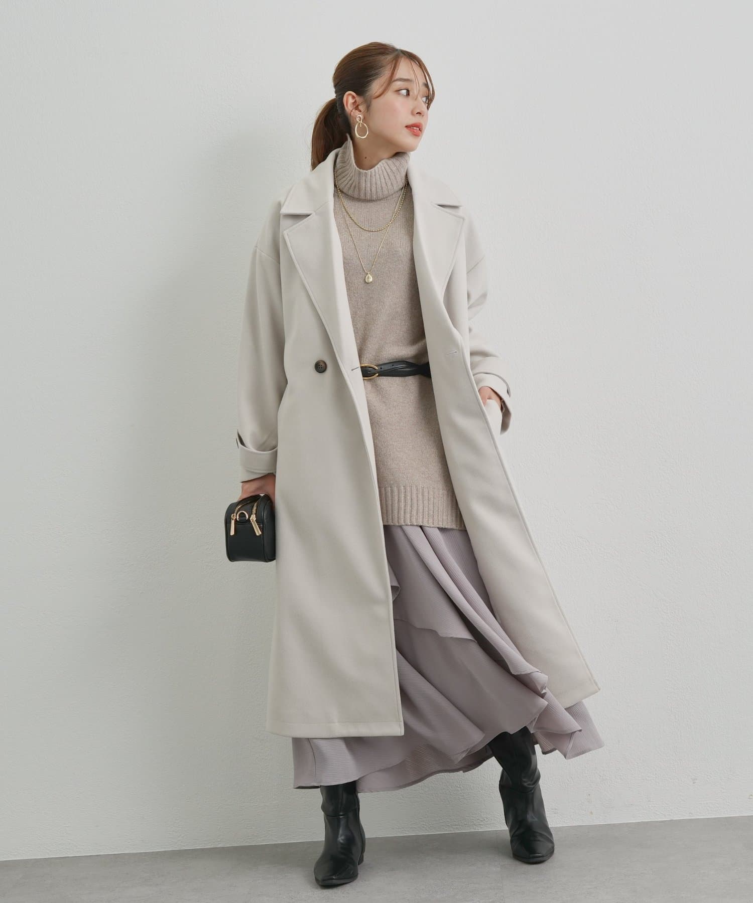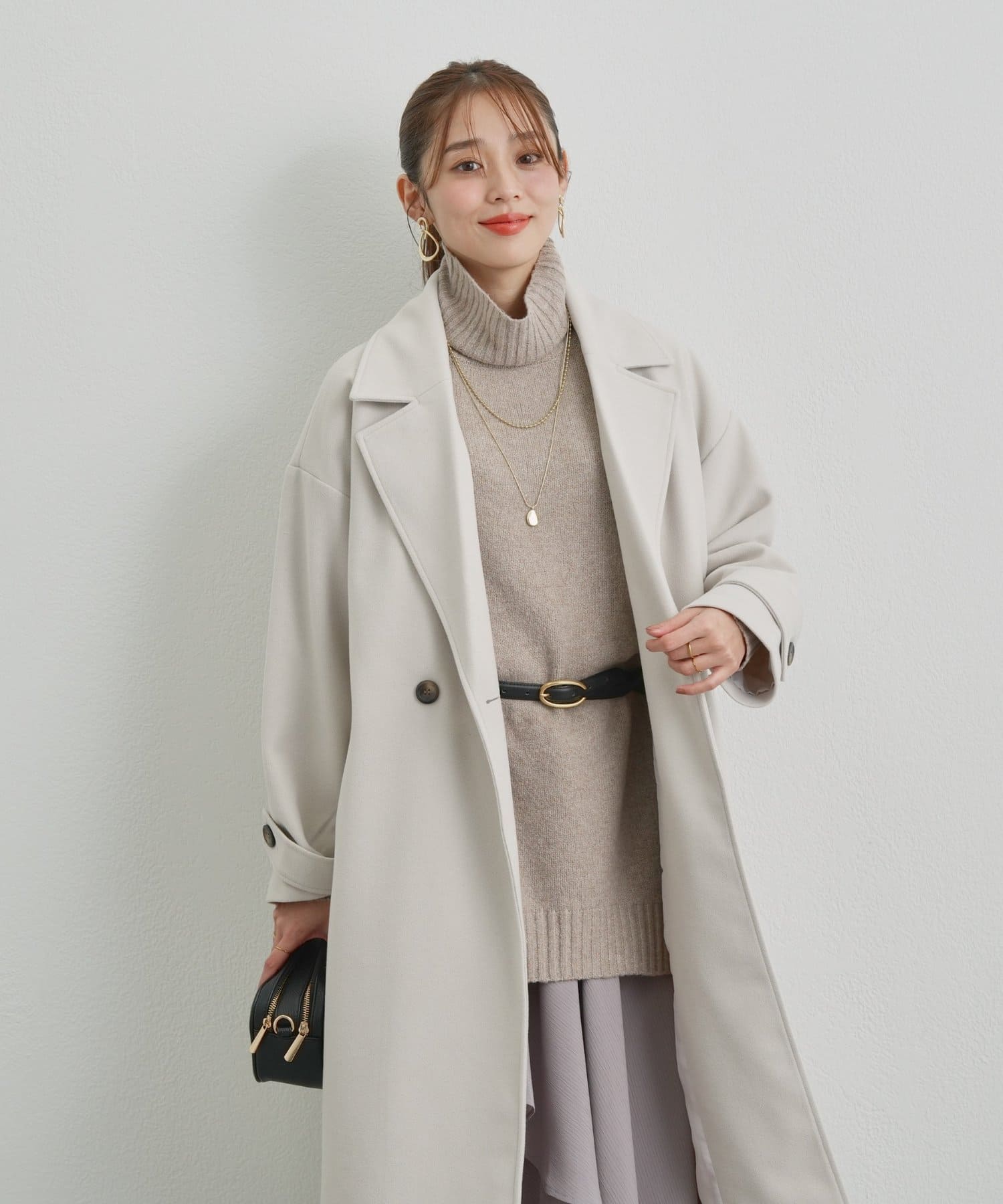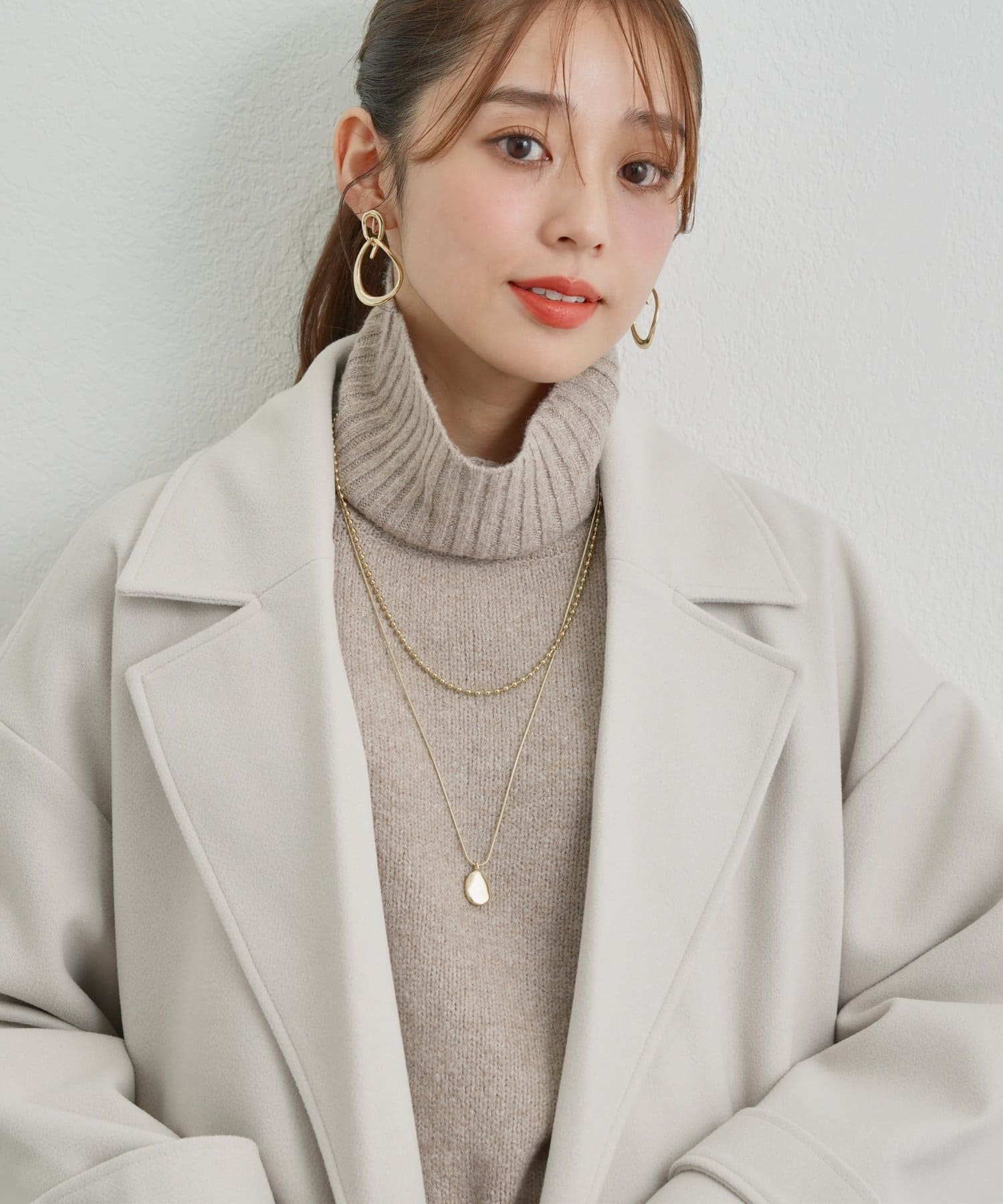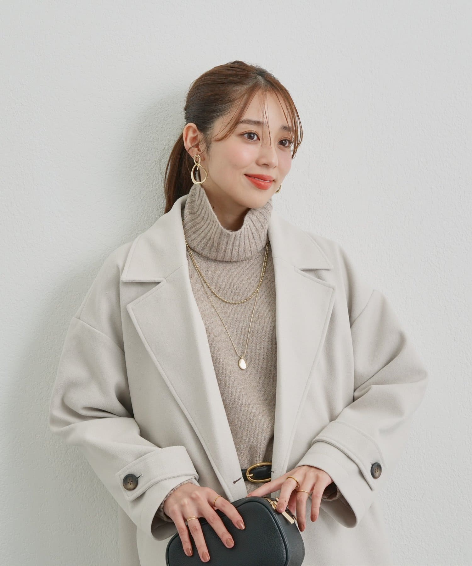 ・暖かさはもちろん、お顔まわりのポイントにもなるワイドめタートルのニット。