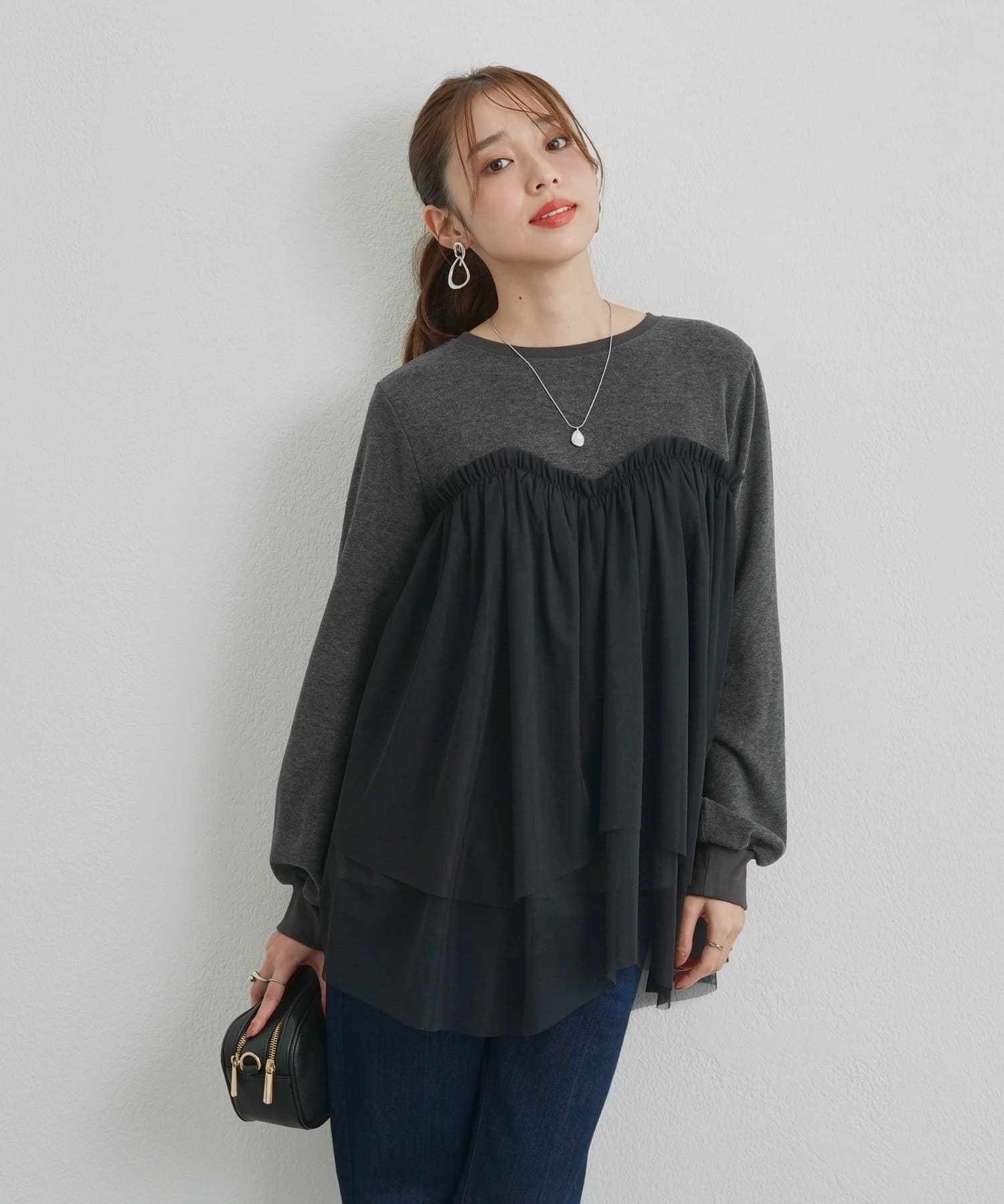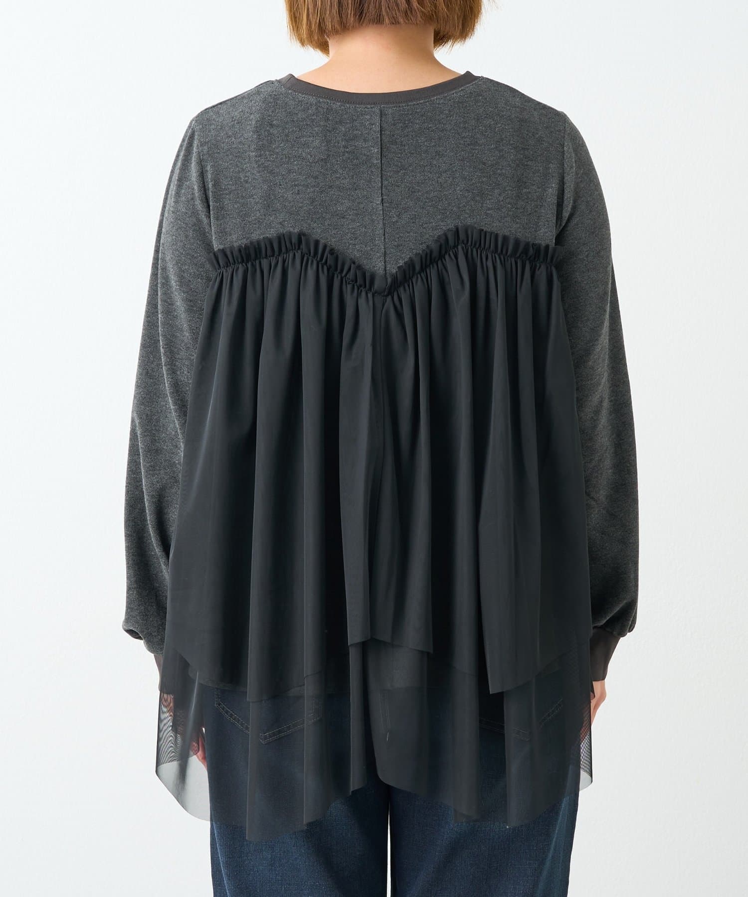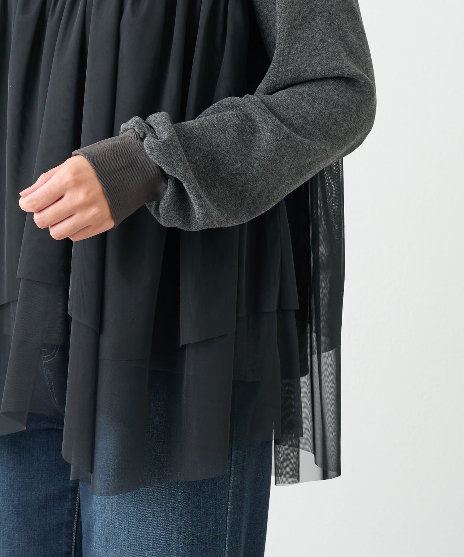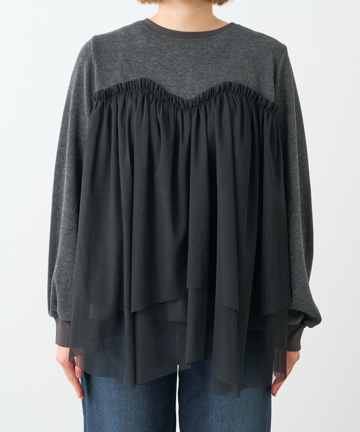 ・身頃にあしらわれたボリューミーなチュールが目を惹く、大人可愛いムードを盛り上げるプルオーバー。