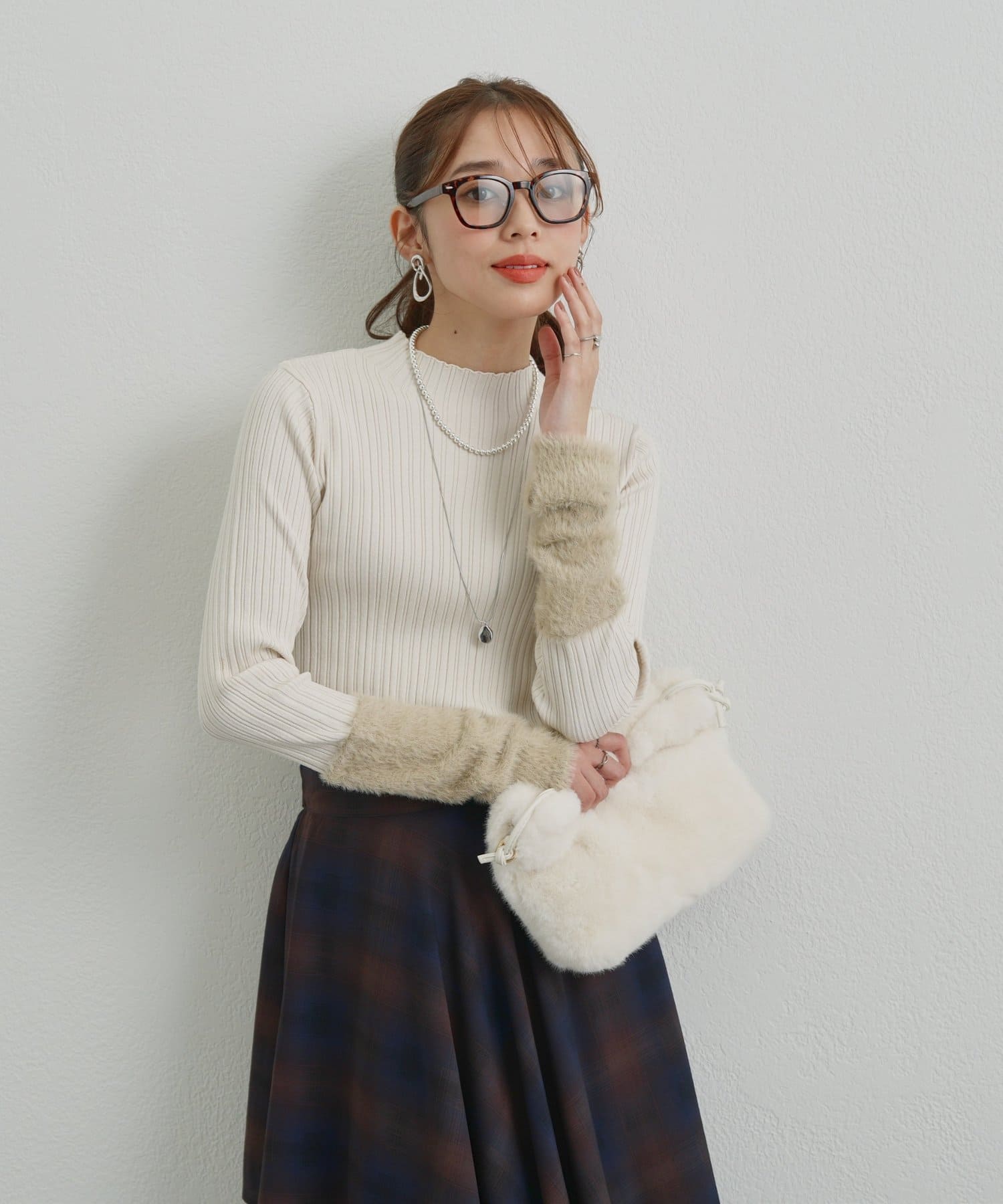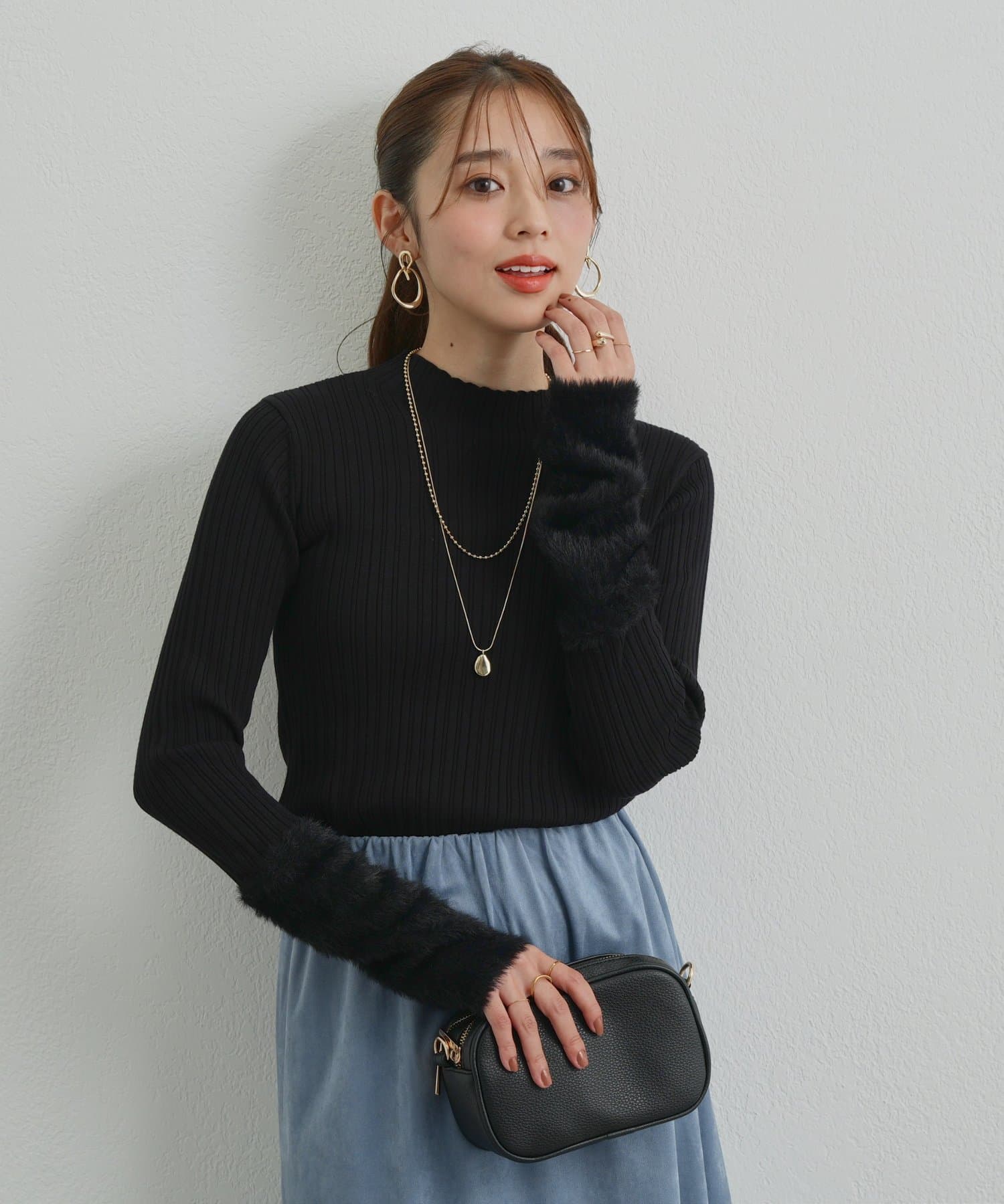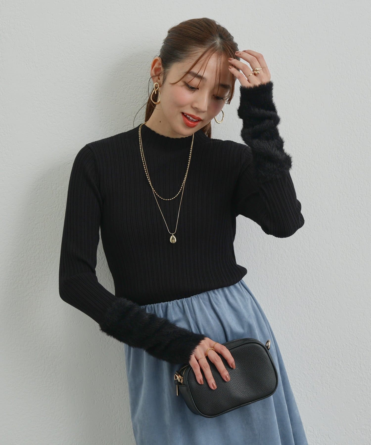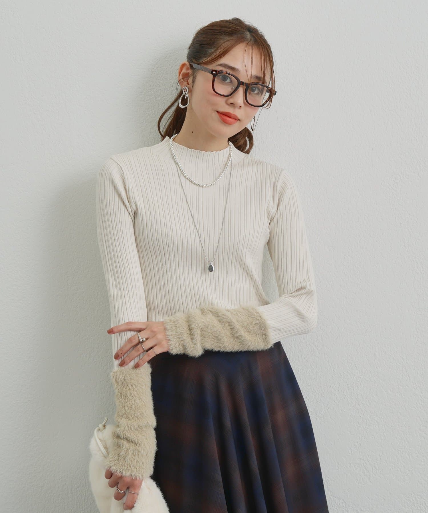 ・トレンド感のあるシャギーを袖にあしらった、ランダムリブニットが登場◎
