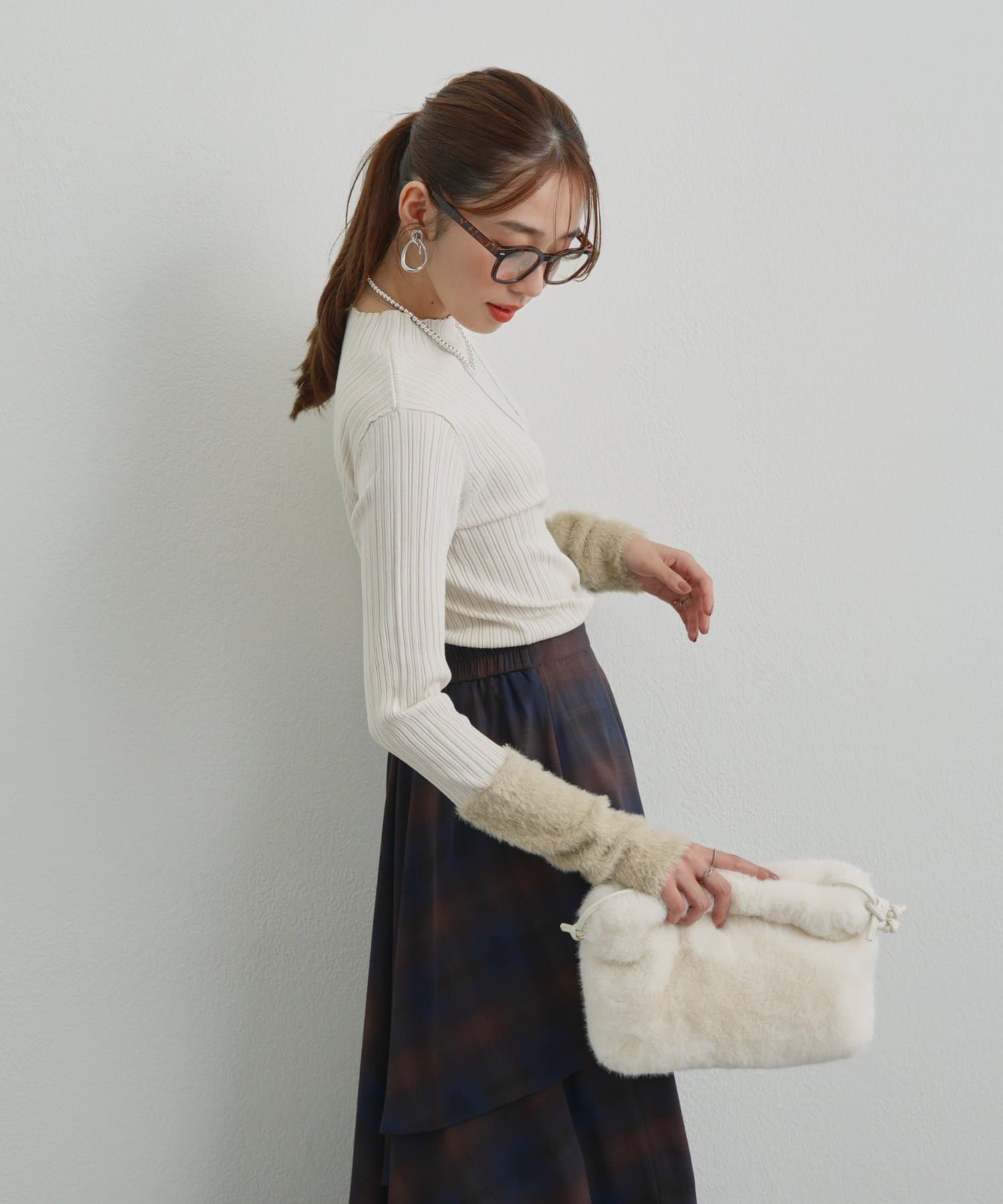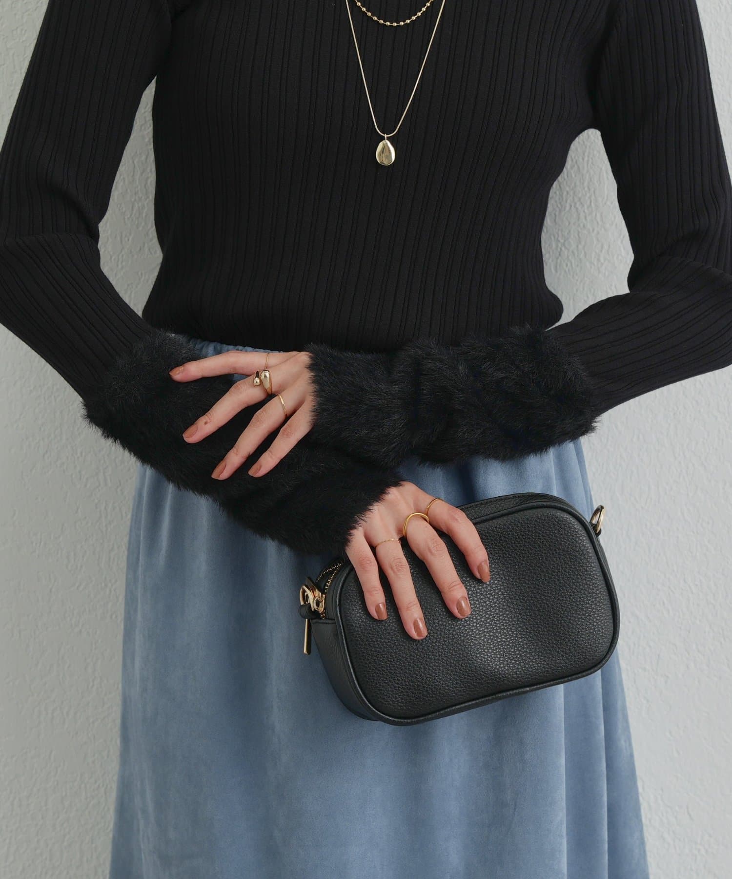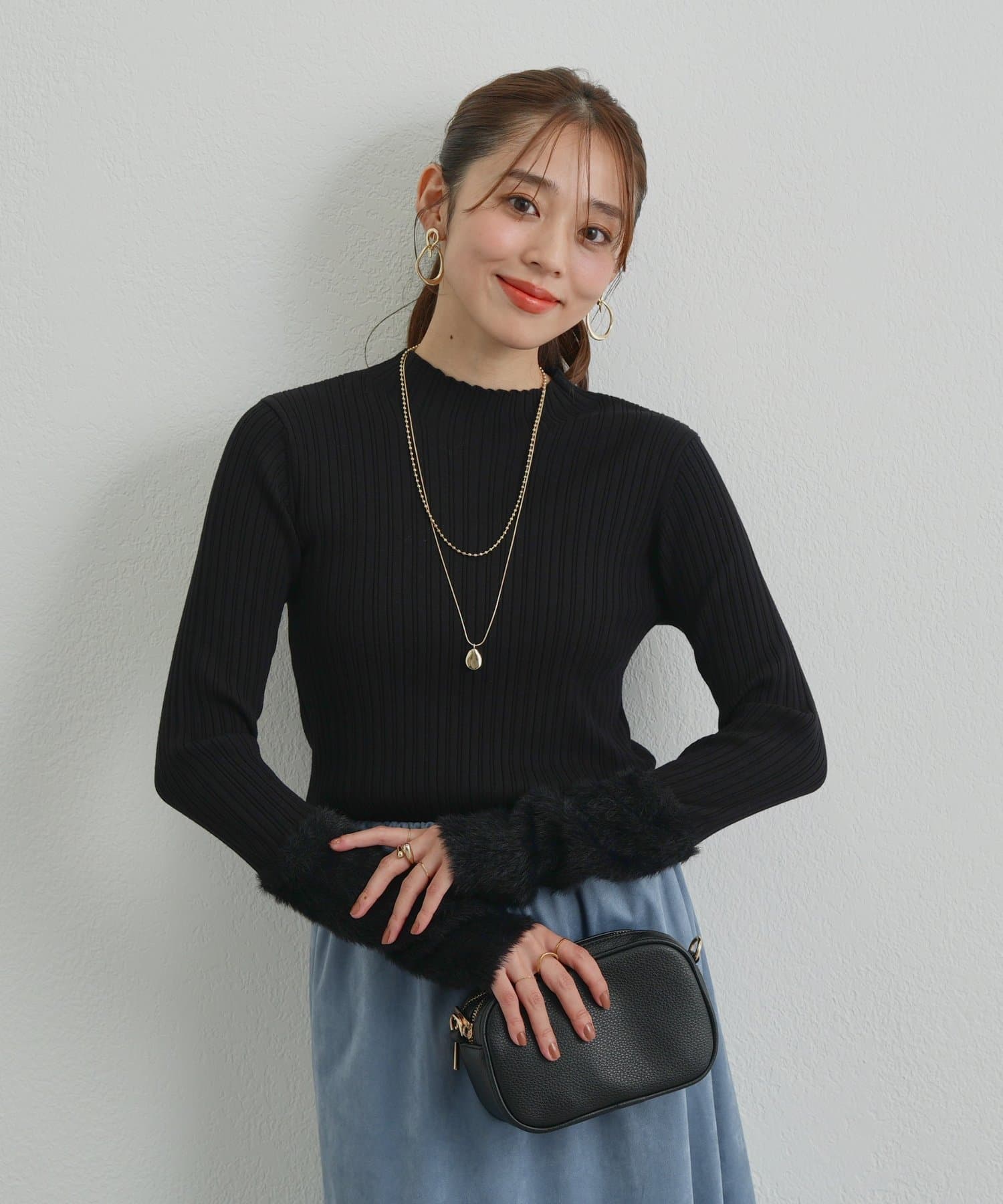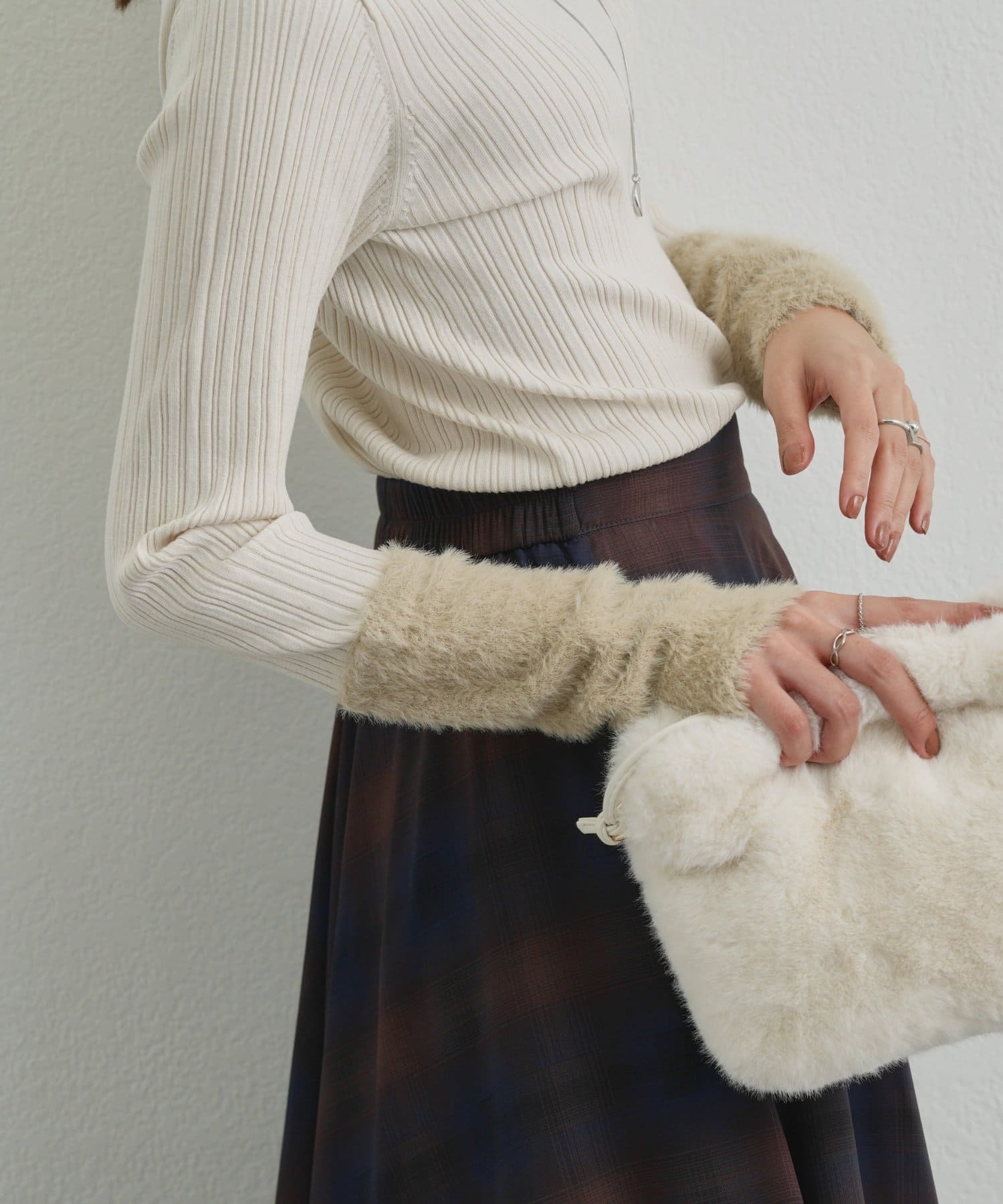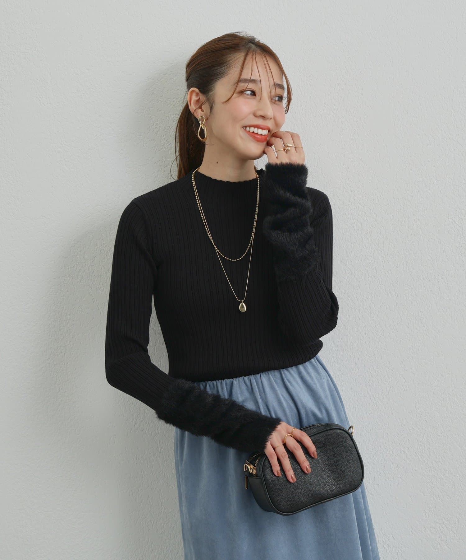 ・トレンド感のあるシャギーを袖にあしらった、ランダムリブニットが登場◎