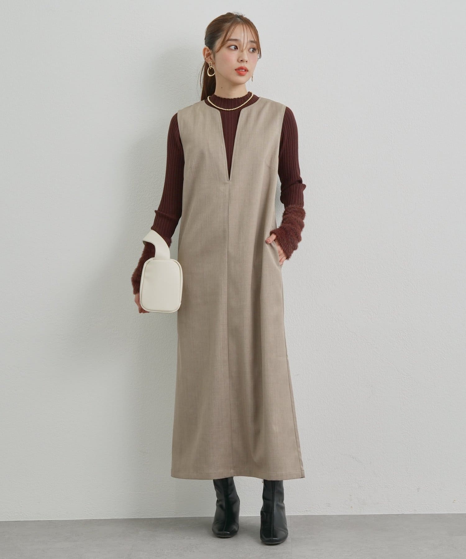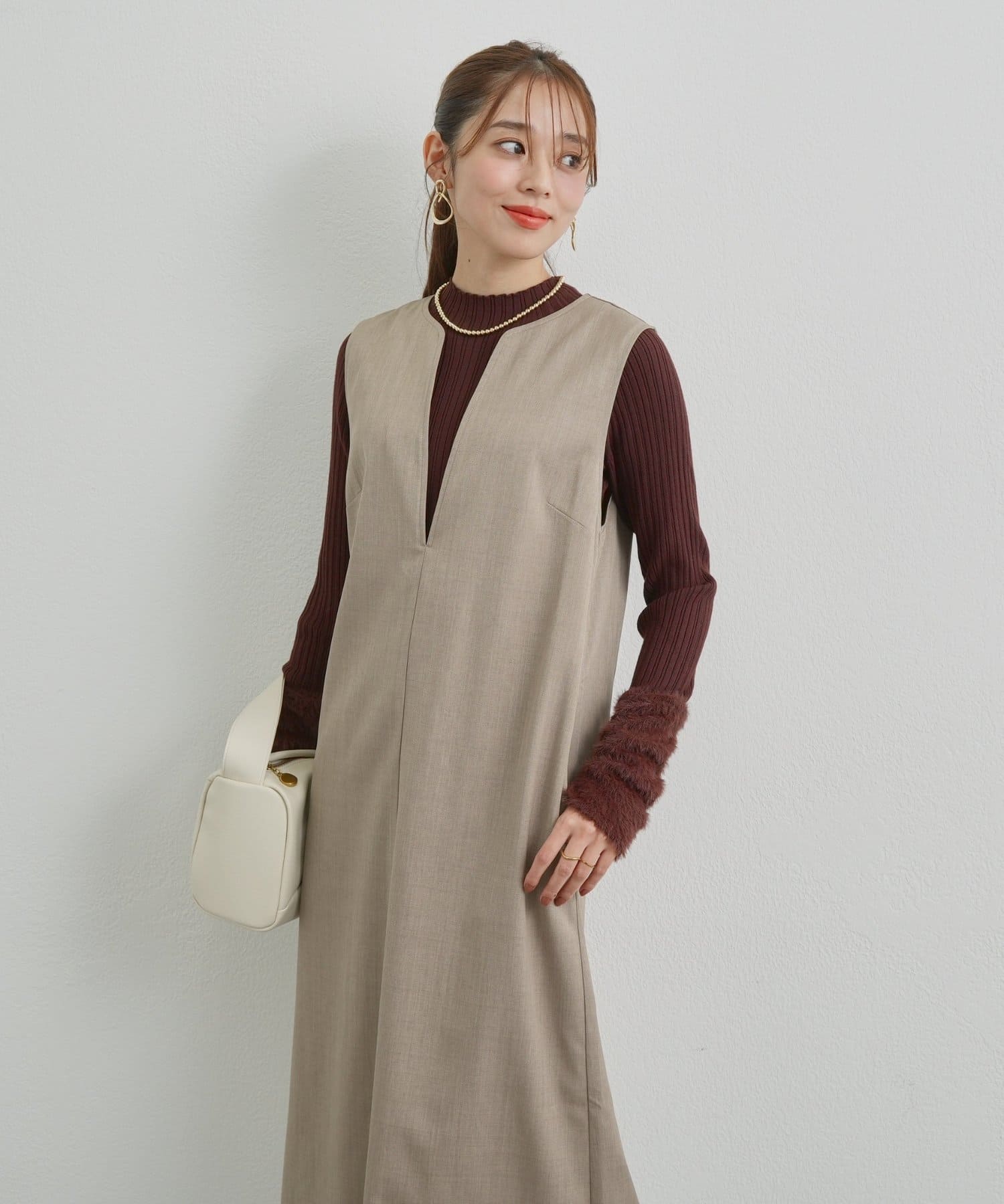 ・1枚で着映えするデザインながら、アウターを羽織ってもごわつかない厚みで、ロングシーズン活躍します。