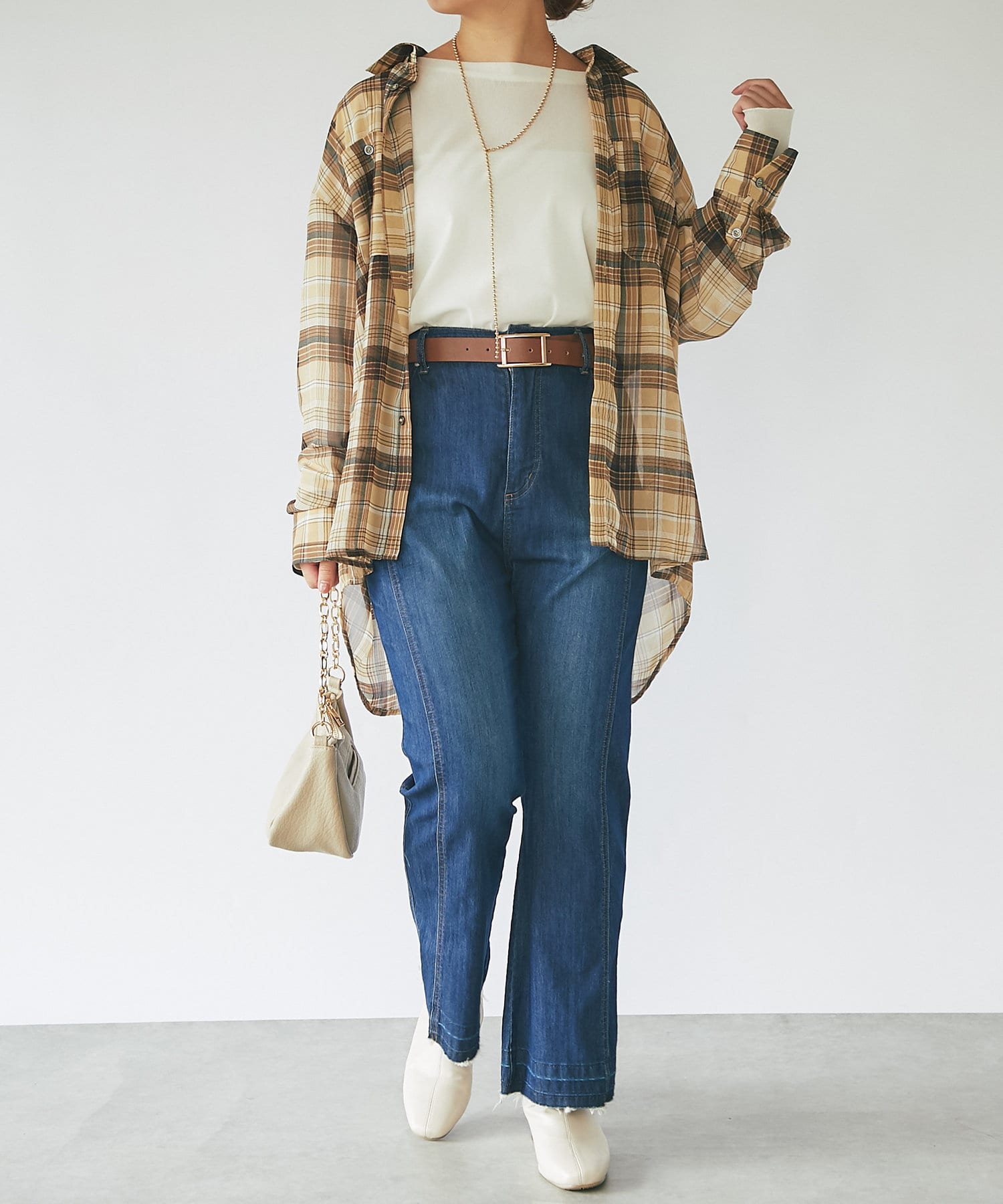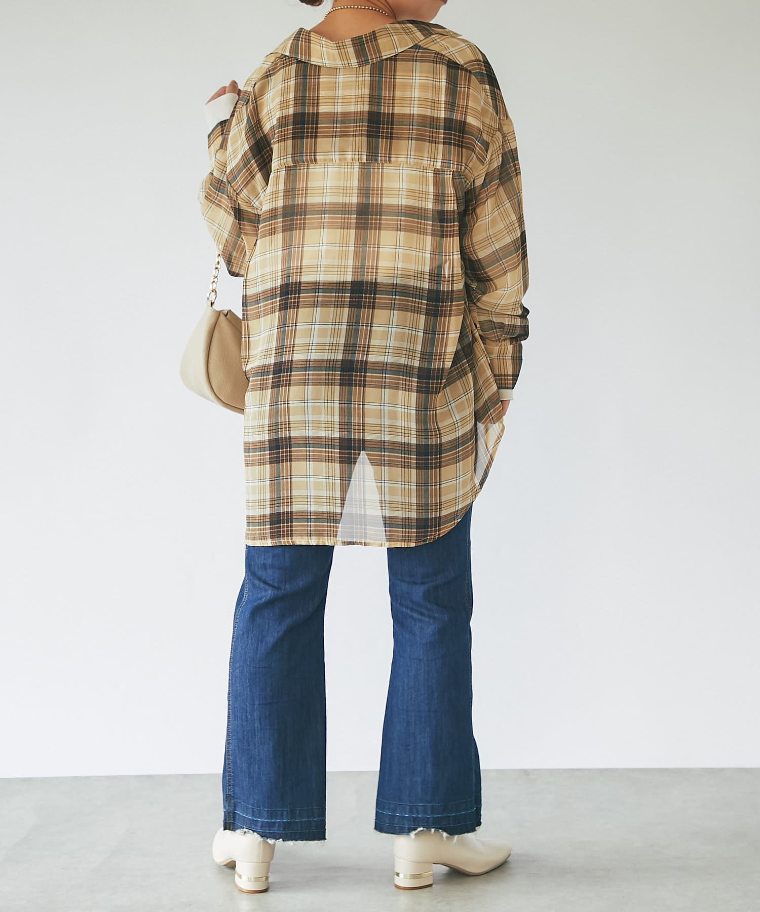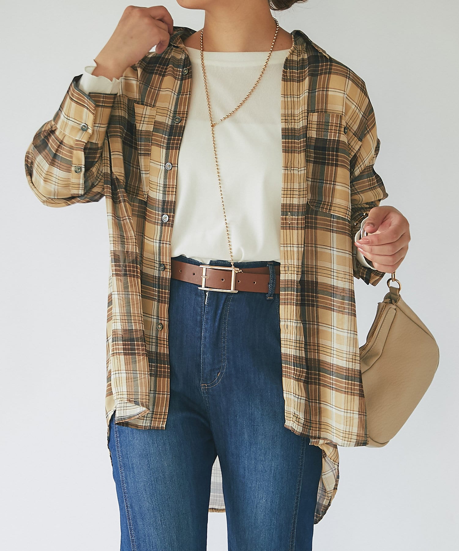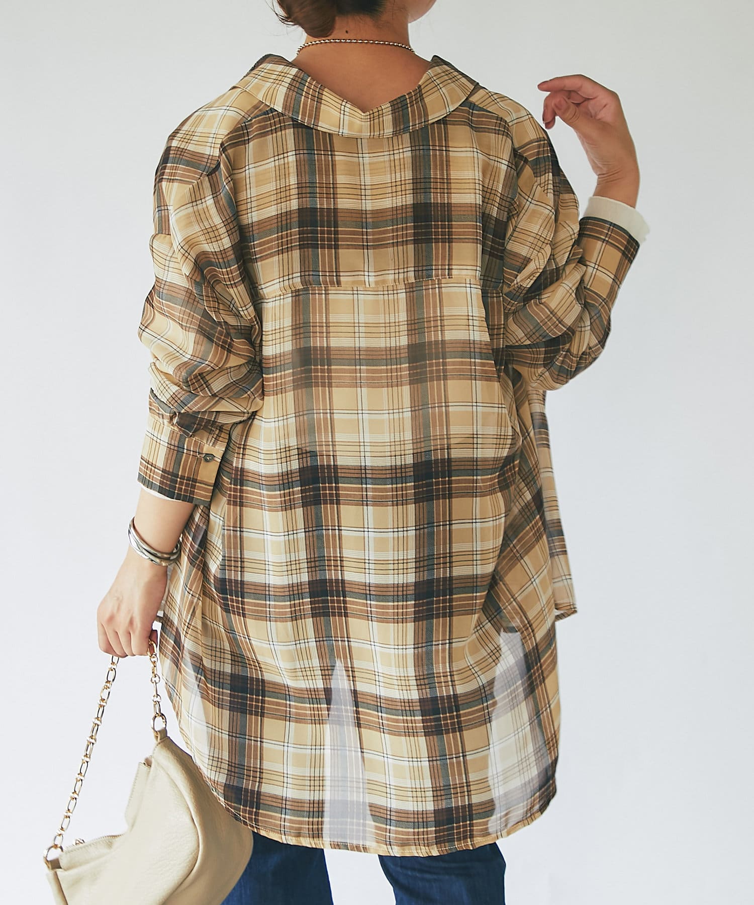 《着回し・羽織にぴったり》シアーチェックシャツ