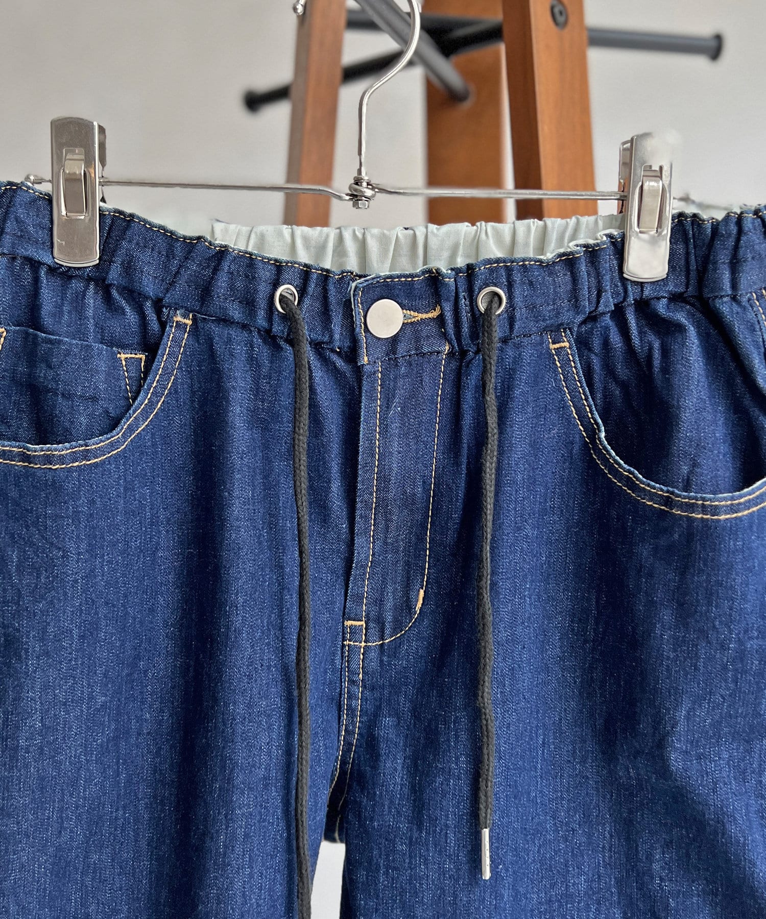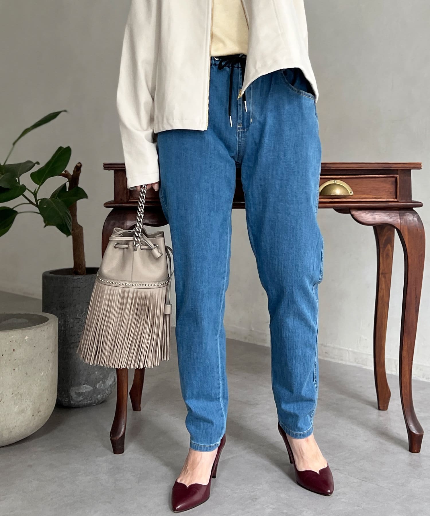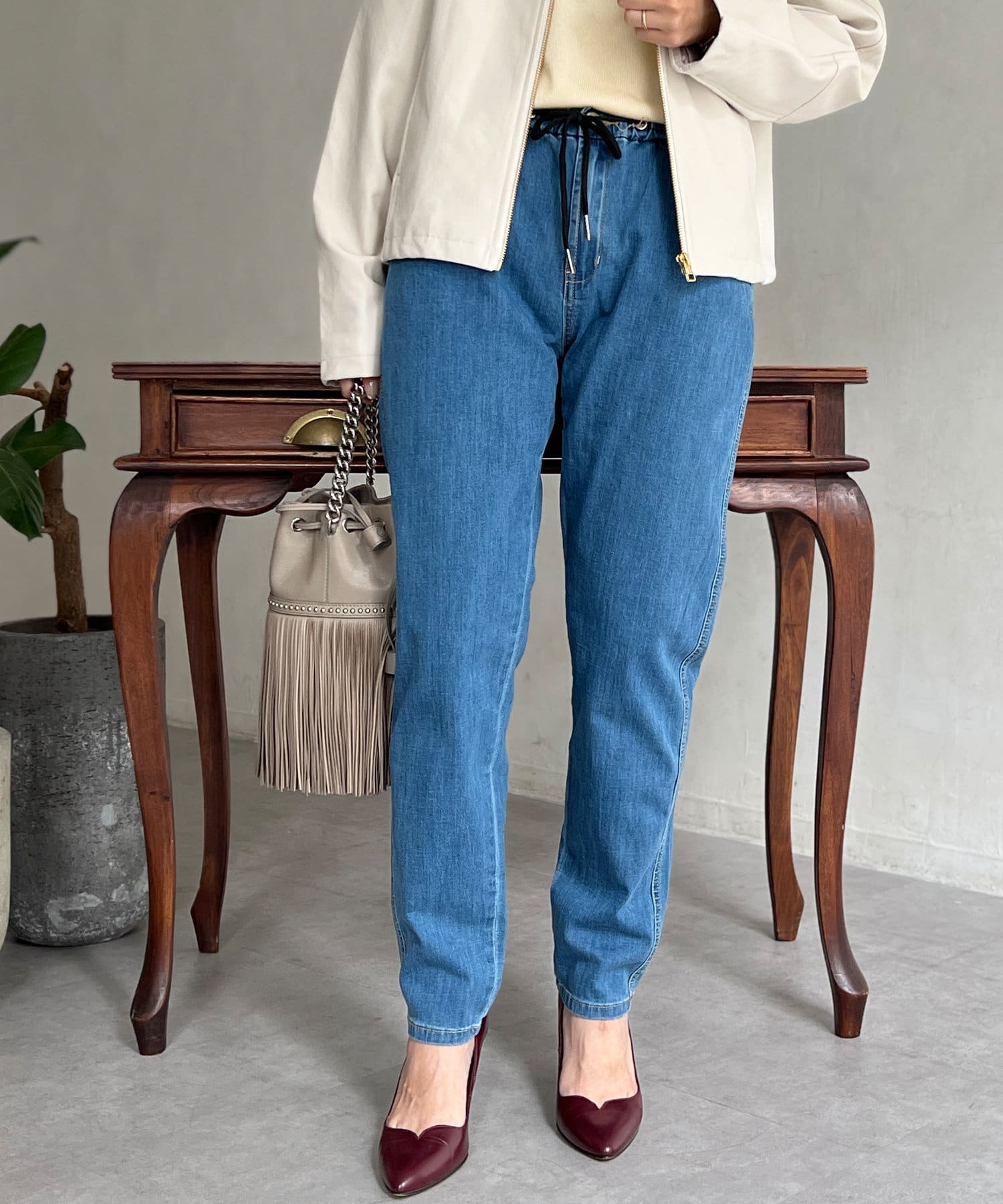 デニム素材のイージーパンツ。