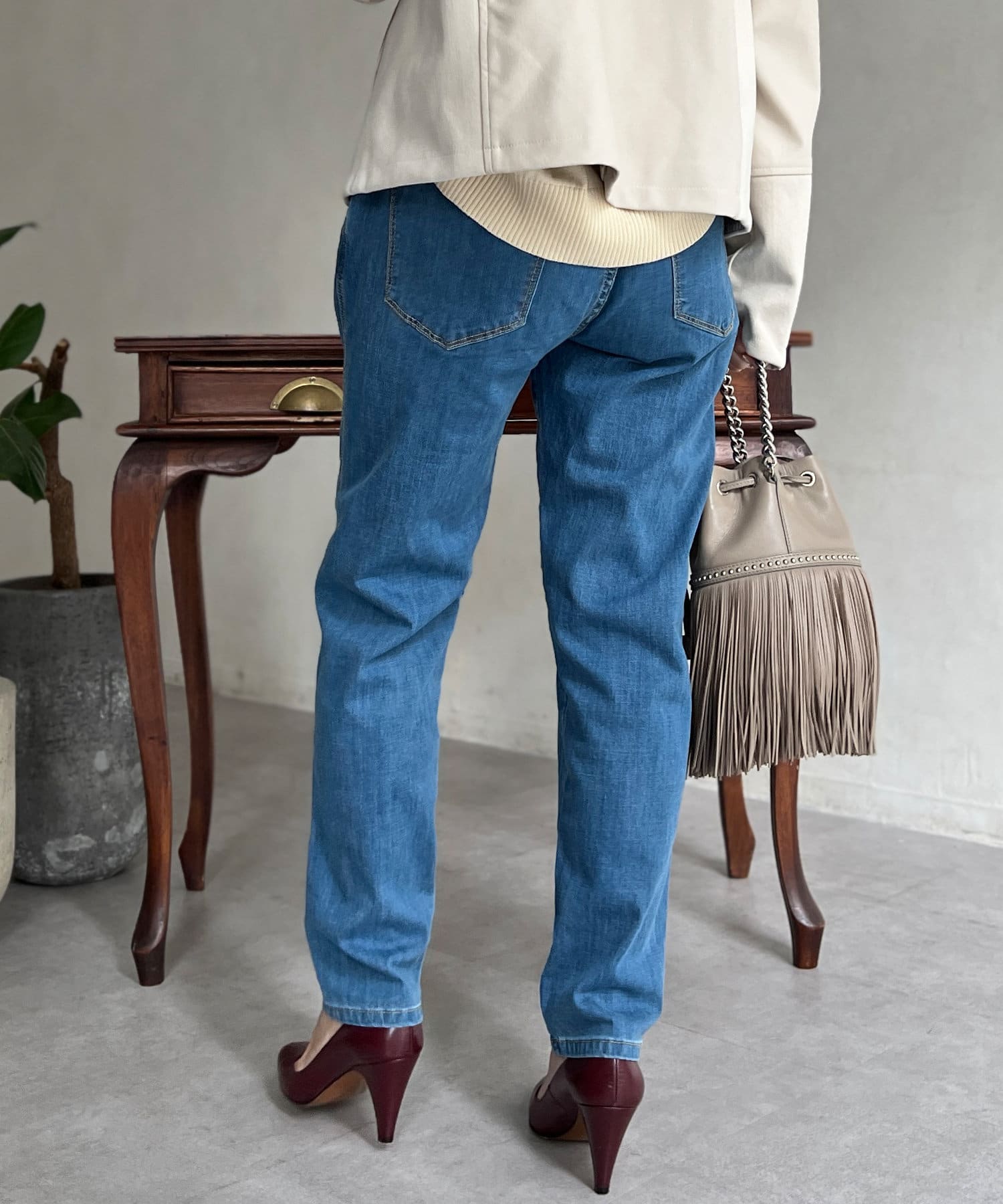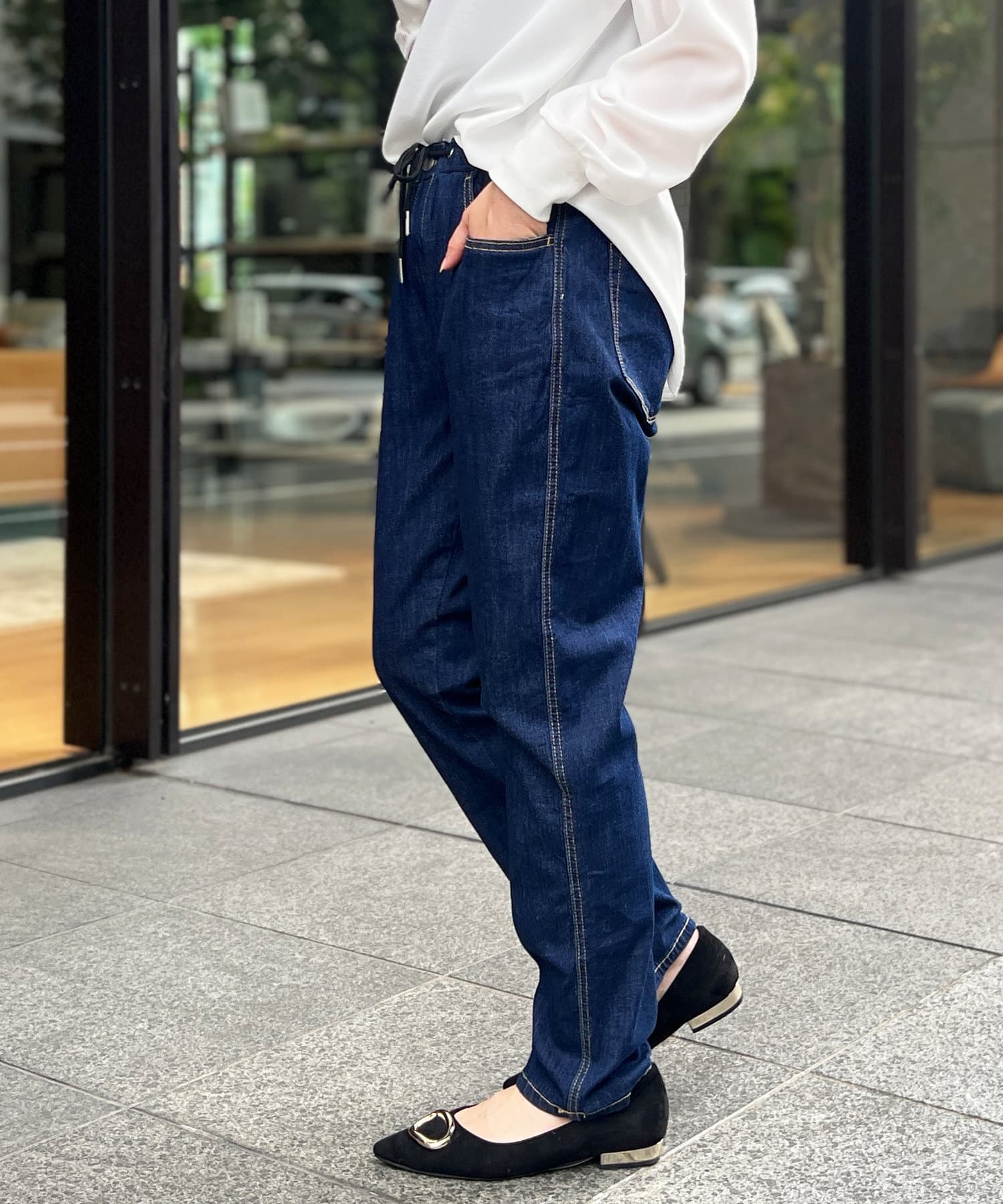柔らかい素材でデニムを履いていることを忘れてしまうほどノンストレスな履き心地です。